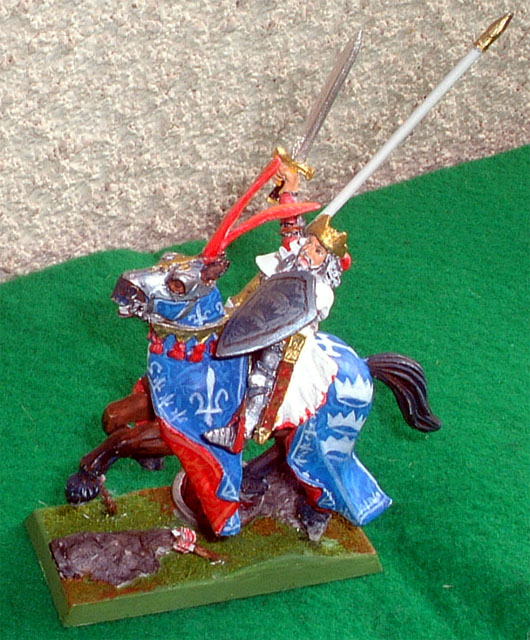| あきおさんのコメント 背景がヘボくて申し訳ありません…(TT 元はナイトエラントだったのですが 王様らしくしてみようと思いパテでヒゲと王冠、服の下などを作ってみました WHでは初めてちゃんとした加工・着色をしてみたのでまだまだ色のムラなどが酷いと思いますが 機会があればリペイントなどでもっと雰囲気を出したいと思っております Rmanのコメント 元がナイトエラントとは思えない大出世ですね! 「濃い」ではなく、どこか若さの残る「格好いい」オヤジですね〜。 バーディングの配色も独特で、色自体はシンプルなものの複雑な模様を施されているおかげで、 位の高い騎士と分かります。 |