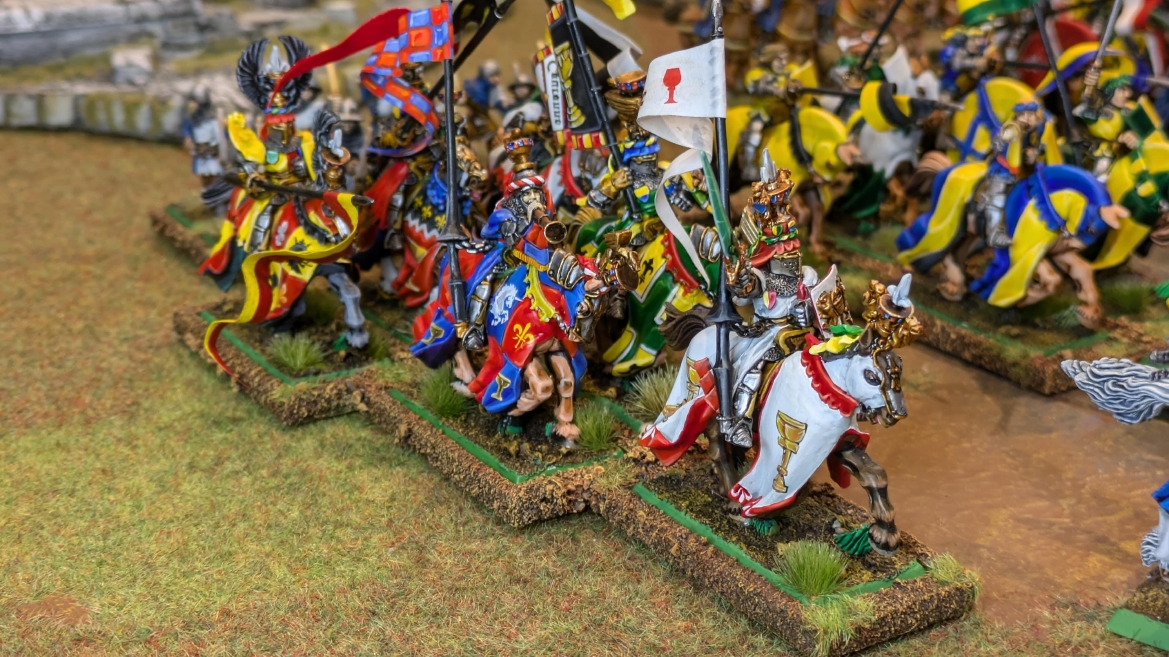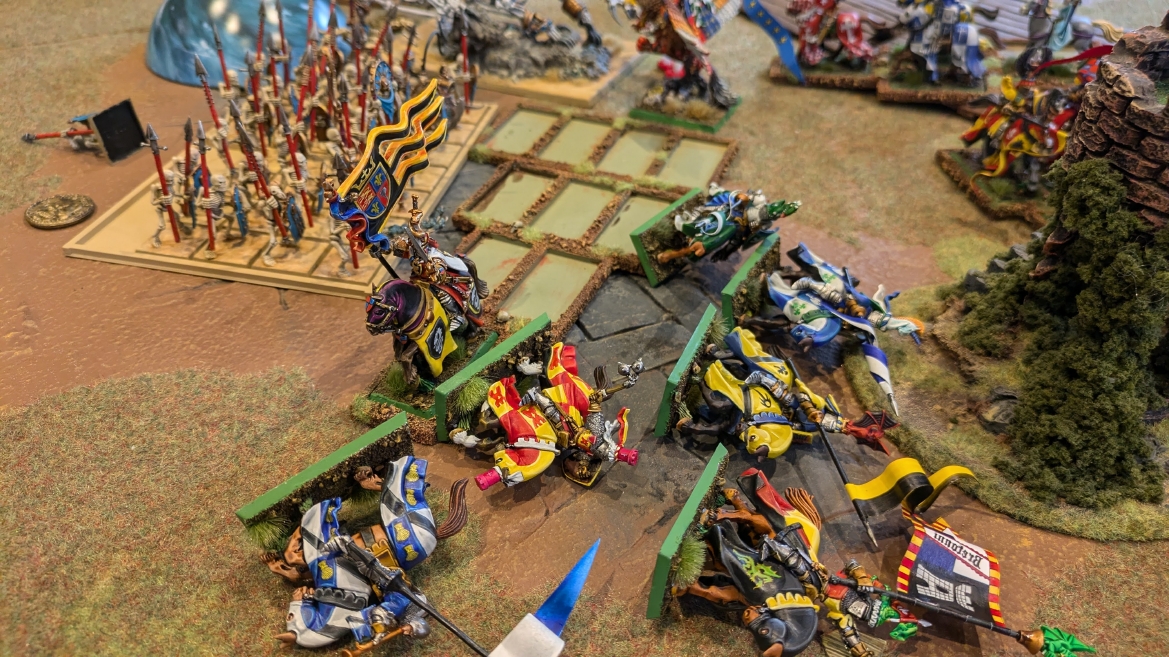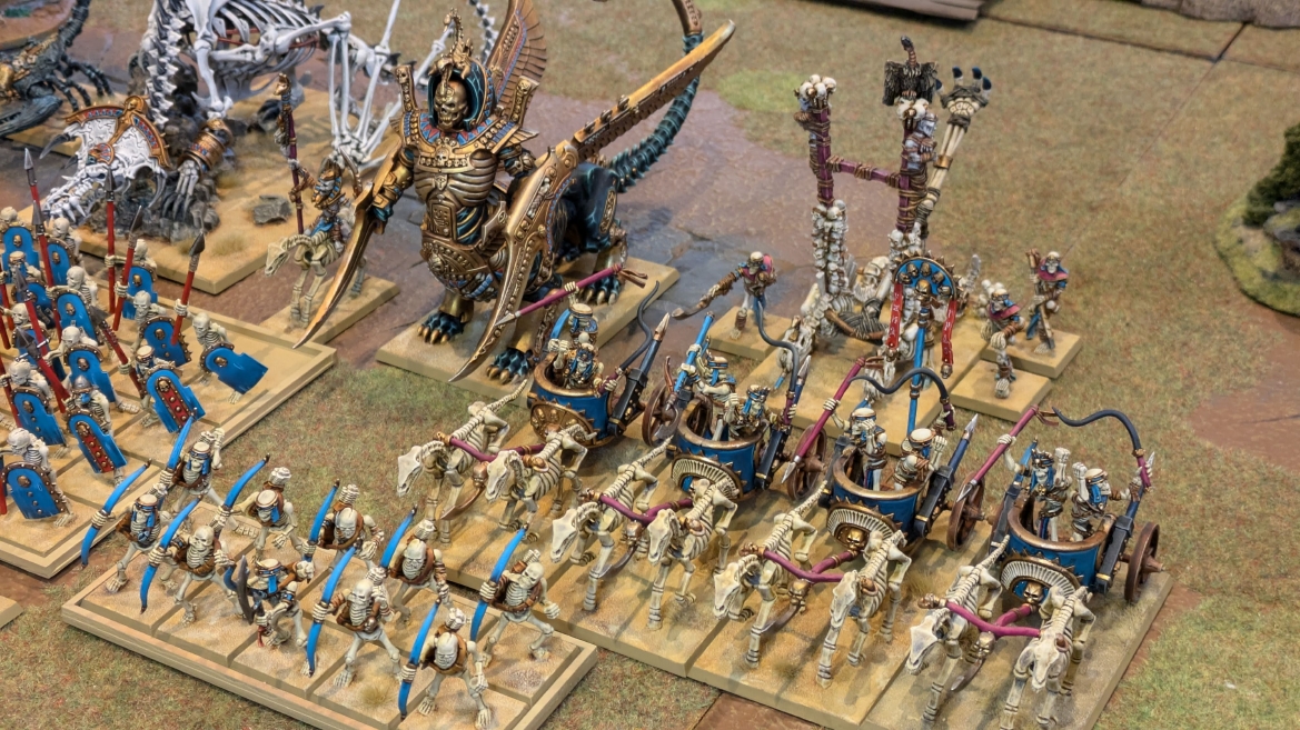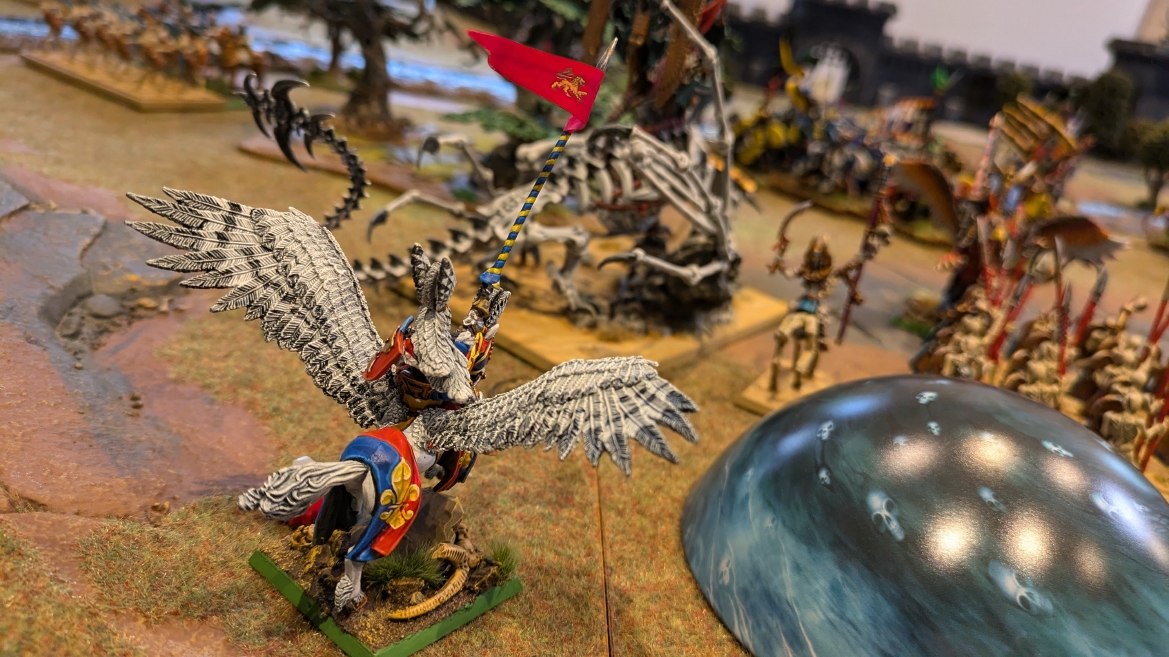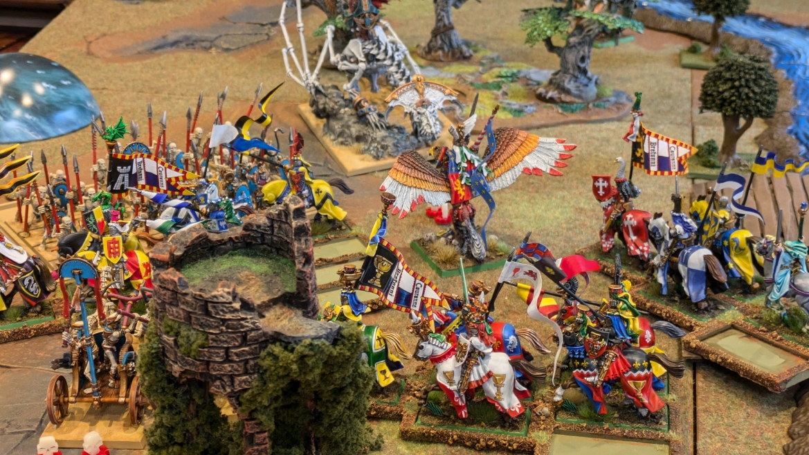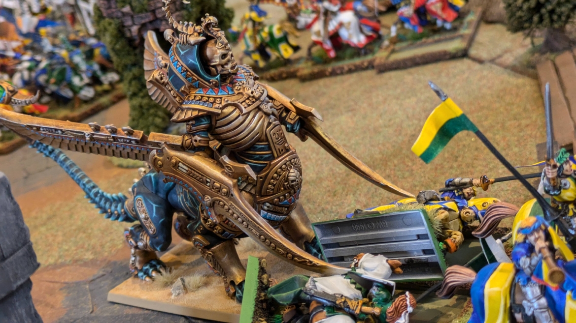 | イントロ ウォーハンマーファンタジーバトルの再誕、その名も WARHAMMER THE OLD WORLD 。 ![]() 皆さん、オールドワールド(以下OW)遊んでますか!? 遊んでいる人は多いような少ないような、少なくとも僕のTL上では遊んでる人はいつも同じ人で、新しくOW始めた!という人は少ない印象があります。 まぁ、OWの元になったファンタジーバトルこそ元祖ウォーハンマー!ではあるものの、一度滅んでから随分時間が経ちましたし、 かつてありし世界で遊んでいた趣味人もだいぶ少なくなったり、 時代の流れのなかで、数あるGWゲームの中でもマイナー寄りなイメージになってしまってる感じはしますね。英語版しかないのが何と言っても痛い。 しかし僕は今年ブレトニアの制作に打ち込んだこともあり、僕の中では大いに盛り上がっていましたので、今年のMyホビーはOW一色な一年になったという印象です。 今回のゲームを含め、2024年はOWを4回遊べたというのは一般的には極少かもしれませんが、 厳しい妻ににらまれている身分としては大変上出来な回数だったと満足しています。 記念すべき第一回のバトルは卵帝君との宿命の対決となりました。 1回目のバトルレポートはこちら 第二回目のバトルは同郷の友はたさんのトゥームキングのデビュー戦になりました。 2回目のバトルレポートはこちら 第三回目のバトルは再びはたさんのトゥームキングとの熱戦となりました。 3回目のバトルレポートはこちら 今回の4回目のバトルも対戦相手は、はたさんです。 はたさんのトゥームキングとは、僕のブレトニアとのバトルを通じて熱い物語を紡いでいきたいなと思っています。 今回は前回以上に記録があいまいなところもありますので雰囲気重視のレポートになります。OWの熱気が伝われば幸いです。 アーミー紹介