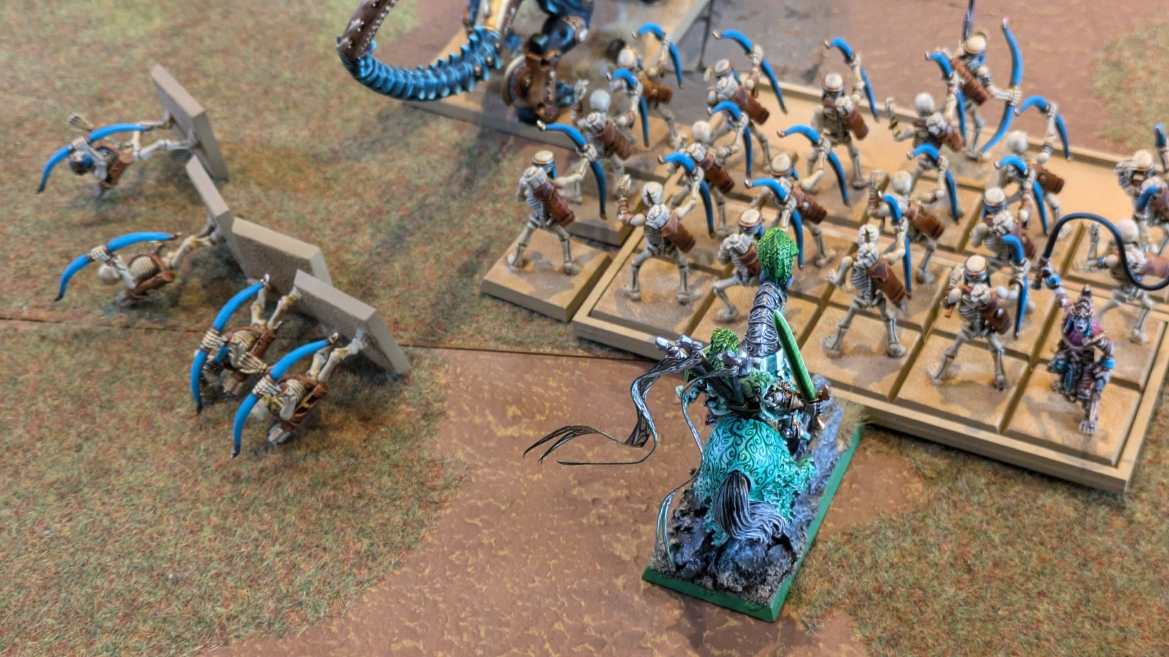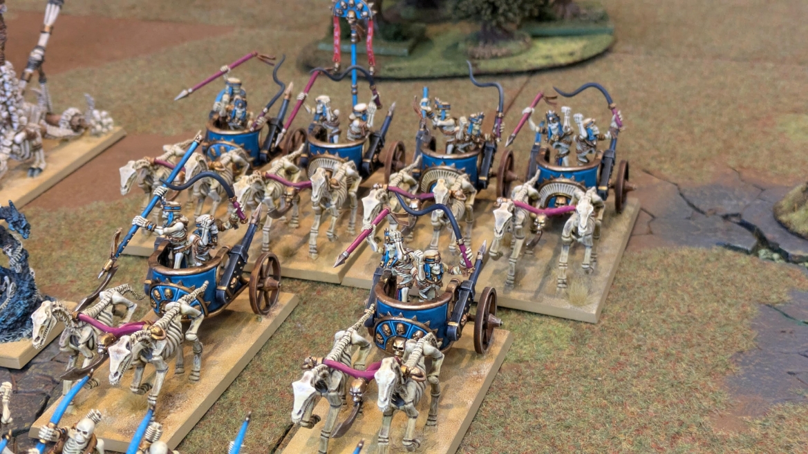 ウシャブティも登場です。単体での攻撃力はトップクラスではないものの、スケルトンウォーリアーに突撃したナイトの側面とかに突撃してきそうで、