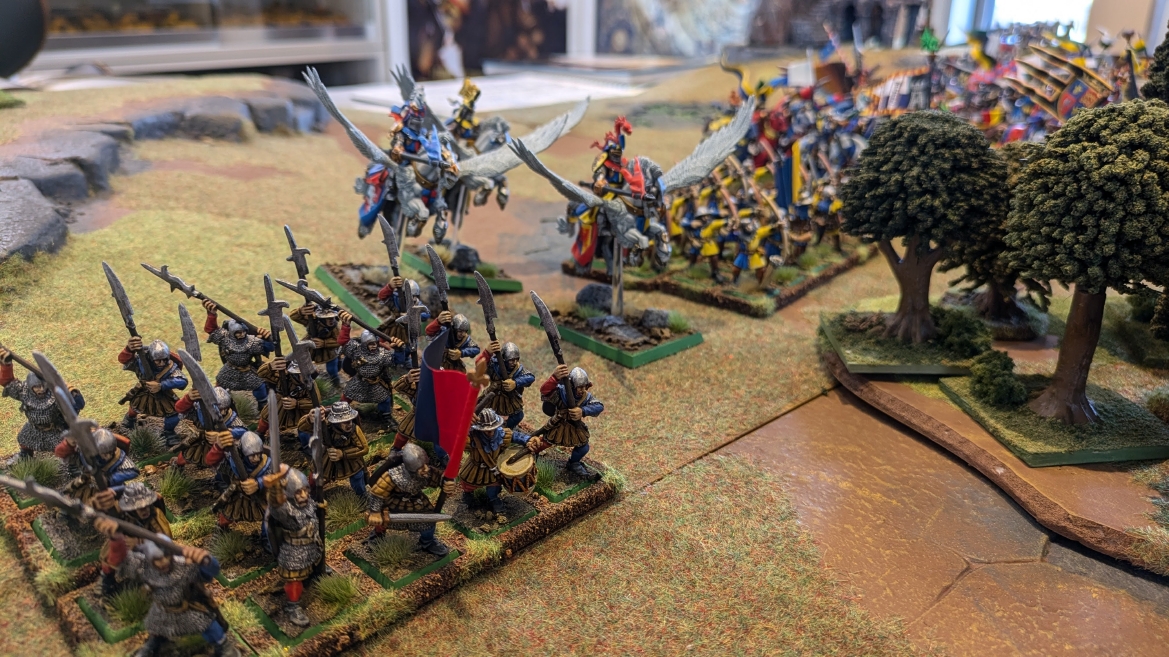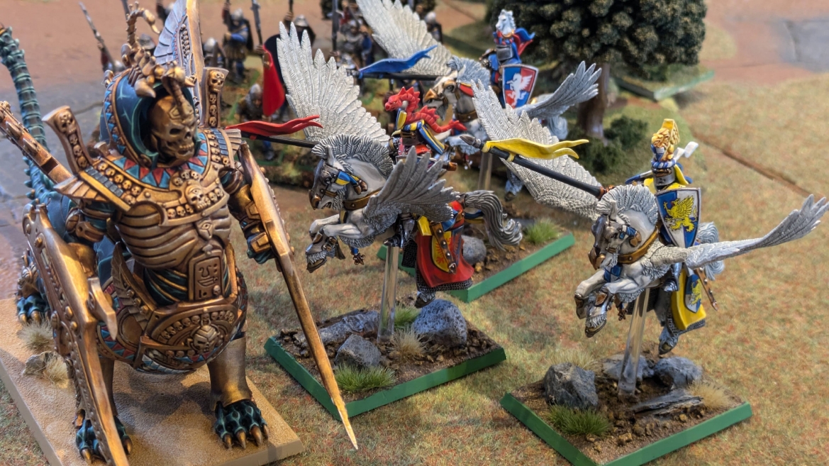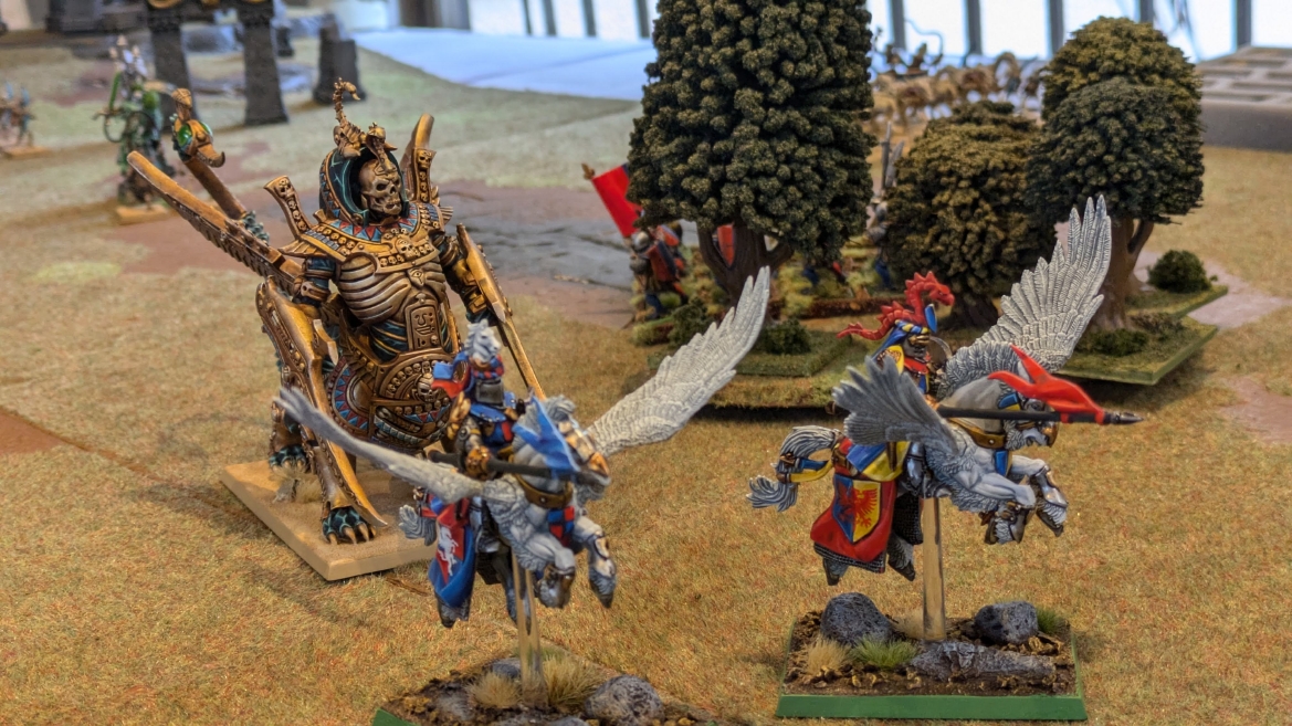 このバトルではついにペガサスナイトを投入しました。今回のブレトニアアーミーの定番の強い所といえばペガサスナイトなんだそうです。
