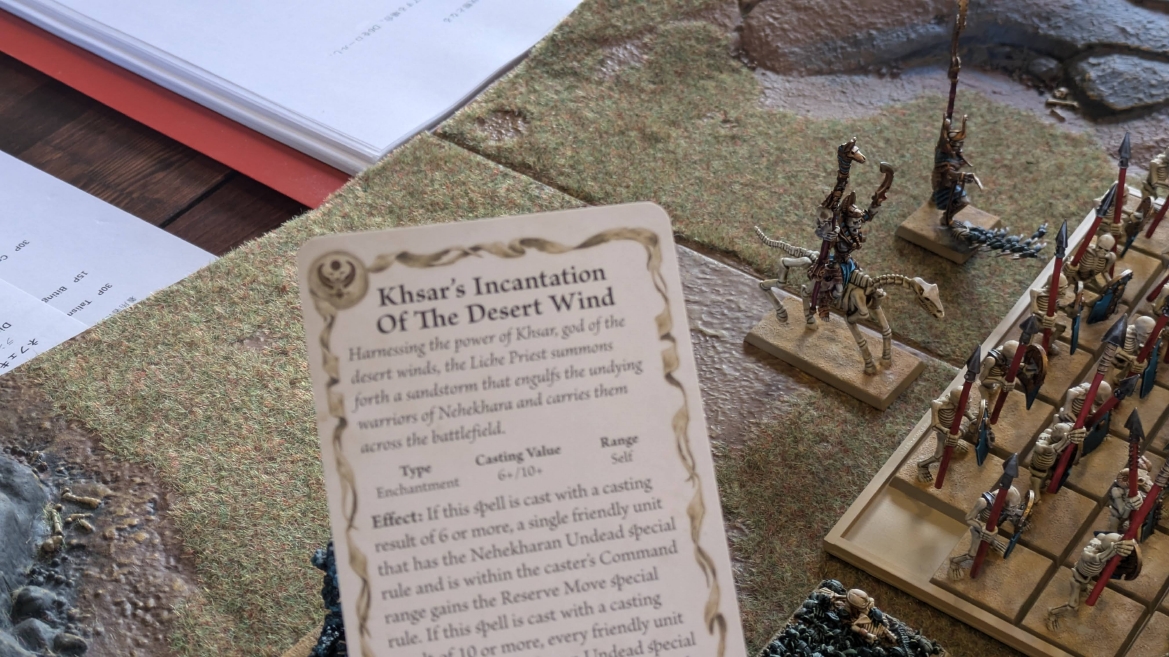 味方ユニットを追加移動させるデザートウィンドはトゥームキングアーミーの機動力を底上げする重要なマジックです。
