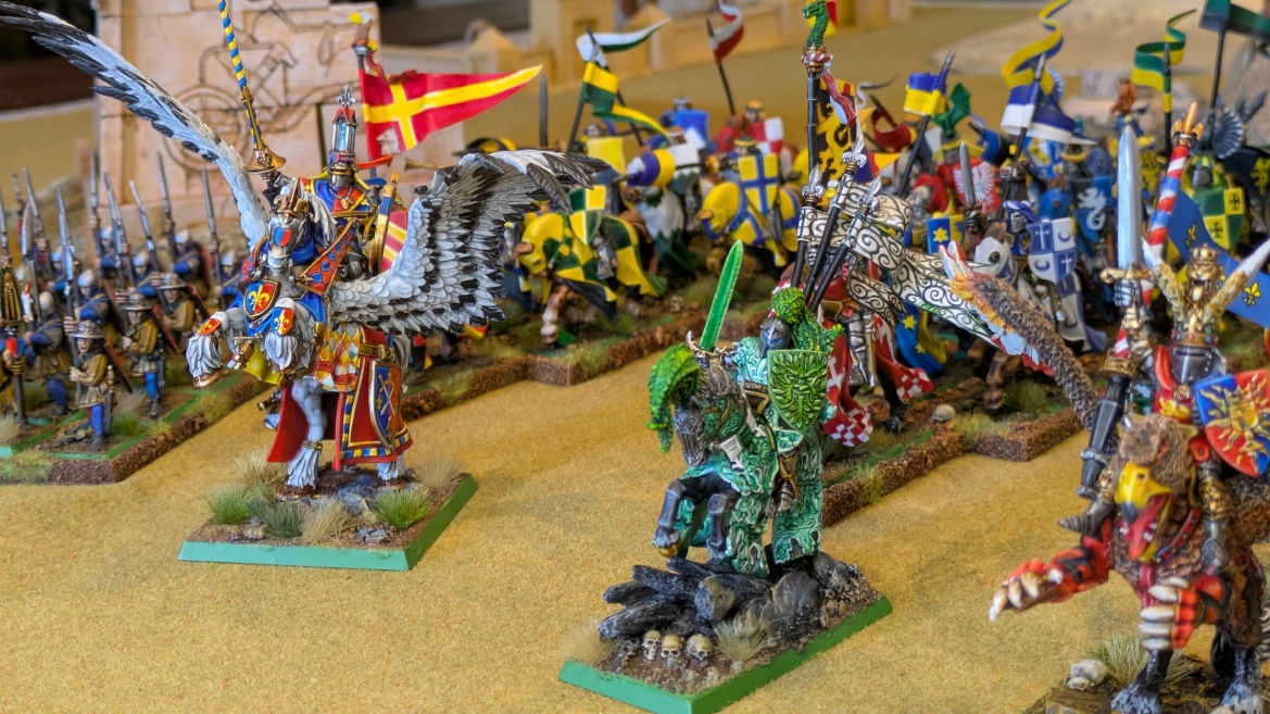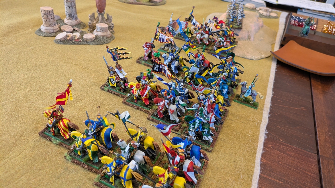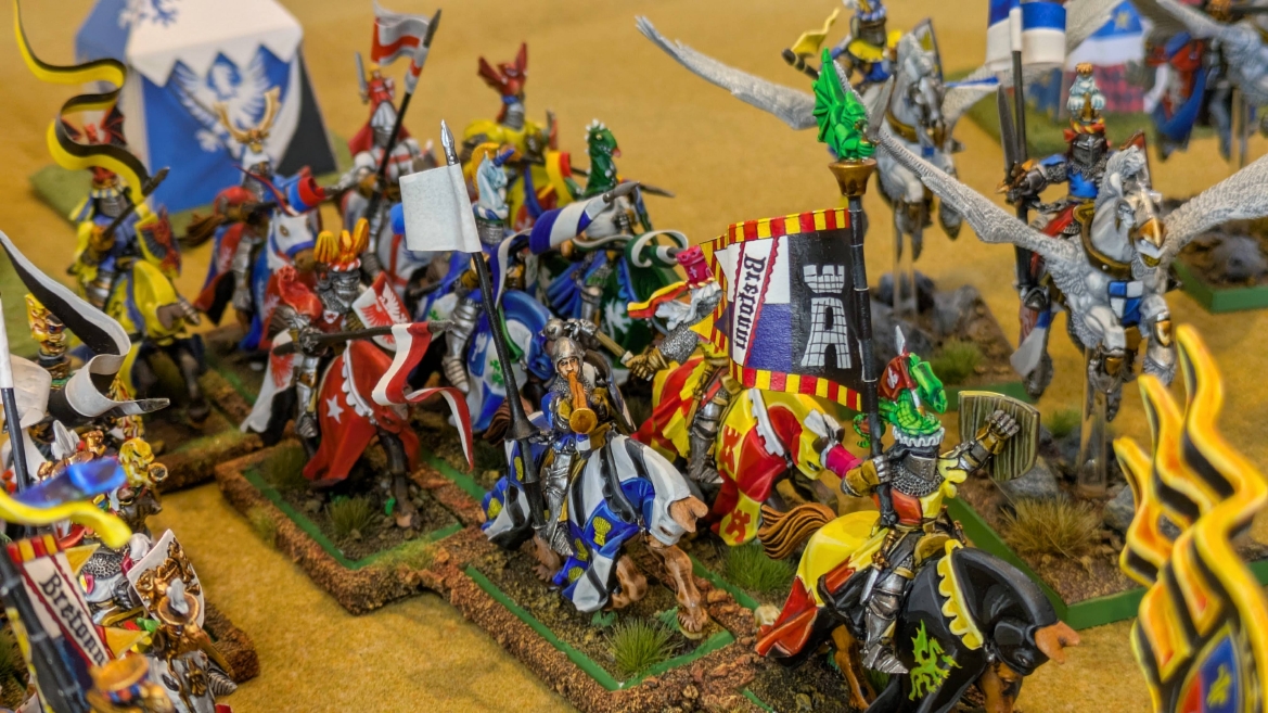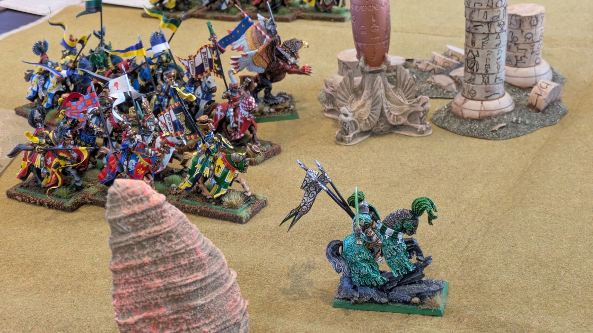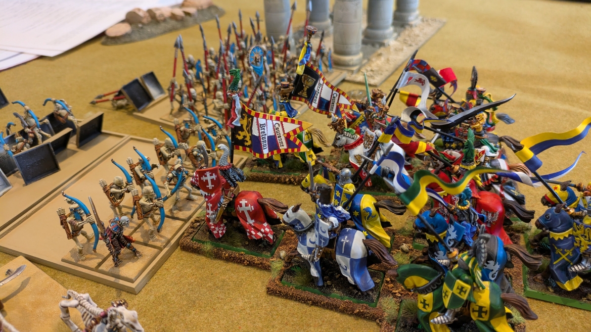 馬蹄の轟音が砂漠を震わせ、聖なる旗の下、騎士たちはトゥームキングの骸骨軍勢を無慈悲に蹂躙する。