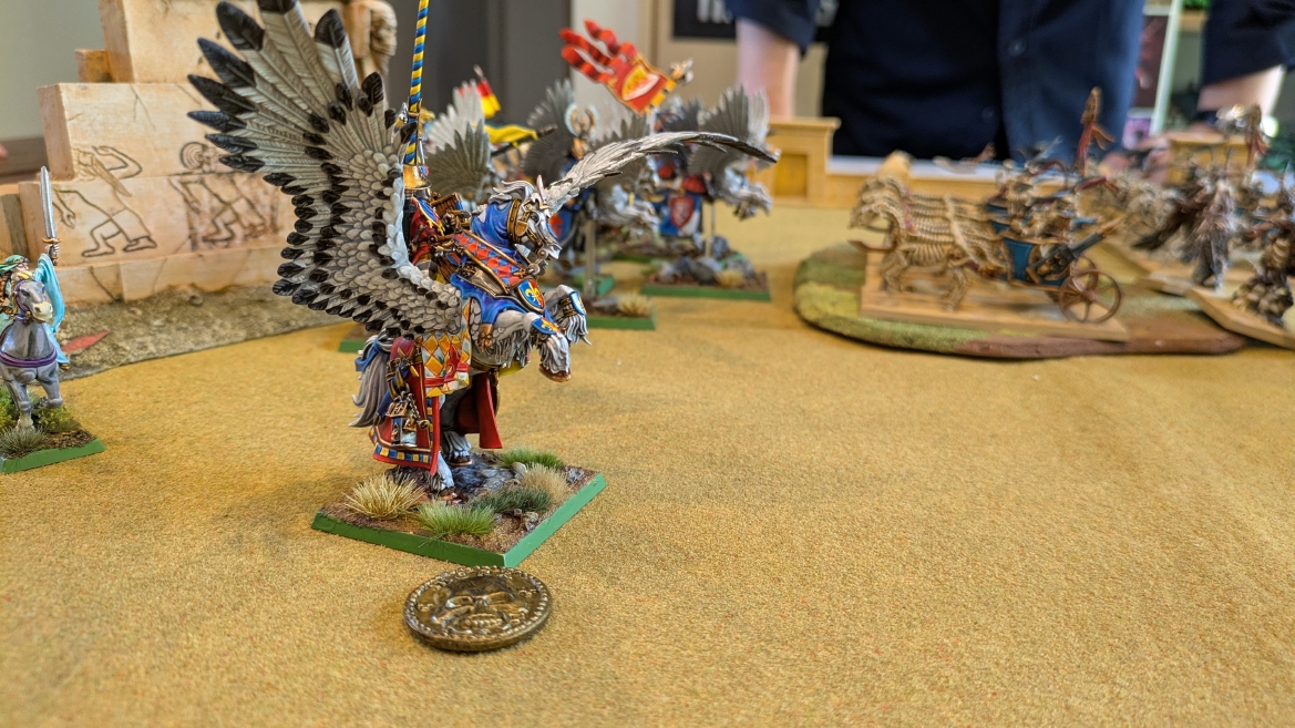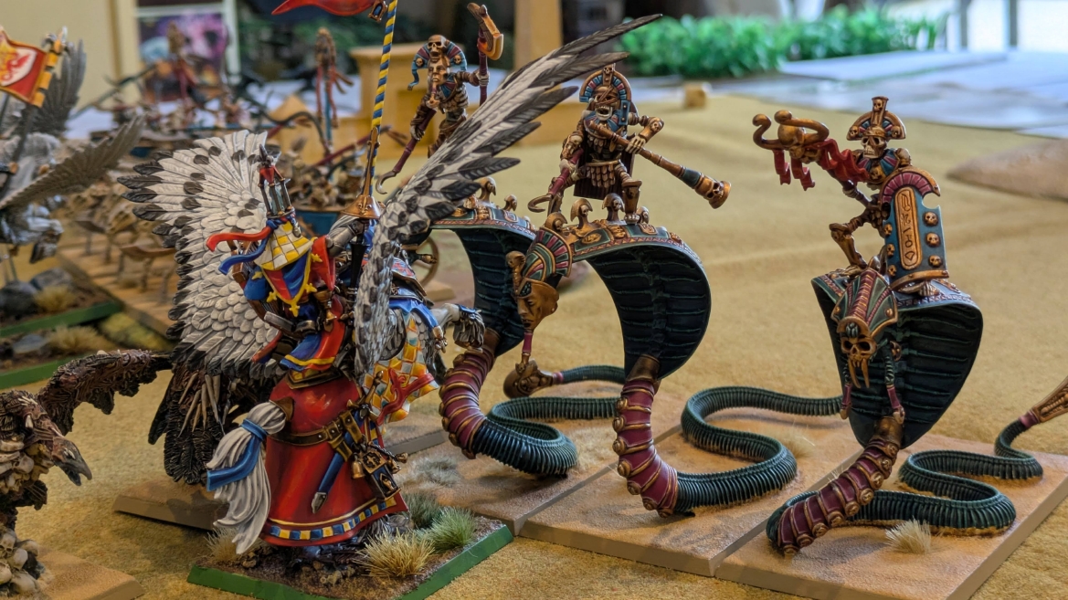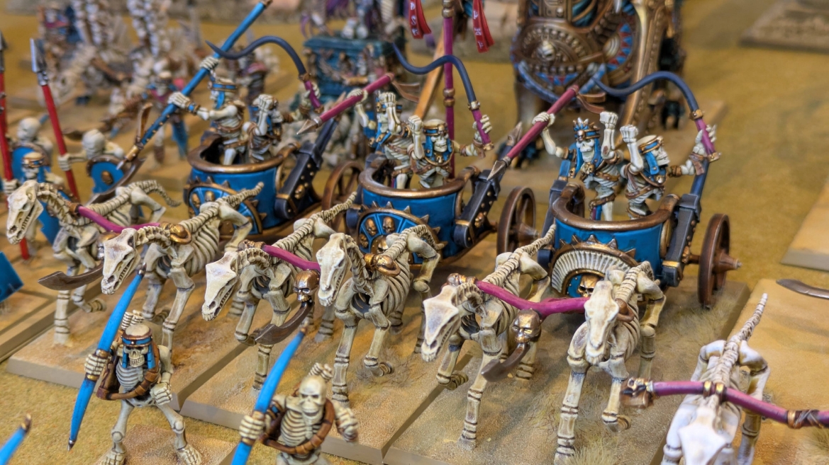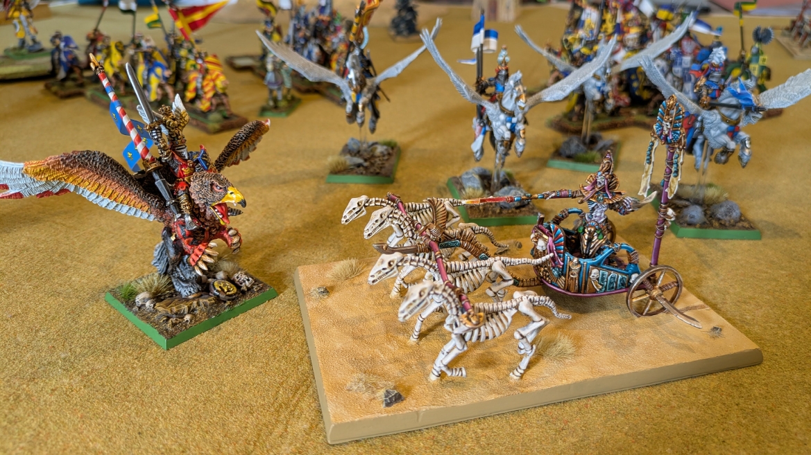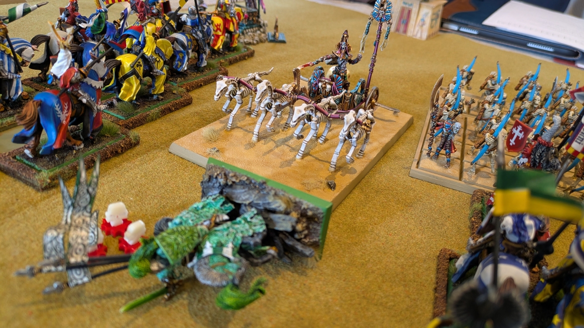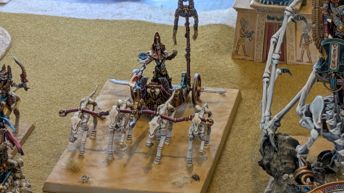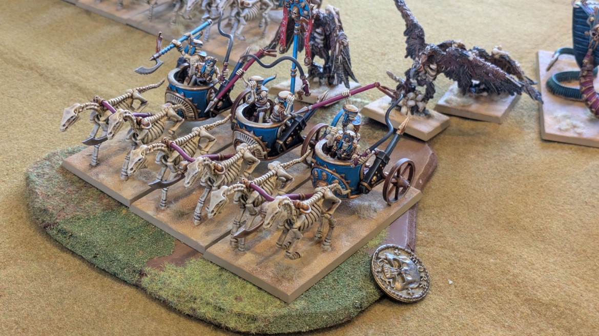 その戦場の中心、不死の王セトラは神々のチャリオットに騎乗し、迫りくるブレトニア騎士を見据えていた。