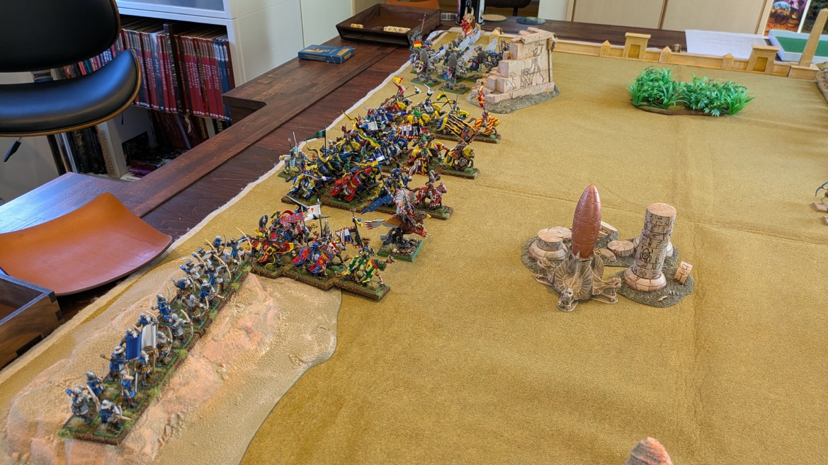 事前にはたさんと相談して、「王国崩壊寸前のブレトニアが死者の砂漠に出向き停戦交渉を試みたが失敗し、結局戦う羽目になってしまう的な感じでいきますか」
