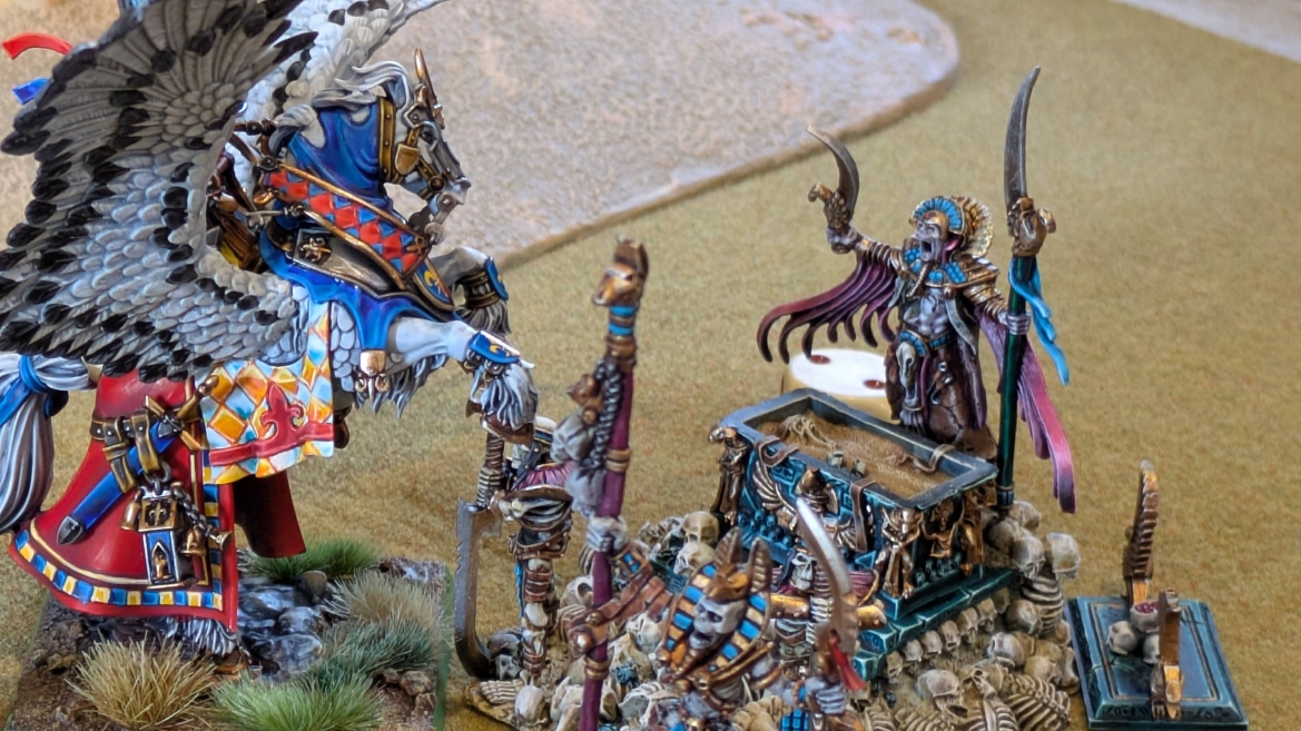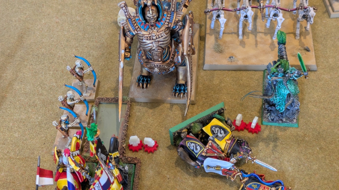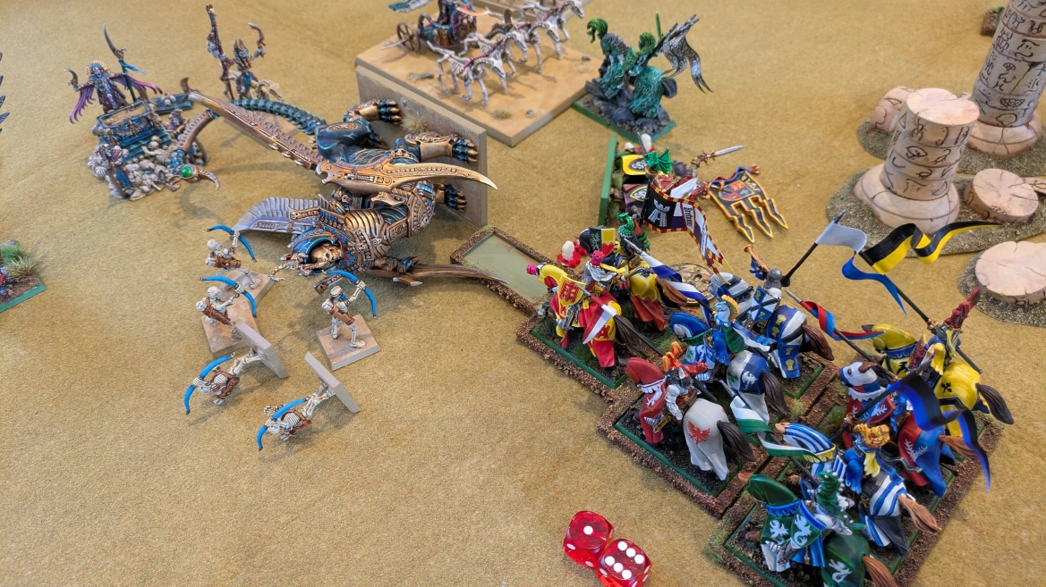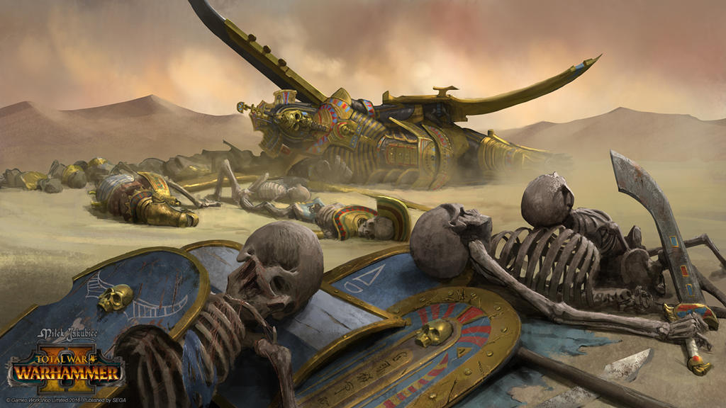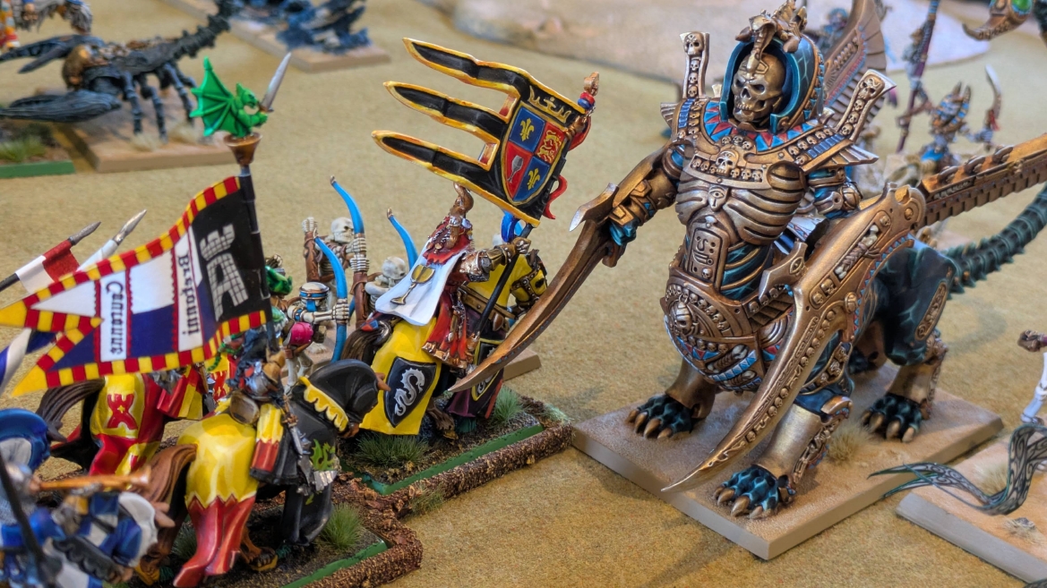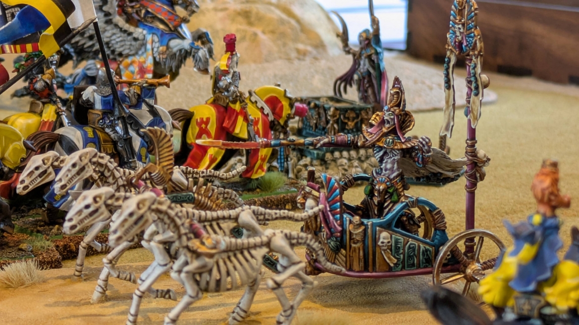 死者の砂漠は血と骨の海と化していた。かつて黄金の輝きを誇ったセトラ王の不死の軍勢は、ブレトニアの騎士たちの剣と槍によって粉砕され、砂塵の中に散っていた。