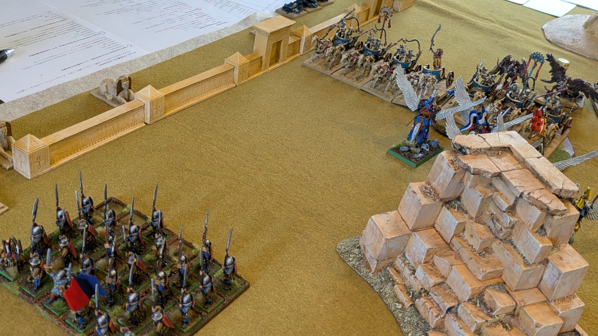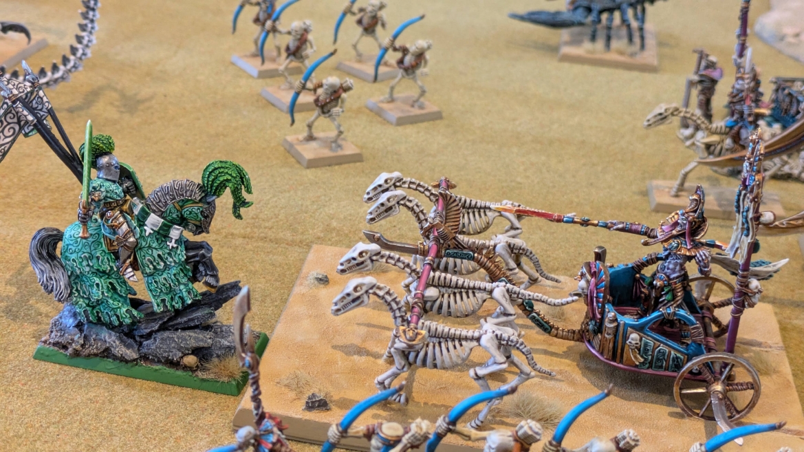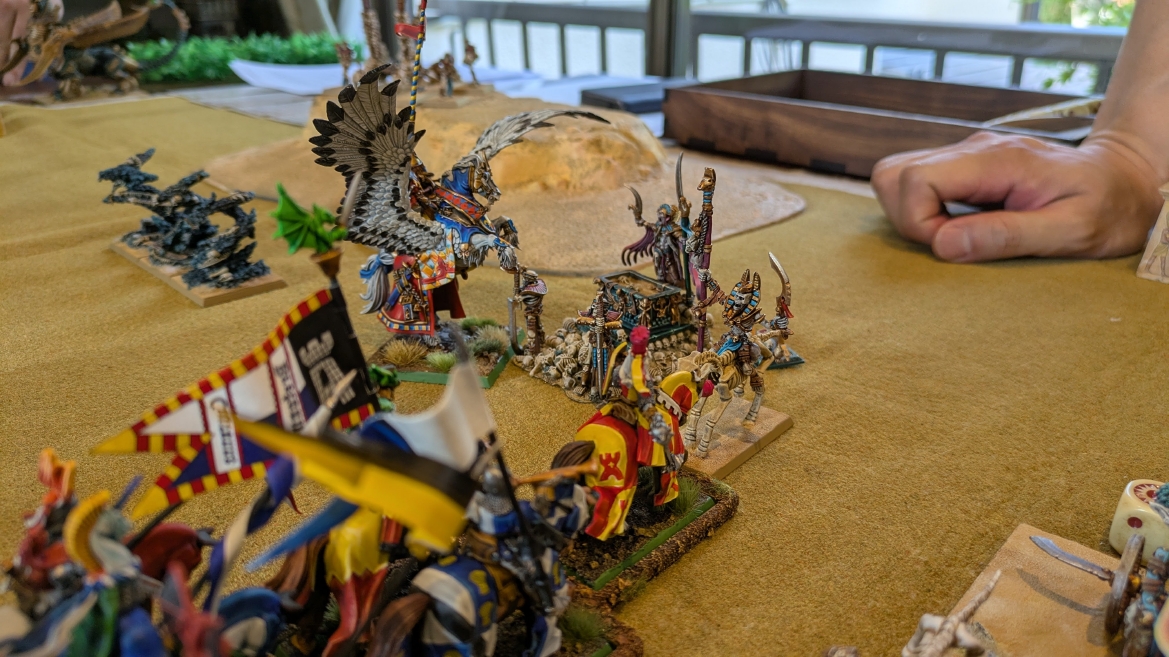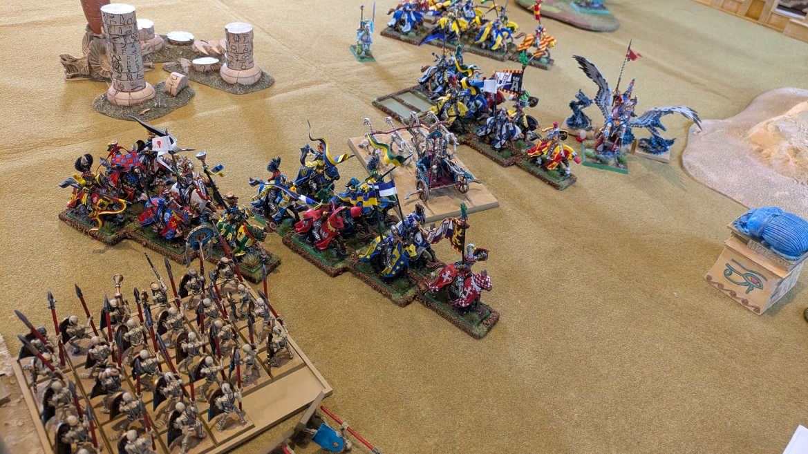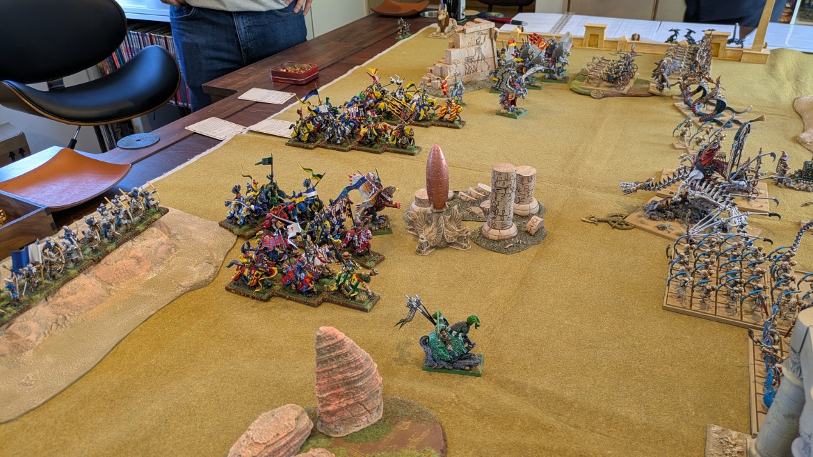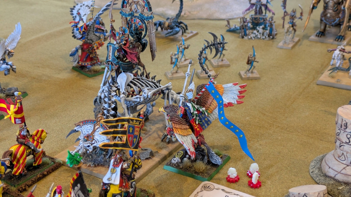 死者の砂漠は血と骨の海と化していた。かつて黄金の輝きを誇ったセトラ王の不死の軍勢は、ブレトニアの騎士たちの剣と槍によって粉砕され、砂塵の中に散っていた。