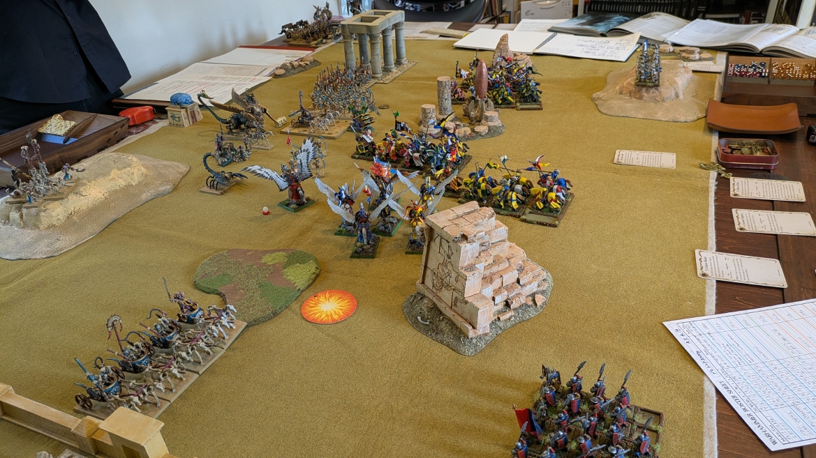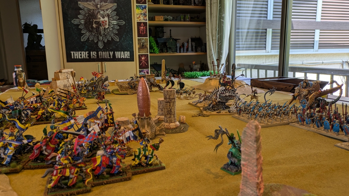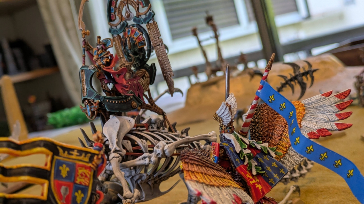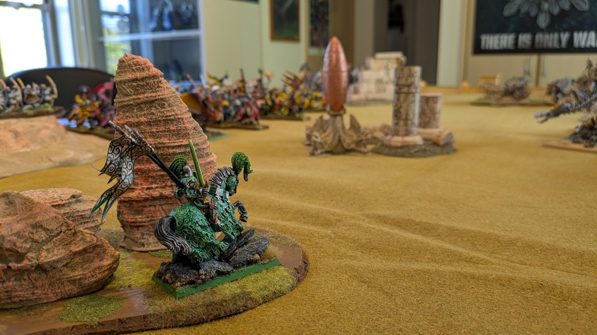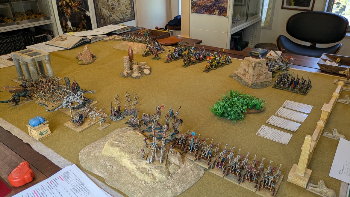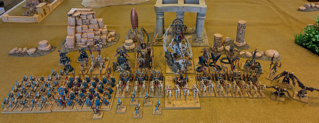 死者の砂漠は血と骨の海と化していた。かつて黄金の輝きを誇ったセトラ王の不死の軍勢は、ブレトニアの騎士たちの剣と槍によって粉砕され、砂塵の中に散っていた。