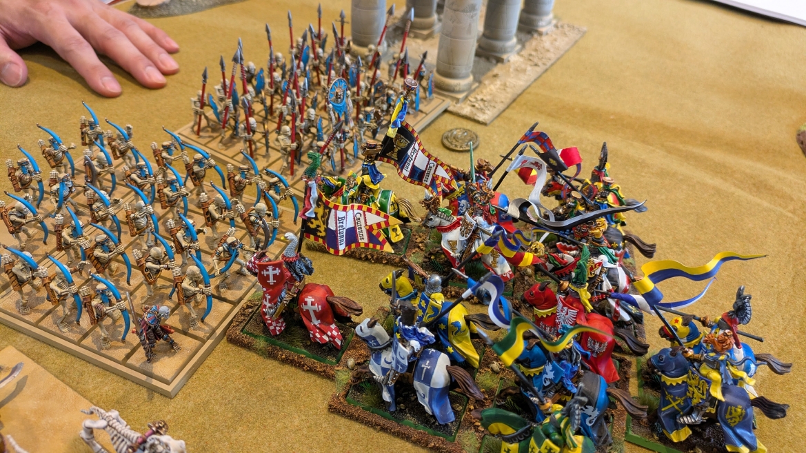 勢いに乗ったブレトニアの騎士たちは、傷だらけになりながらも致命傷を奇跡的に回避し、骨の軍勢を次々と打ち砕いた。