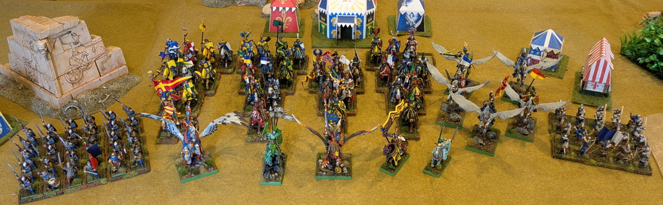 彼の背後には、忠実な従者たちがわずかな護衛とともに控えていたが、駐屯地に残してきたブレトニアの軍勢はすでに疲弊し、かつての栄光は色褪せていた。