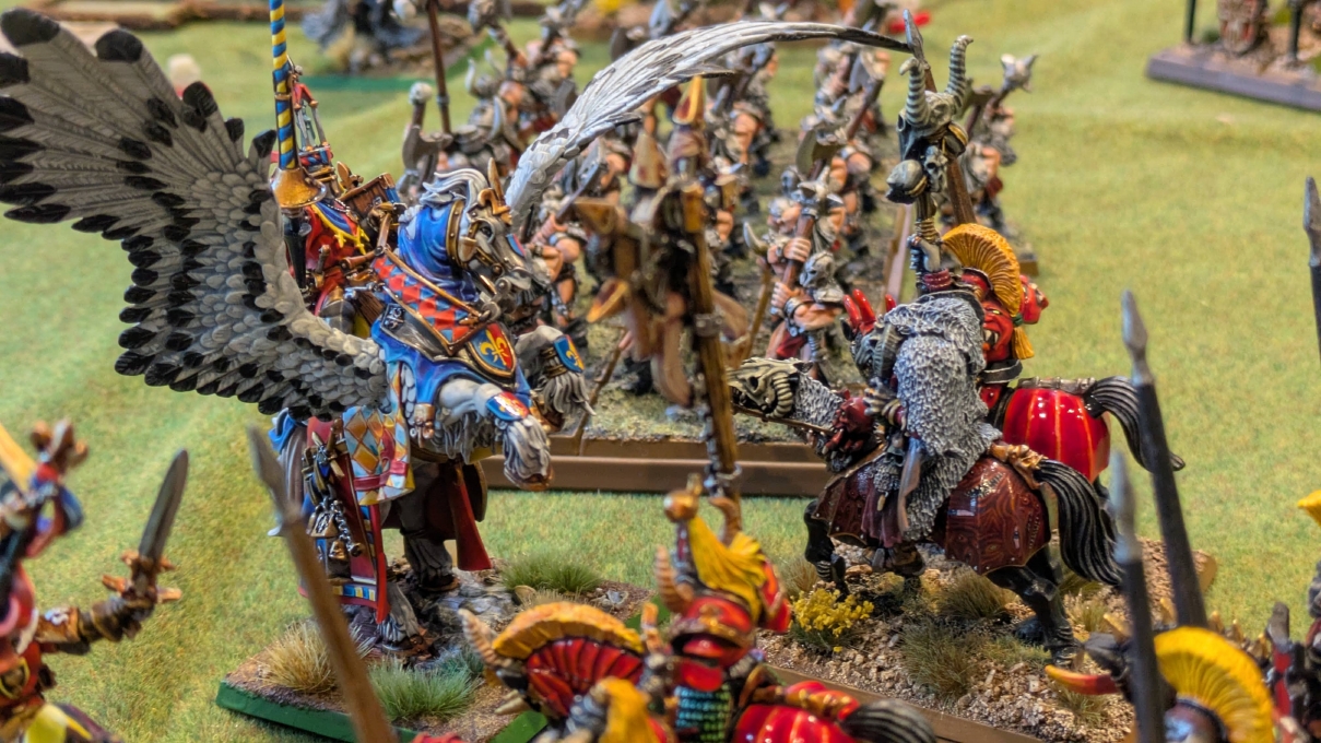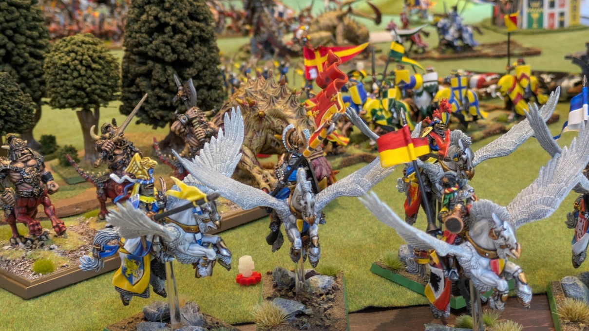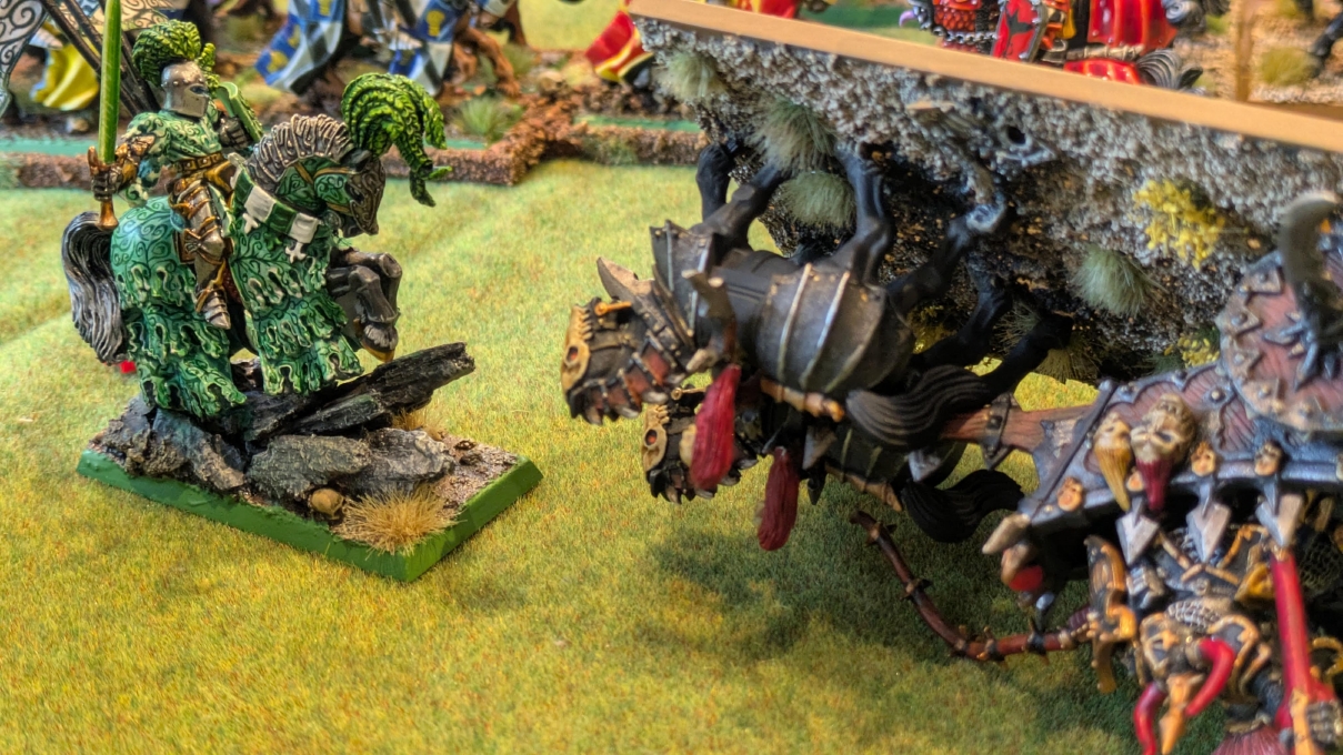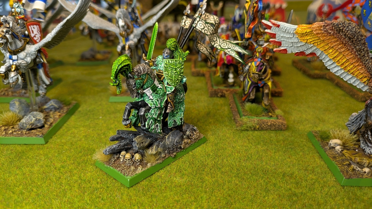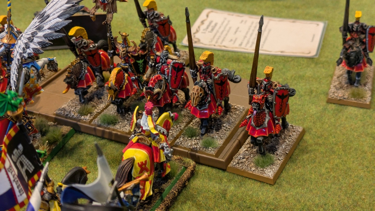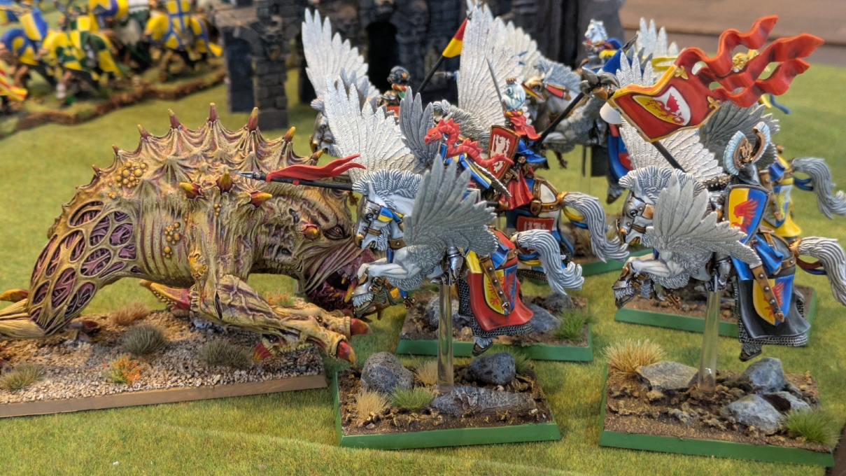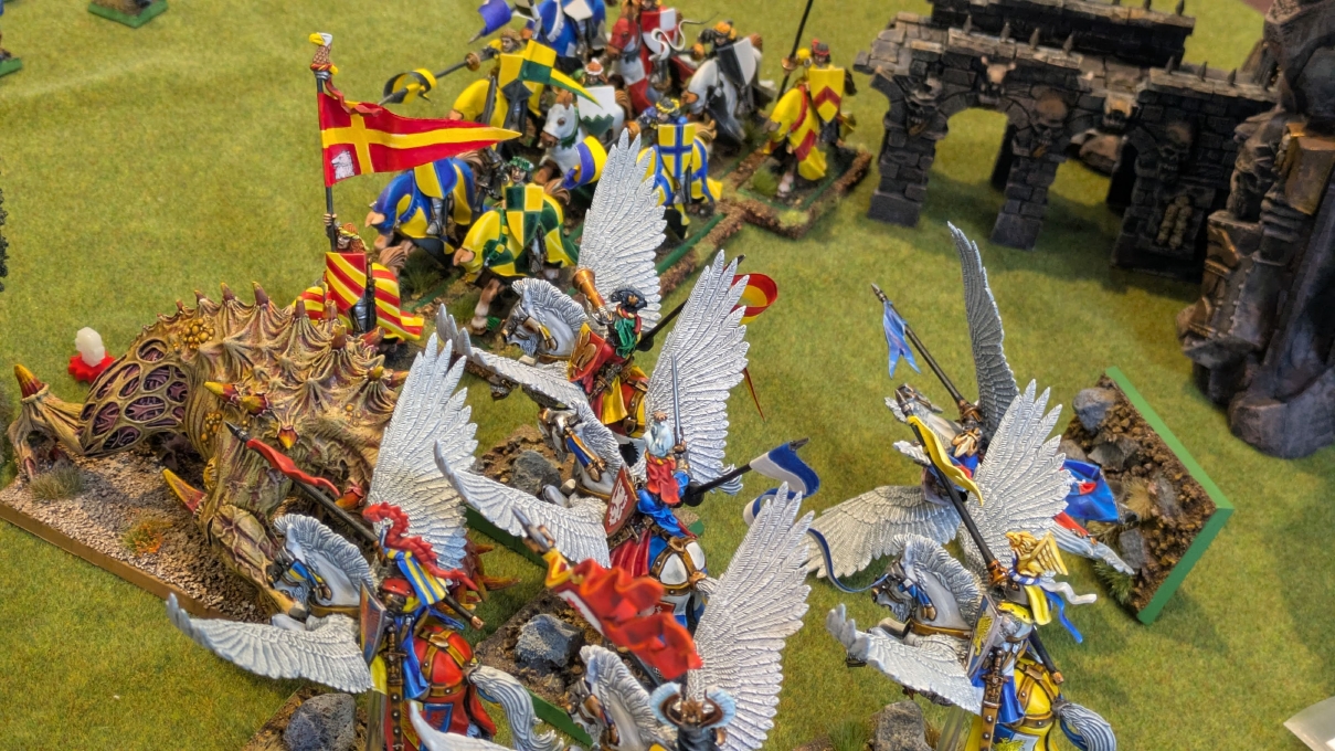 アルデバルトはペガサスを旋回させ、ケイオスナイトの背後を突く。ナイト・オブ・ザ・レルムは再び隊列を組み、槍を構えてマローダーを押し返す。
