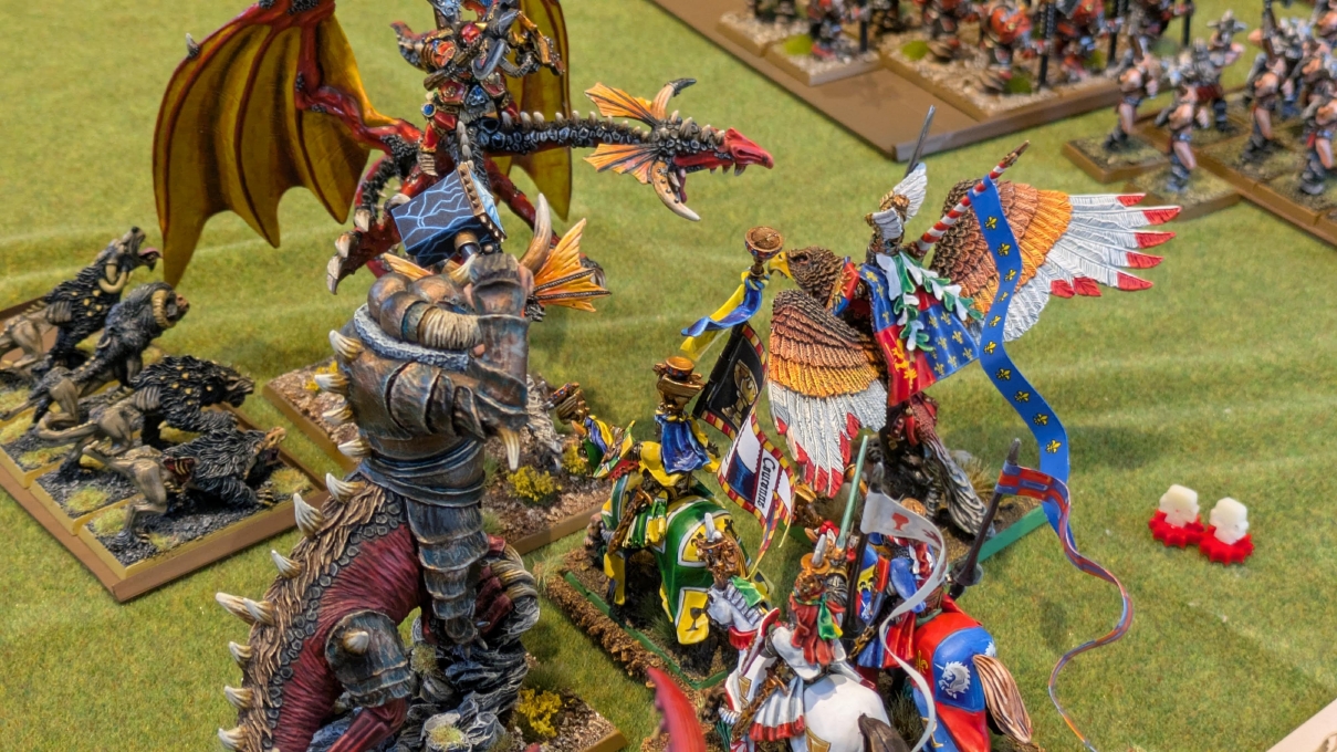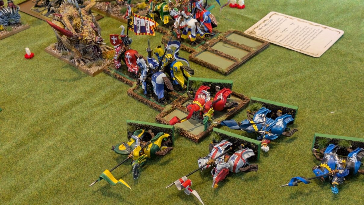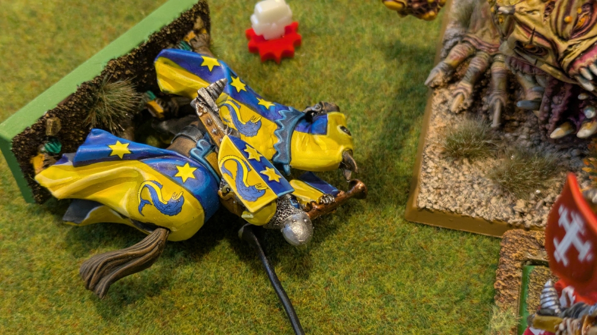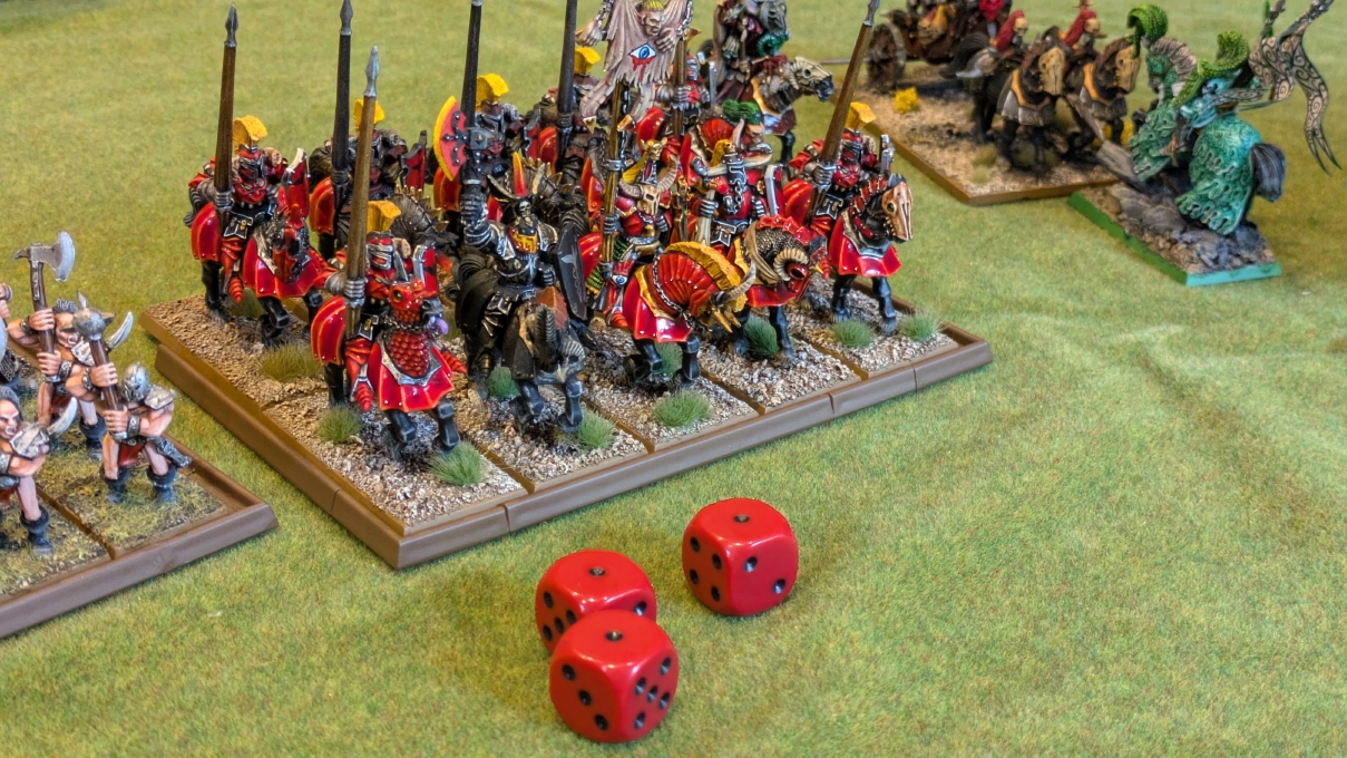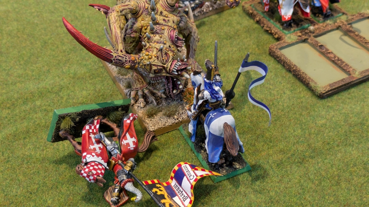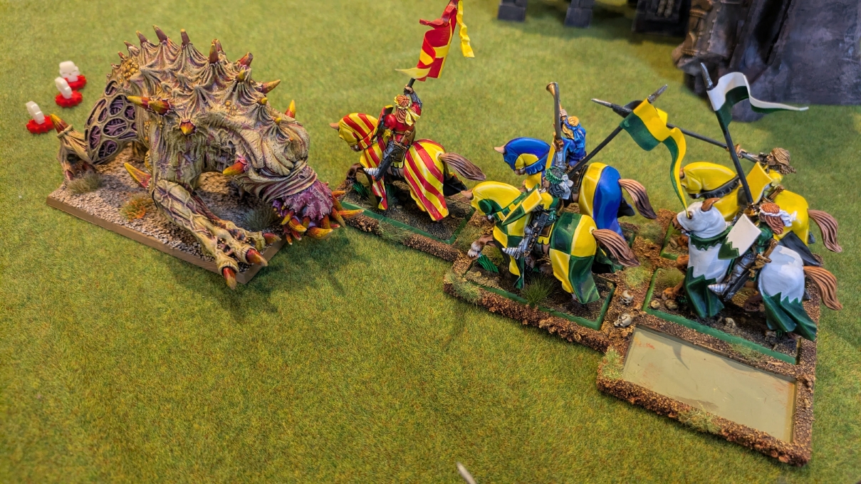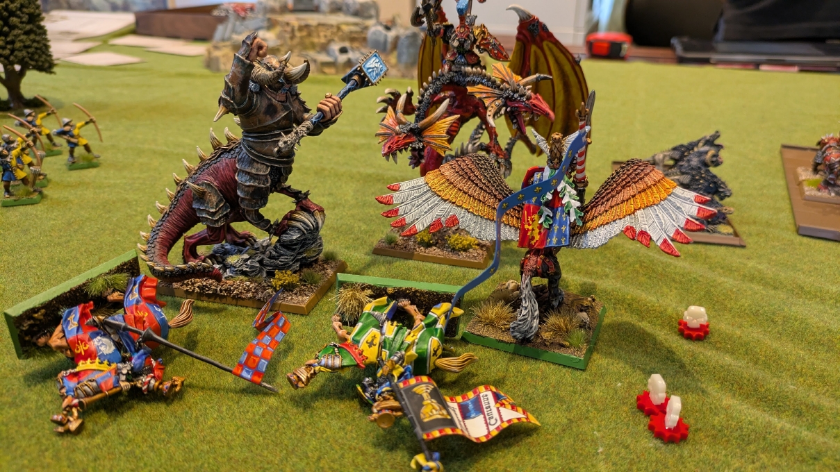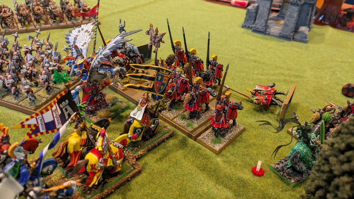 アルデバルトはペガサスを旋回させ、ケイオスナイトの背後を突く。ナイト・オブ・ザ・レルムは再び隊列を組み、槍を構えてマローダーを押し返す。