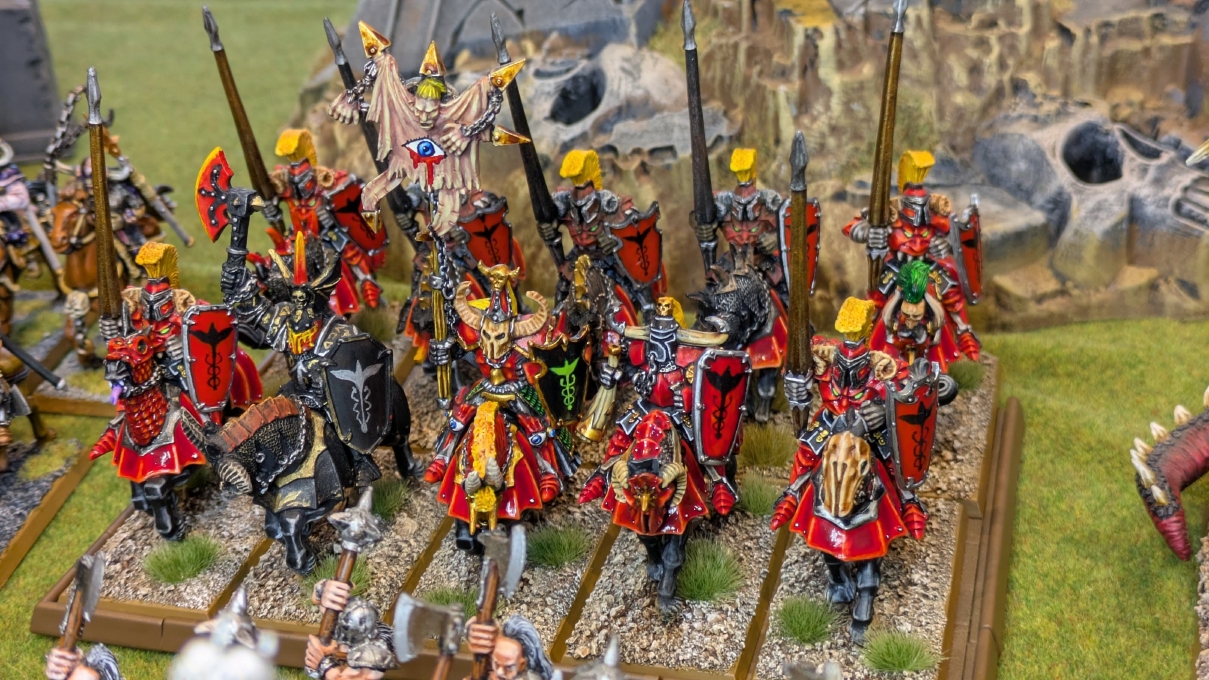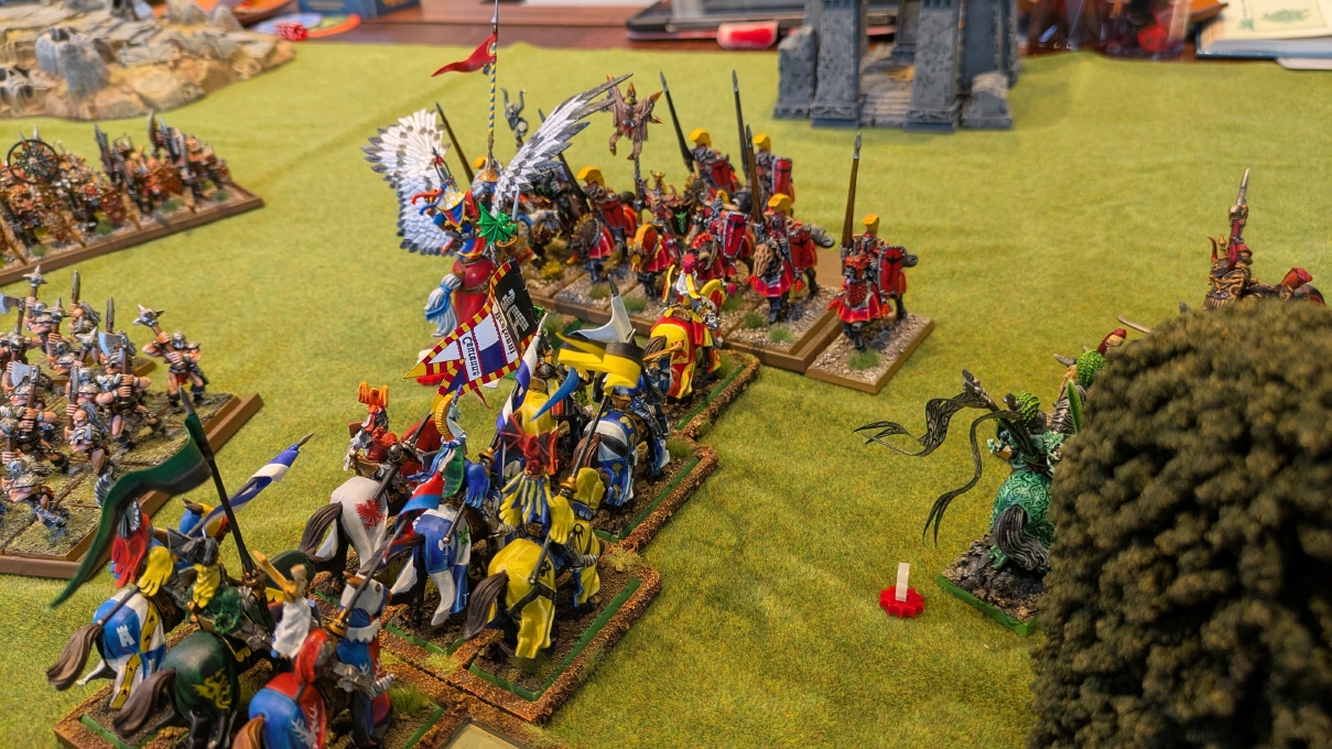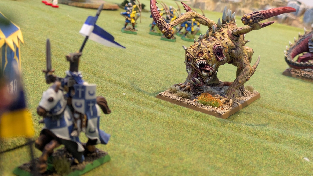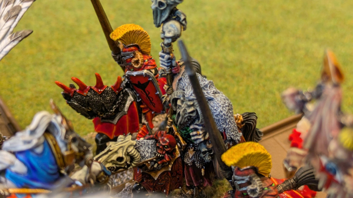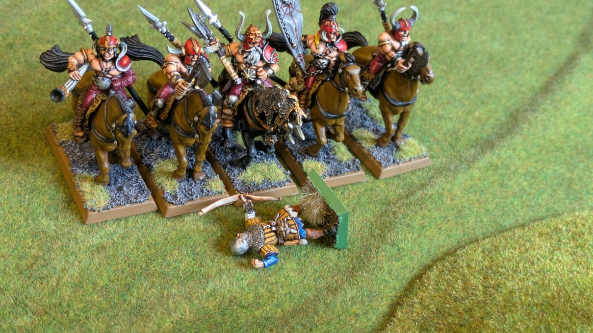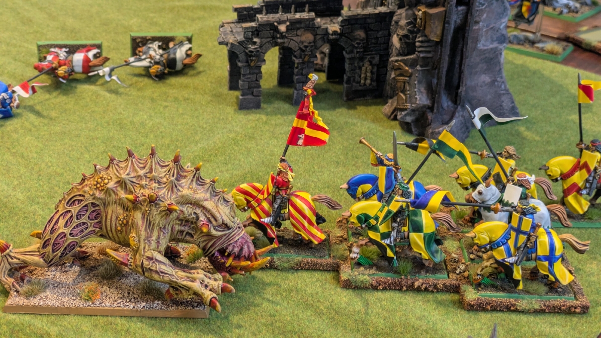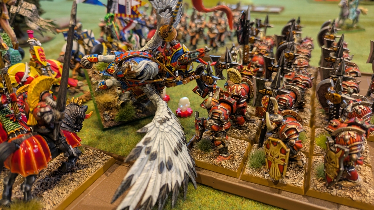 アルデバルトはペガサスを旋回させ、ケイオスナイトの背後を突く。ナイト・オブ・ザ・レルムは再び隊列を組み、槍を構えてマローダーを押し返す。