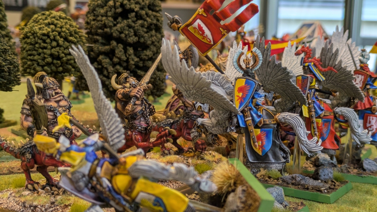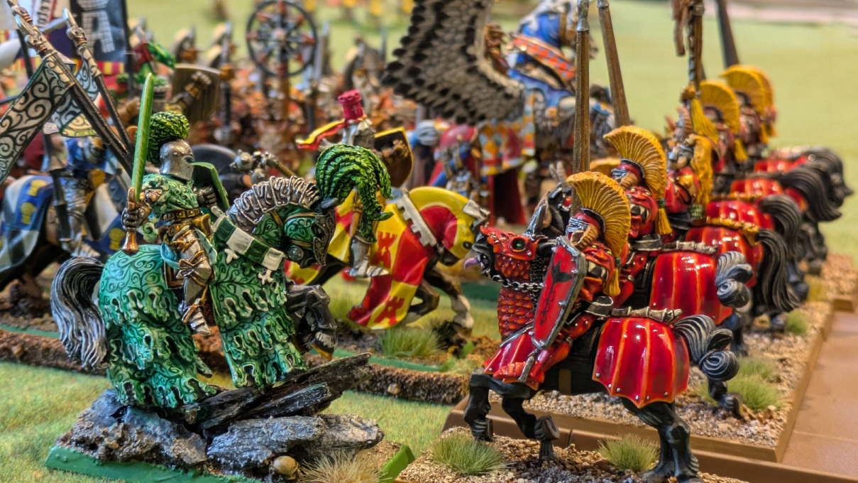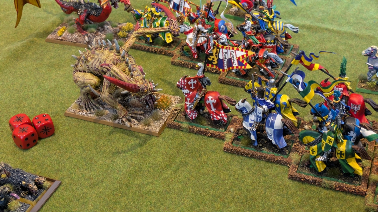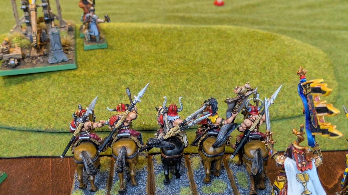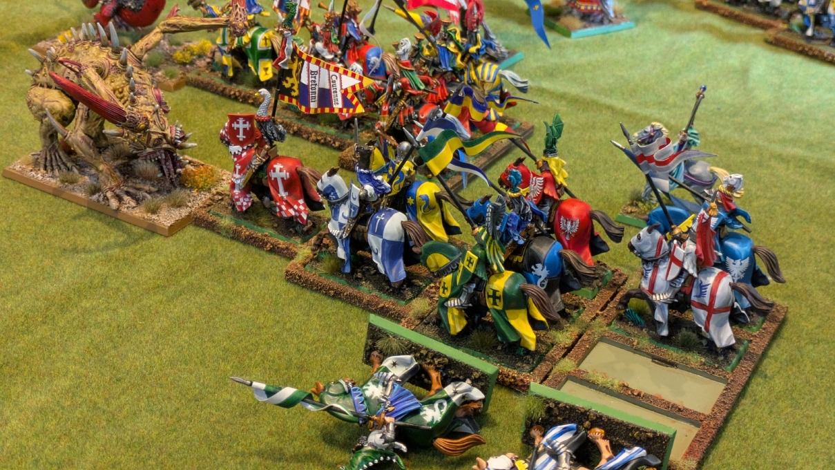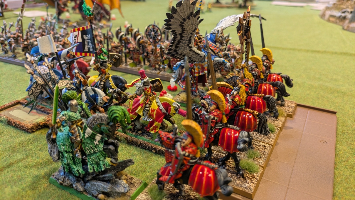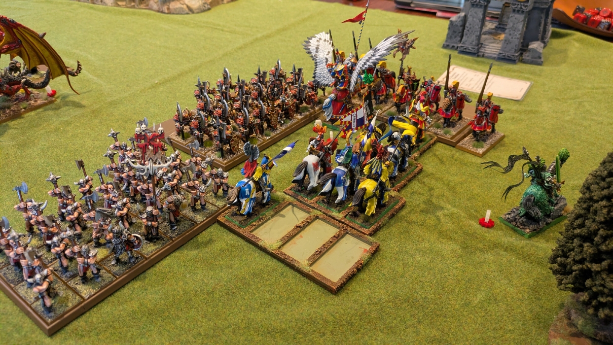 アルデバルトはペガサスを旋回させ、ケイオスナイトの背後を突く。ナイト・オブ・ザ・レルムは再び隊列を組み、槍を構えてマローダーを押し返す。