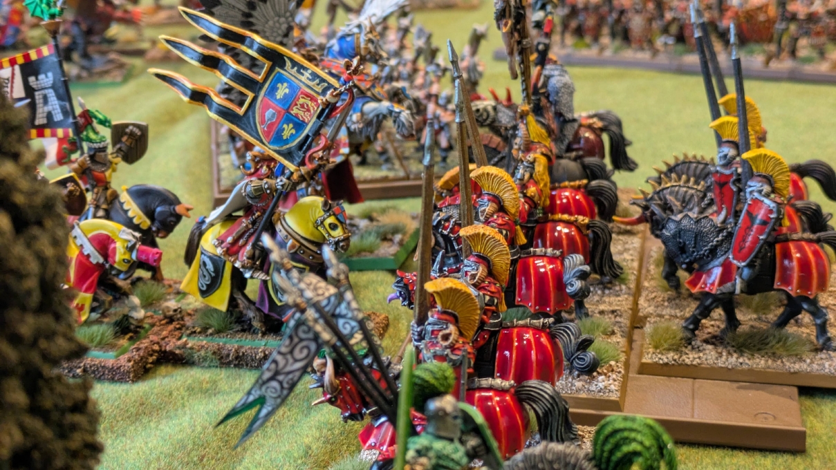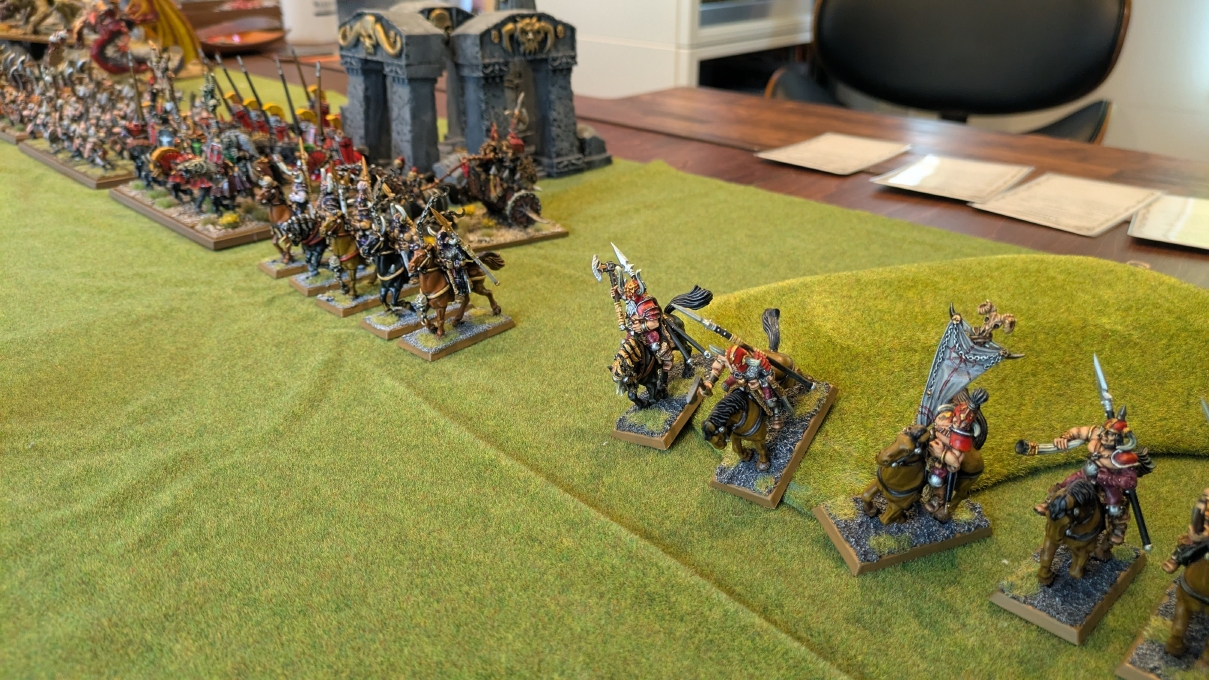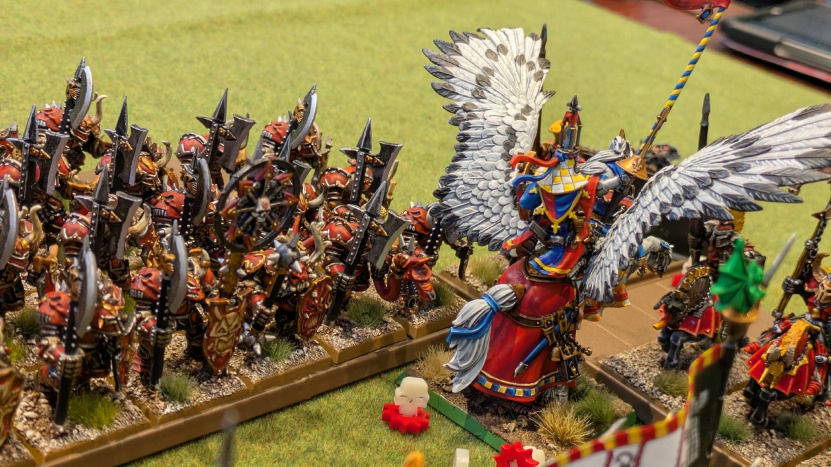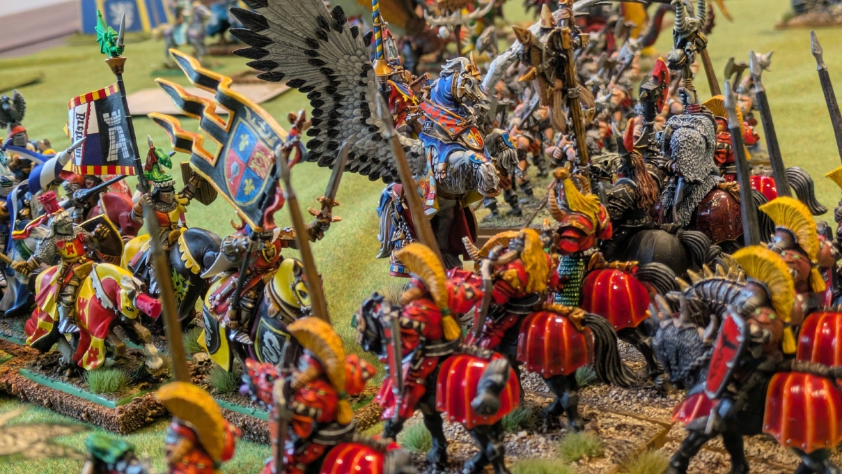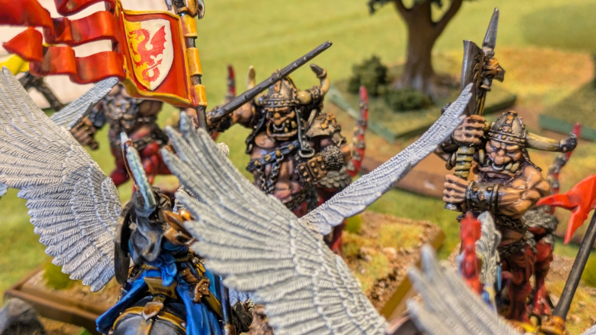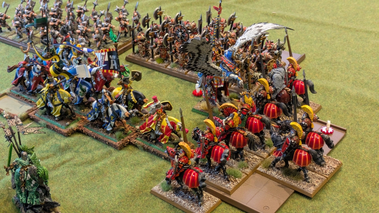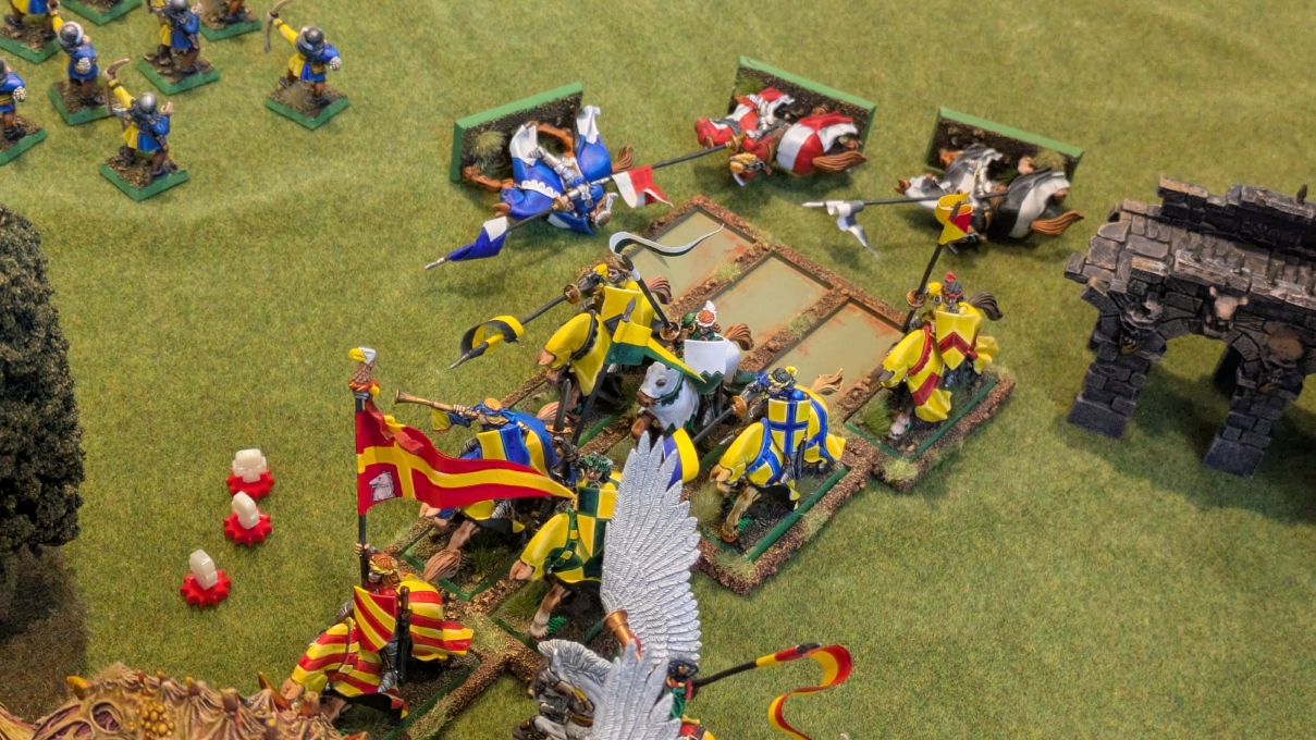 アルデバルトはペガサスを旋回させ、ケイオスナイトの背後を突く。ナイト・オブ・ザ・レルムは再び隊列を組み、槍を構えてマローダーを押し返す。