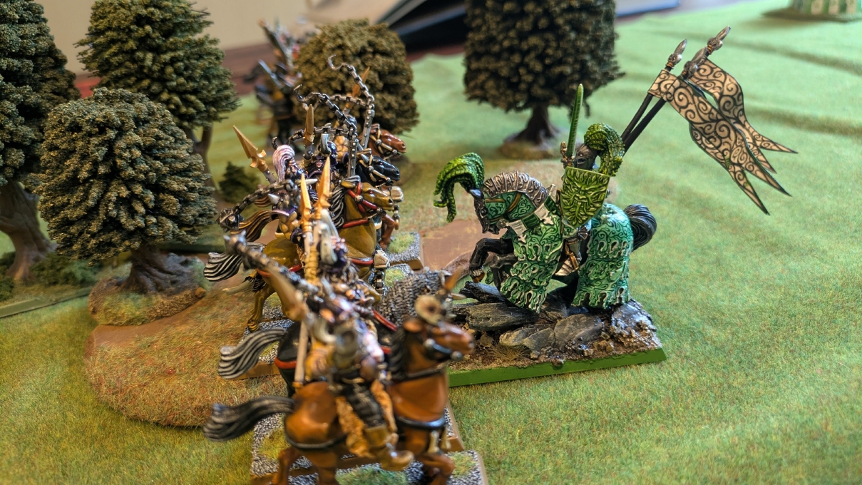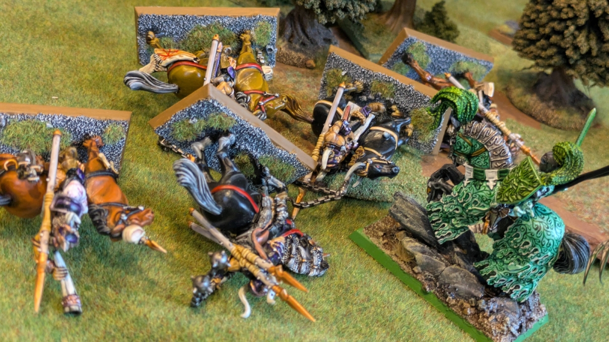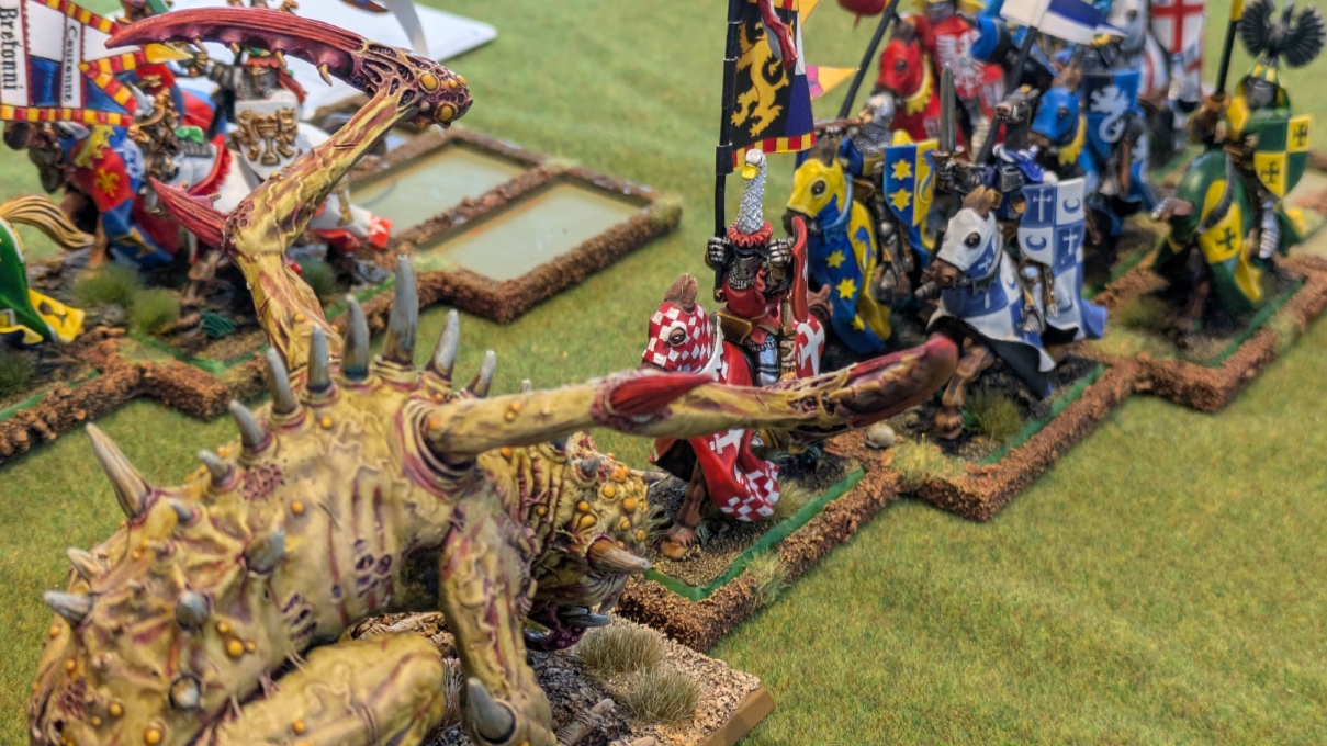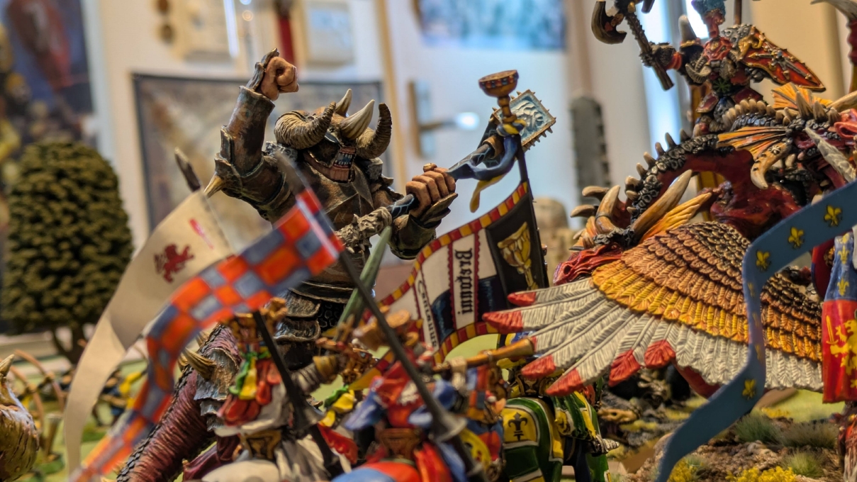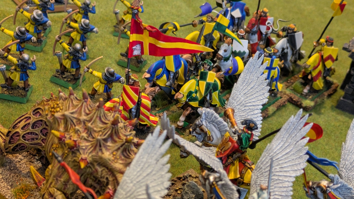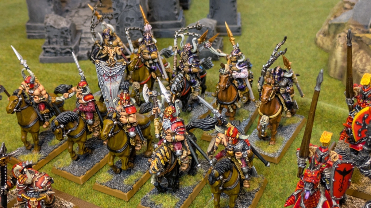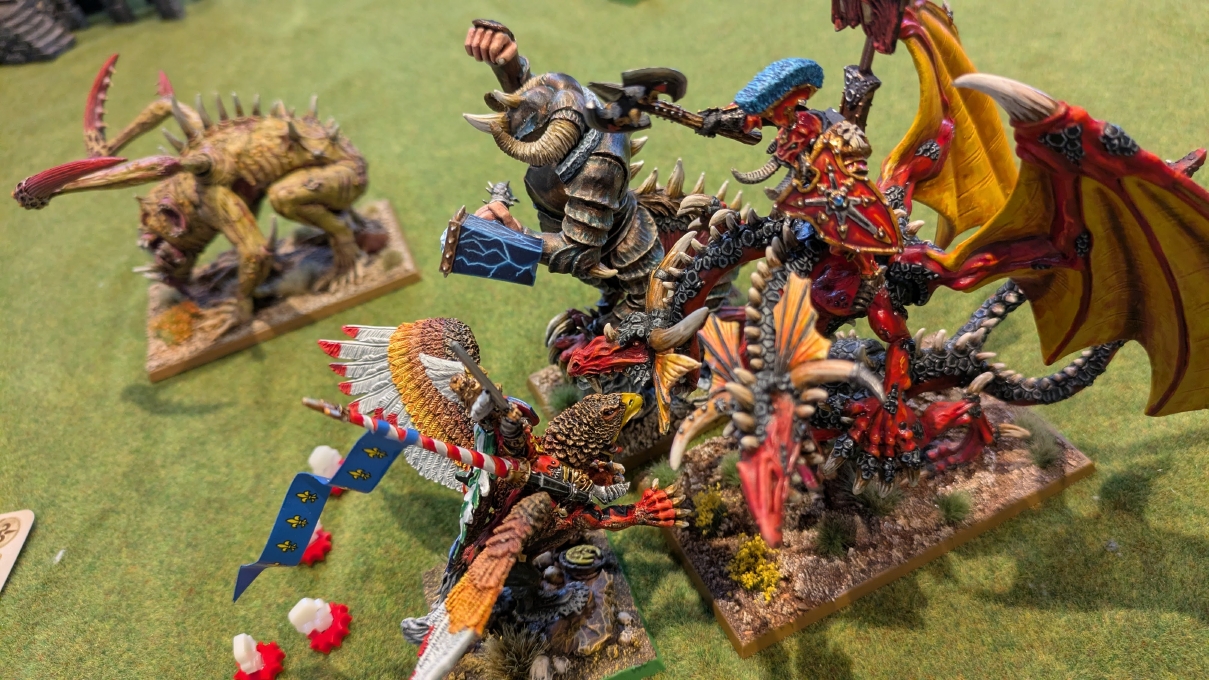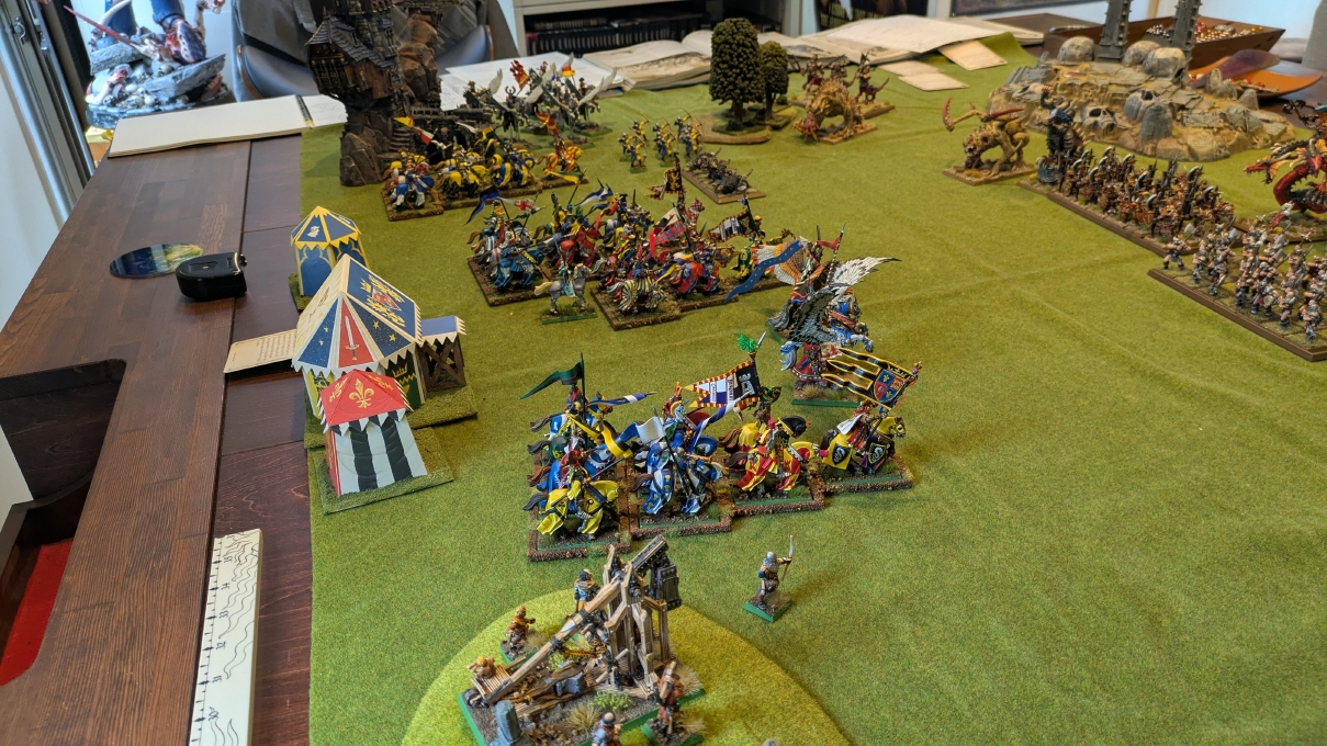アルデバルトはペガサスを旋回させ、ケイオスナイトの背後を突く。ナイト・オブ・ザ・レルムは再び隊列を組み、槍を構えてマローダーを押し返す。