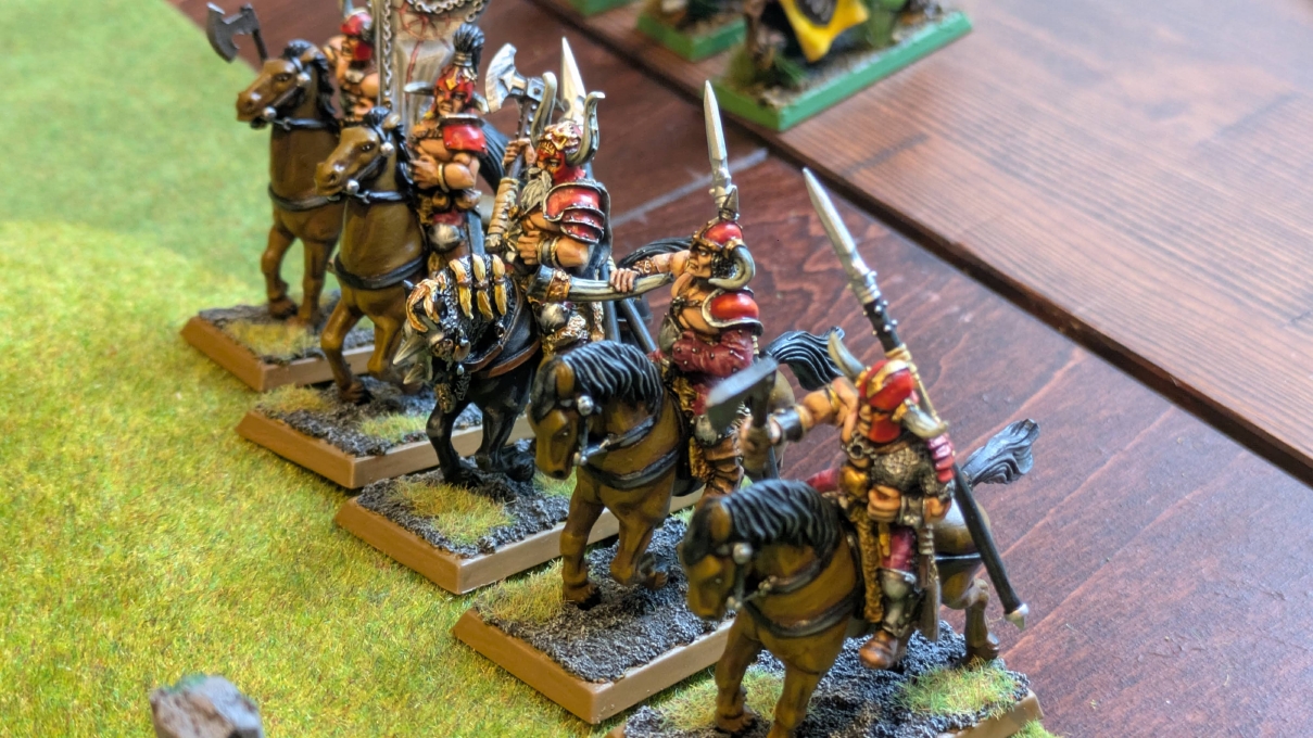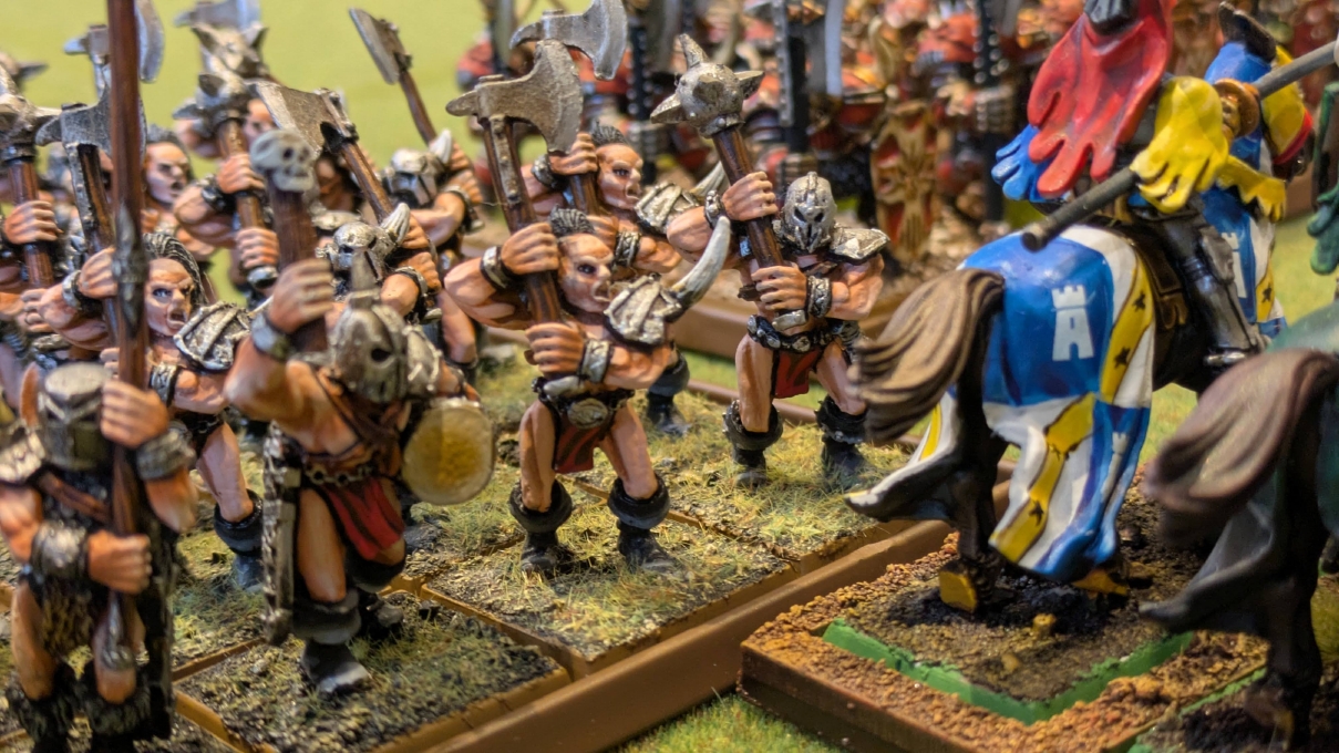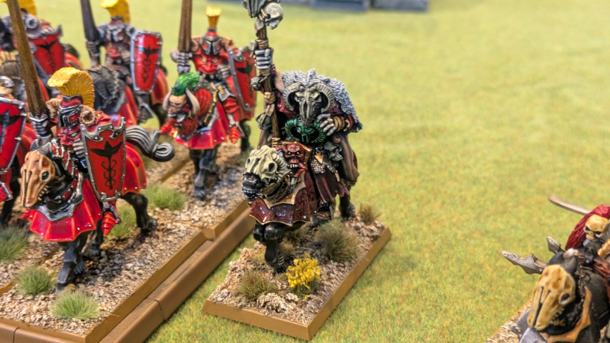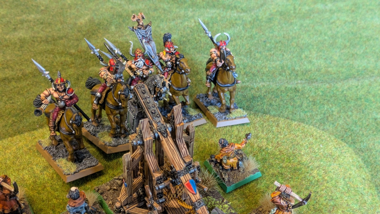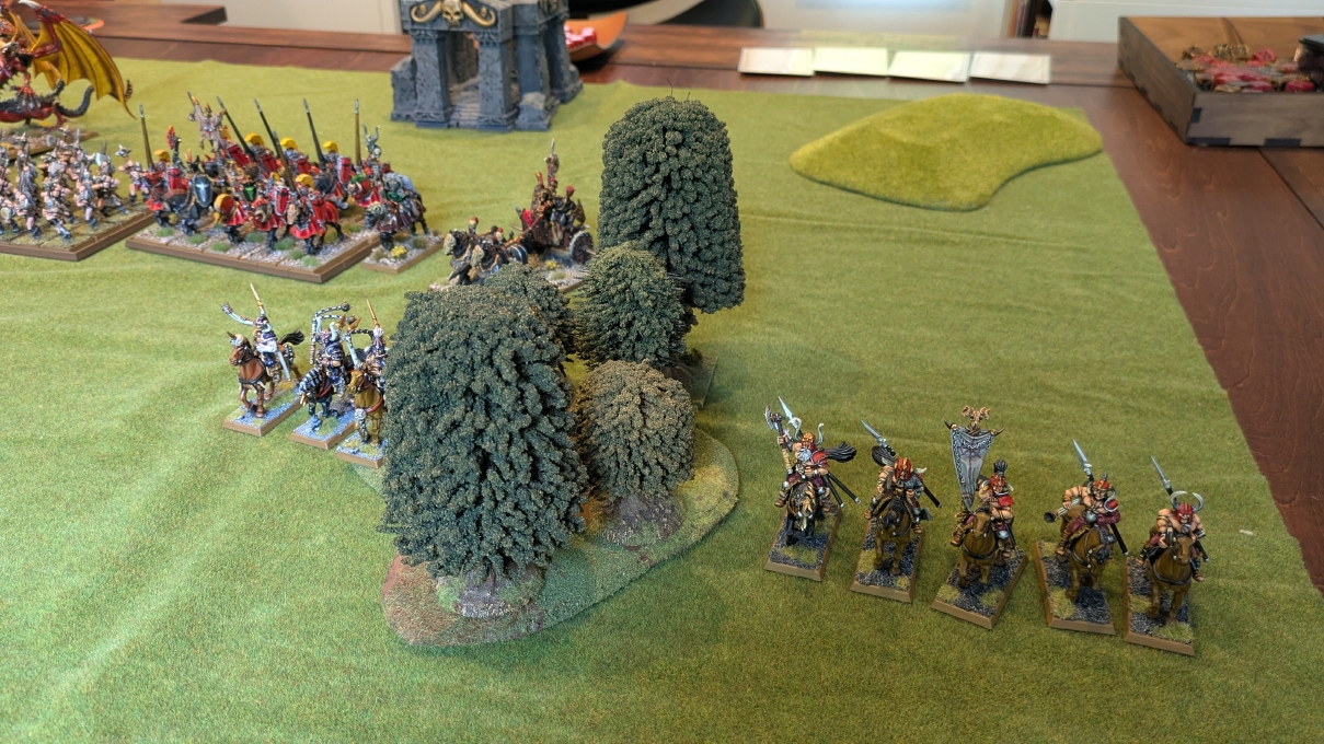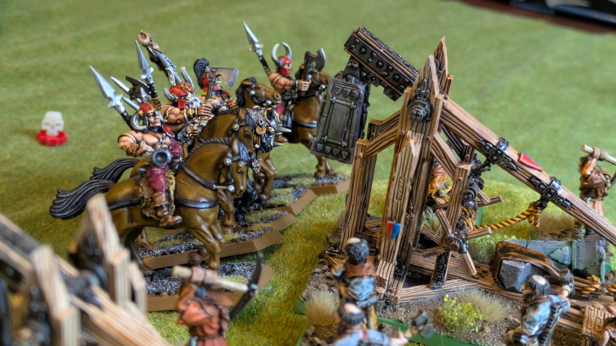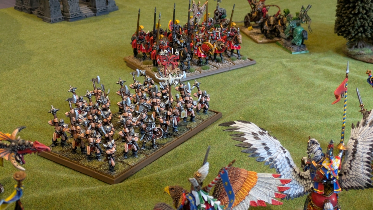 アルデバルトはペガサスを旋回させ、ケイオスナイトの背後を突く。ナイト・オブ・ザ・レルムは再び隊列を組み、槍を構えてマローダーを押し返す。