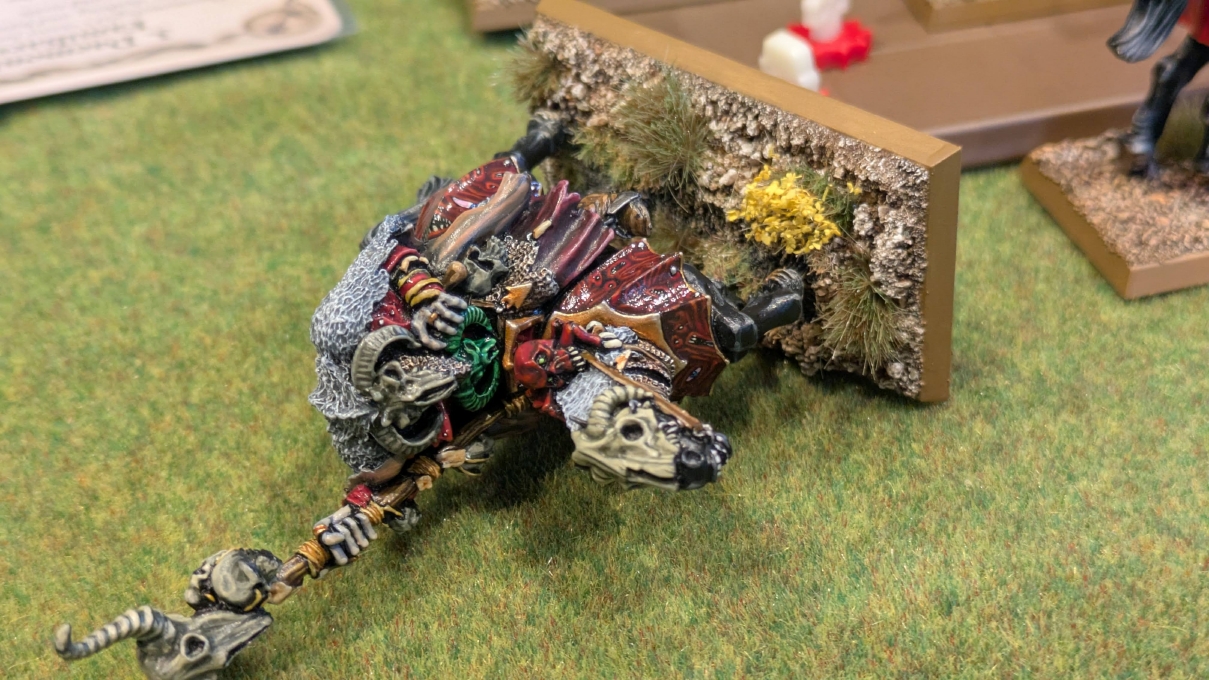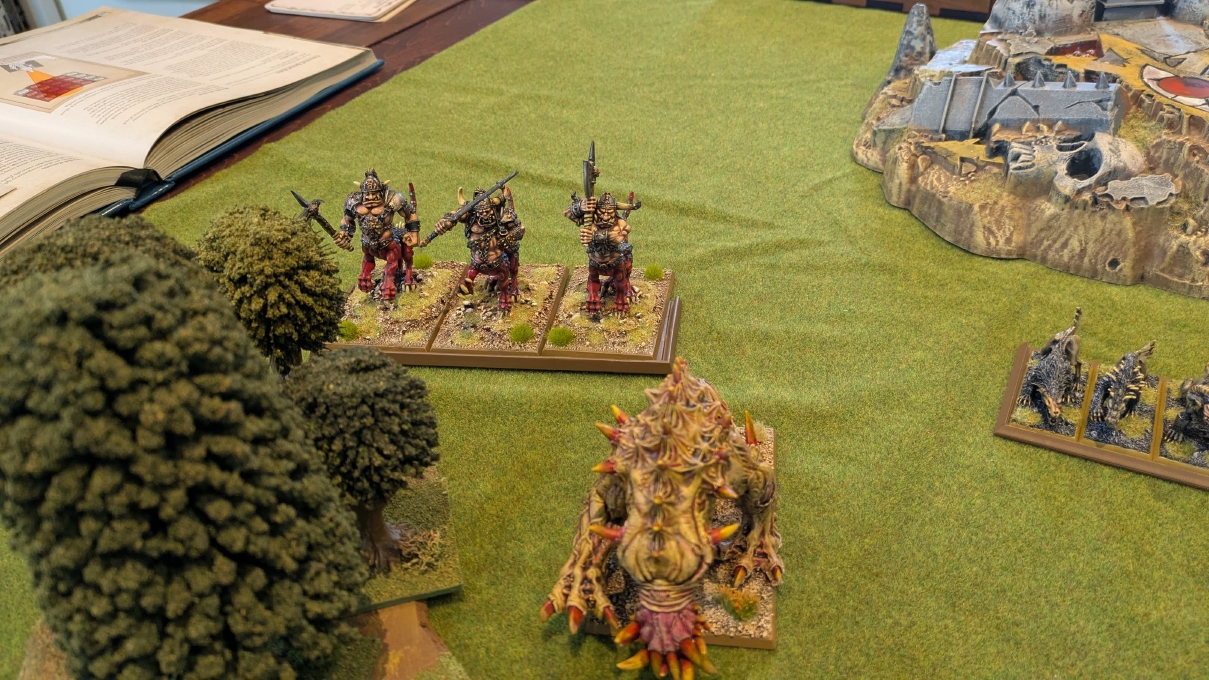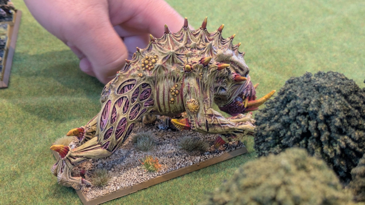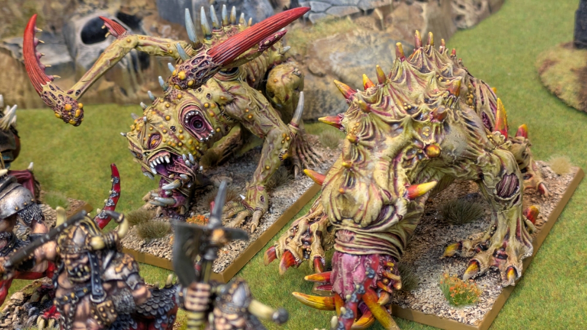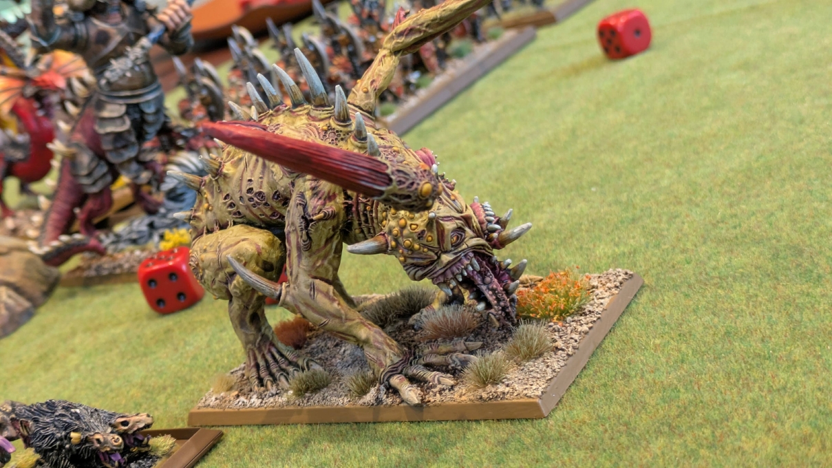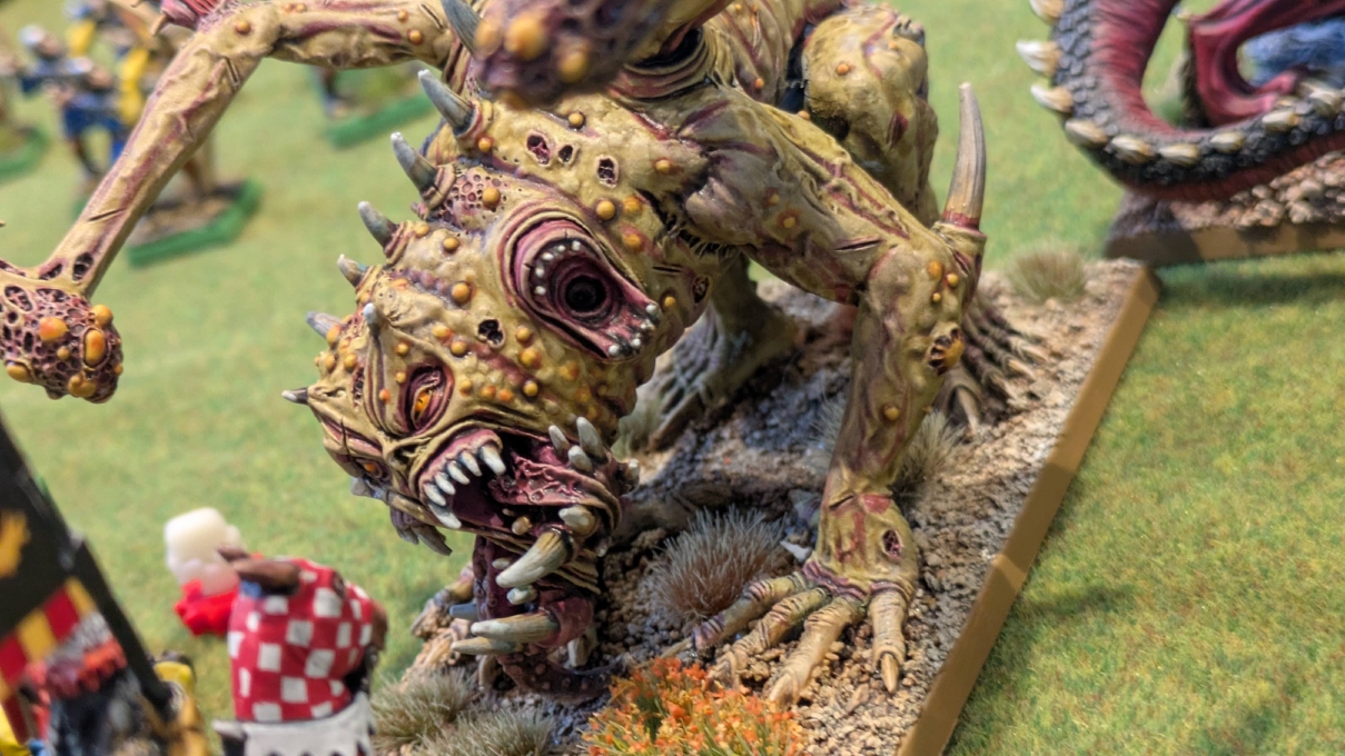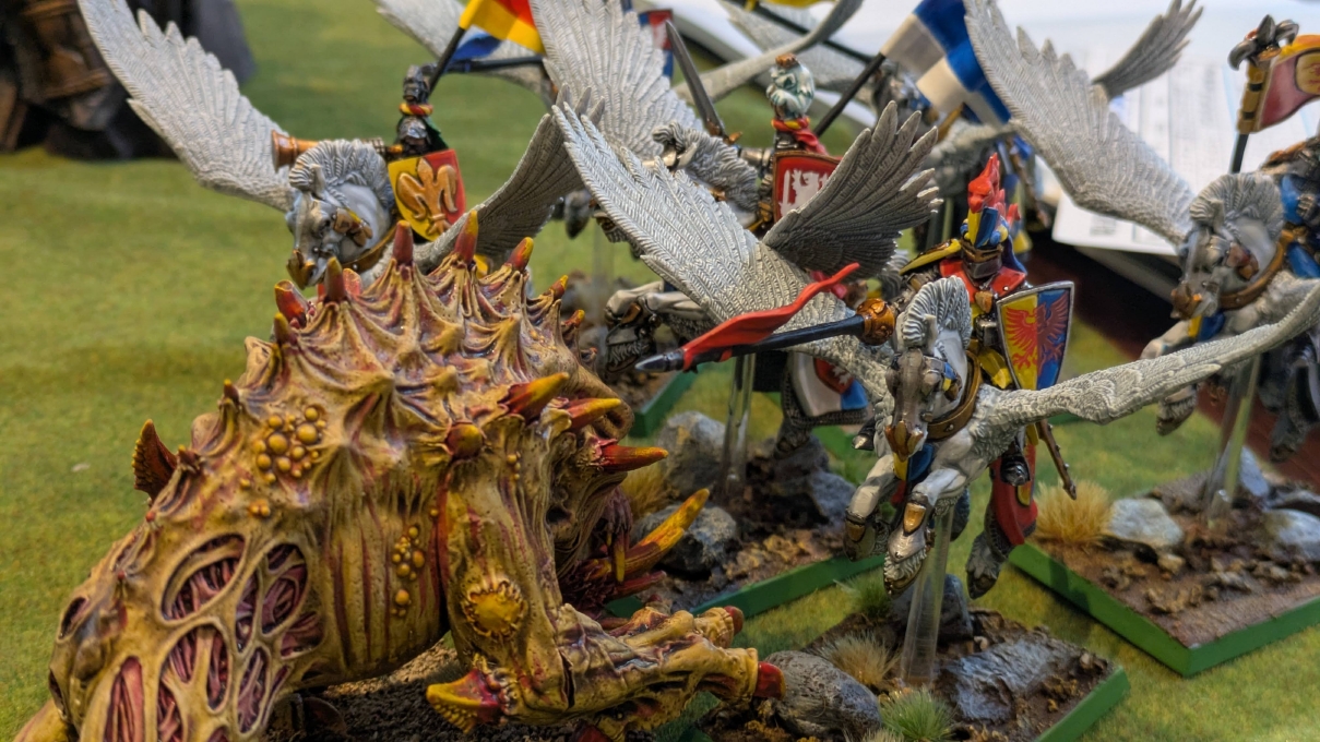 混沌の神々の呪いを受けたこのおぞましい怪物は、木々をなぎ倒し、枝葉を踏み砕きながら、膨れ上がった異形の巨体でペガサスの隊列に襲いかかった。