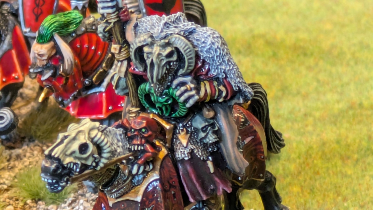 暗雲が天空を覆い、雷鳴が大地を震わせる中、ケイオス軍の最凶の将、“支配せし者”ラーシェスが、