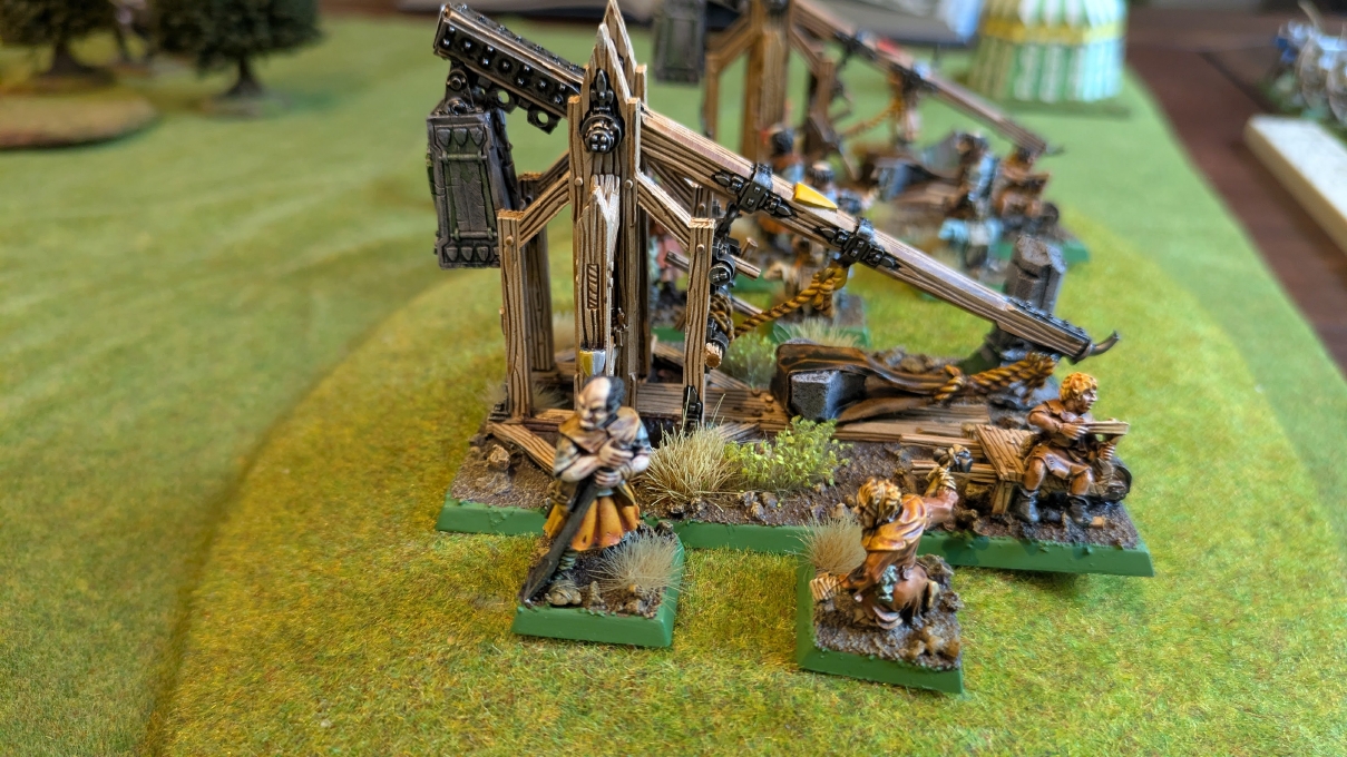 だが、トレビシェの損傷は壊滅的ではなかった。鎖は外れたが、木枠はまだ形を保ち、修理すればもう一発撃てそうだった。