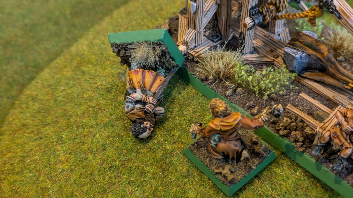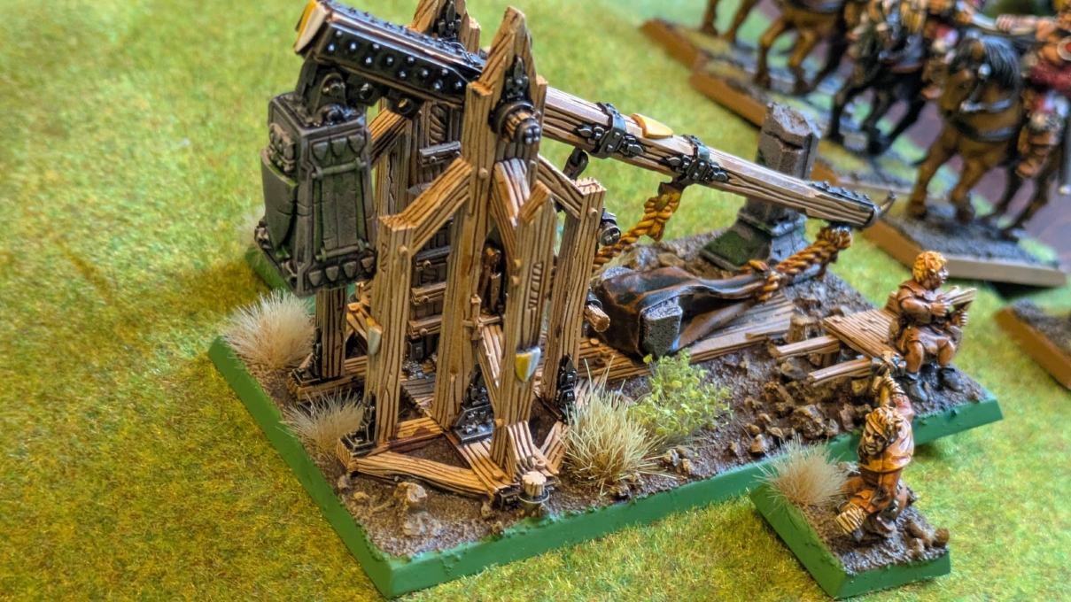 戦場の冷たさと血の臭いの中、悲嘆を力に変え、トレビシェに新たな石をセットする準備が進められた。 |
