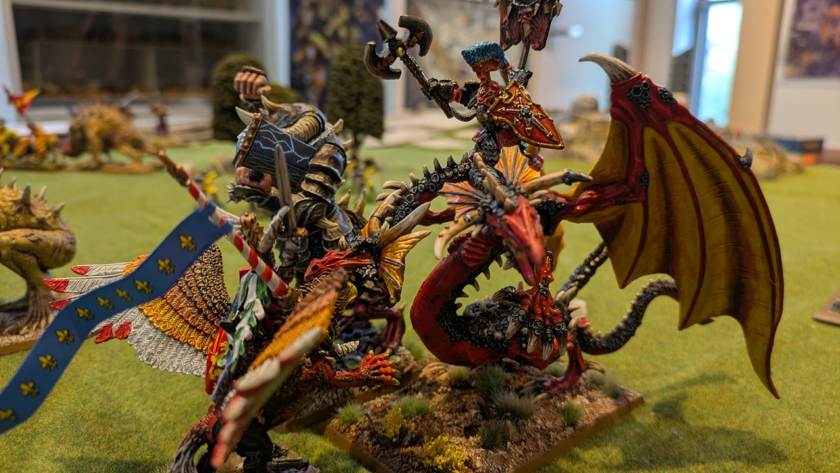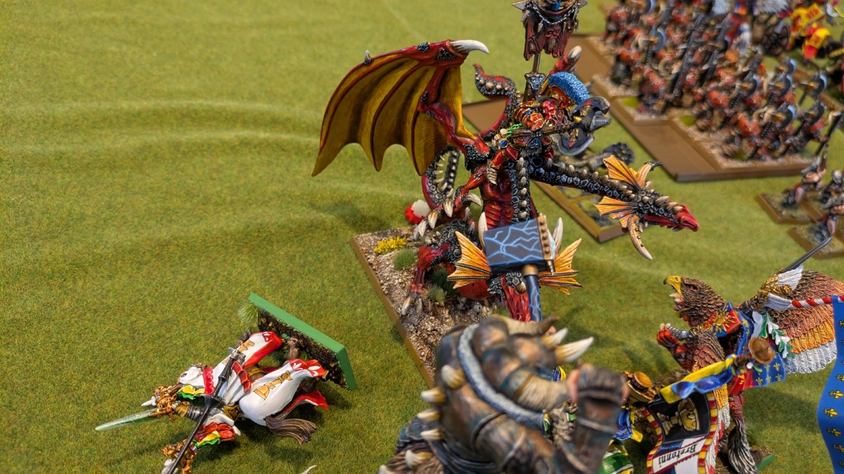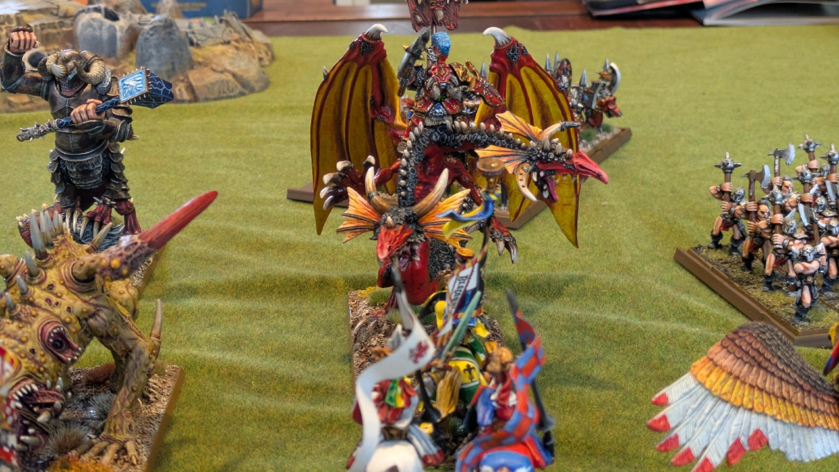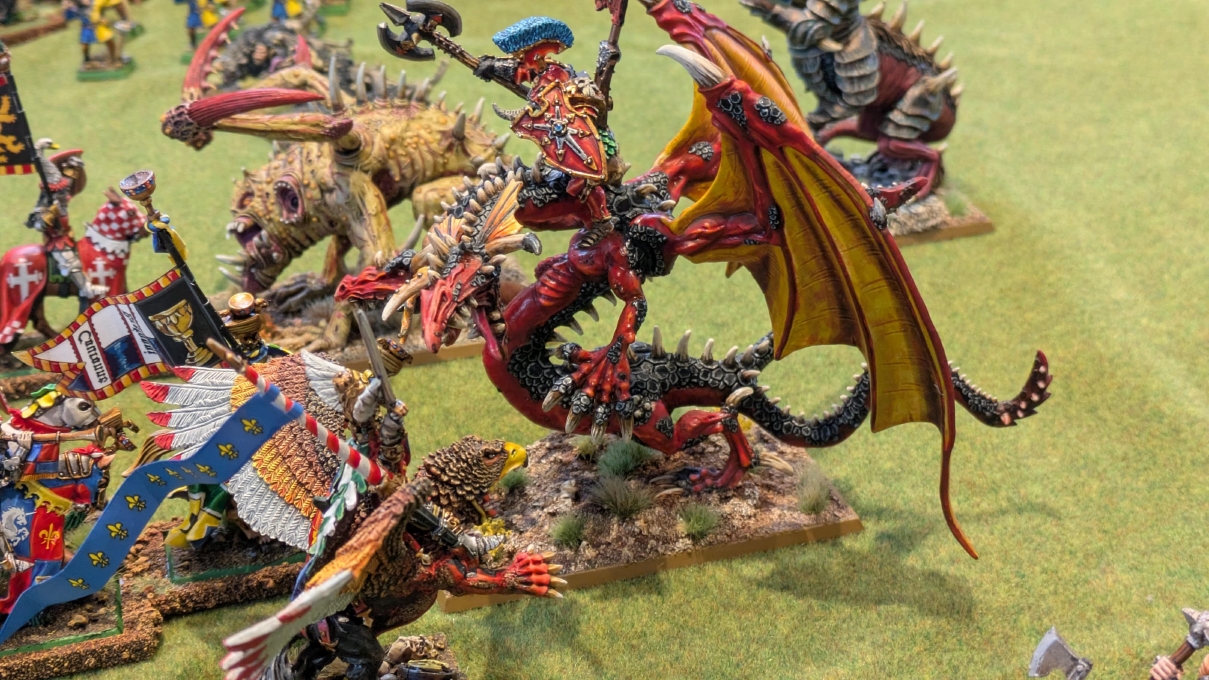 エイヴァクス公がケイオスドラゴンとドラゴンオウガと死闘を繰り広げる中心へ突き進む。