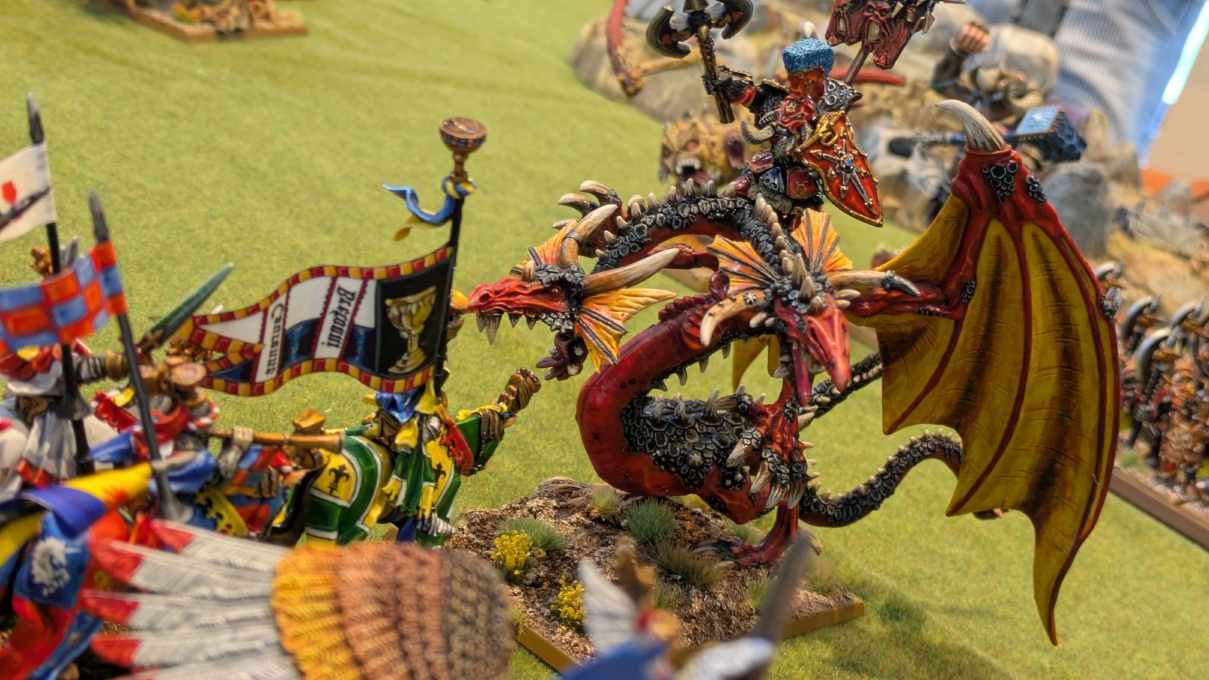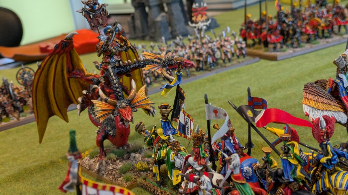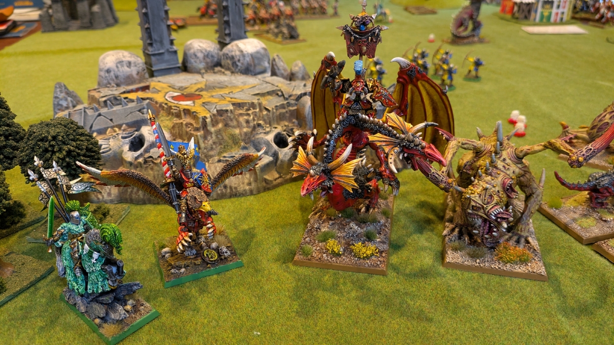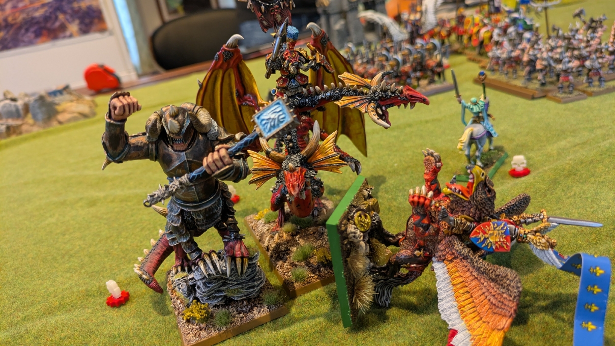 エイヴァクス公がケイオスドラゴンとドラゴンオウガと死闘を繰り広げる中心へ突き進む。