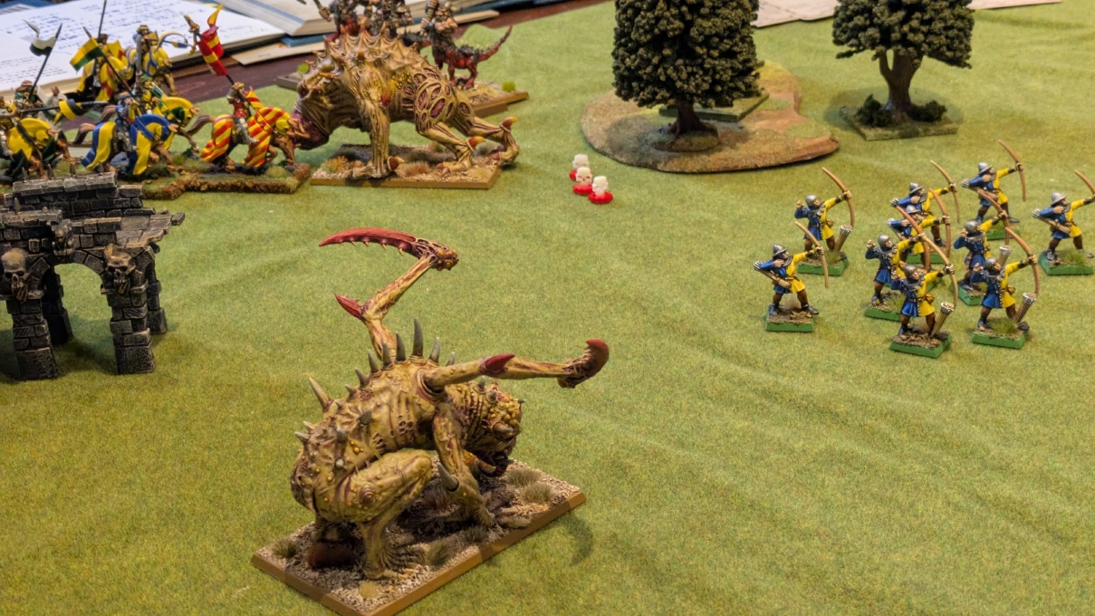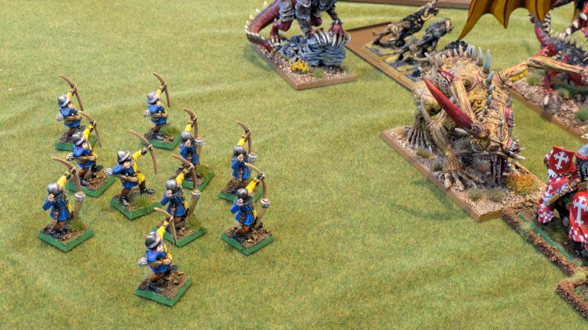ナイトオブザレルムを飲み込んだケイオススポーンはブレトニアのペザントボウマンに迫ります。