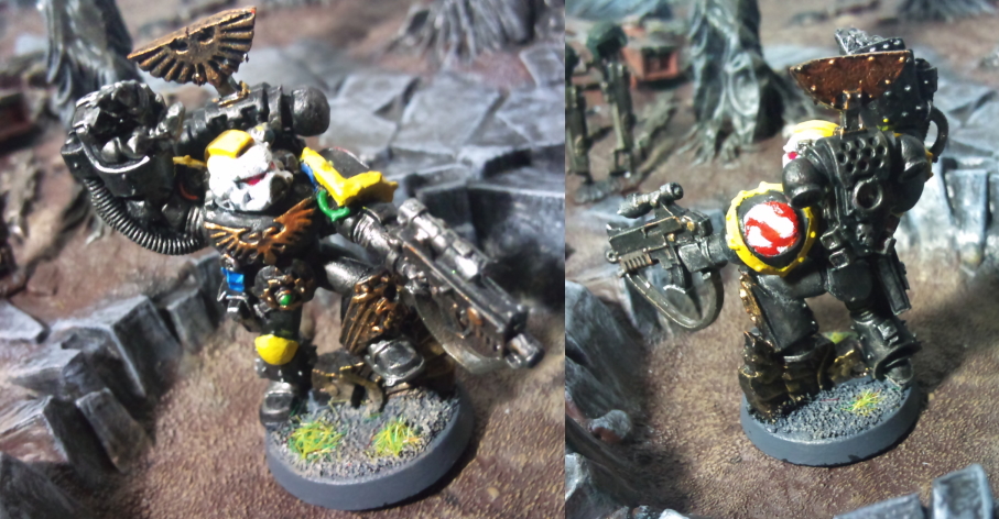 ゲームズワークショップ・ジャパンのウェブサイトが全世界共通フォーマットでリニューアルした際の記念として、 1万円以上購入者にプレゼントされた限定版スペースマリーンサージェント! 僕も勢い勇んで通販したものの、商品選びに時間をかけている間にプレゼント終了してました(笑)。 まぁ、以前にも別の機会にプレゼントキャンペーンをやってたことがあって、入手はしていたのですが・・・惜しいことをしました(笑)。 このお方は、サージェントらしい格好良いポーズに数々の装飾がいかにも歴戦の戦士らしくて、とても格好良いミニチュアだと思います。 そして、フォージワールドの中ではウルトラマリーン並に主役級の扱いを受けているフォージマニアの憧れ、レッドスコーピオンとしてペイントされたのが熱いです。 重厚感たっぷりの黒いパワーアーマーに鮮烈な黄色のコンビネーションが格好良いですね! 肩のマーキングもしっかり赤いサソリに見えますよ!難しいチャプターマークにも関わらず、手描きにしっかり挑戦されたのが何より素晴らしいと思います。 アーミーを作ることになっても、この挑戦がきっと活きてくると思います。 それにしても、限定モデルの扱い方って人それぞれで面白いですね。限定=貴重=塗るのが勿体ない、と言う人もいれば、 DaiZoさんのように容赦なく(笑)、ペイントを楽しんじゃう人。良いですね! 僕もどちらかといえば素のメタル状態ではゲームに使えない!=持っててもしょうがない、というヘビーゲーマー的思考だったりします(笑)。 限定だろうと何だろうと、アーミーのためのコレクションとしてはとにかく作って初めてコレクションのひとつになるって感覚です。 そんなわけで僕もいつかこのサージェントを塗ろうと思ってます!楽しみになってきました! |