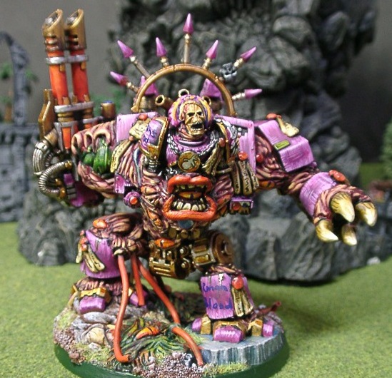 | Rmanのコメント エターナルバトル用に作ったケイオスドレッドノートです。今回の課題はいかにして ケイオスとするか。前回のじゃ、あまりにも短絡的かな、と自分でも思ったので。 僕は元々Mtgをやっていた事もあって、肉と鉄が入り交じったファイレクシアという世界が かなり好きで、今思えばそれの影響がかなりあったかな、と思います(笑)。 (特徴がWHの4神に属してないのでマズイんですが..) 前回ドレッドノートを作った時に感じたことは紫色の部分がどうも平坦に見えてしまう、 という事でした。そこで今回は制作中のマリーンにならったスジだしグラデ(?)を かけて単調さを解消できるようにしてみました..どうでしょうか。 ですが、この質感表現はかなり肉とマッチする、というのを実感してます。 反省点としては、ここまで大きいミニチュアですから、肉との結合による汚し等も できたのでは無いか?と言うことです。次回以降挑戦したいものです。 これを作った事によってまたアーミー製作にさらなる気合いが注がれそうです。 |