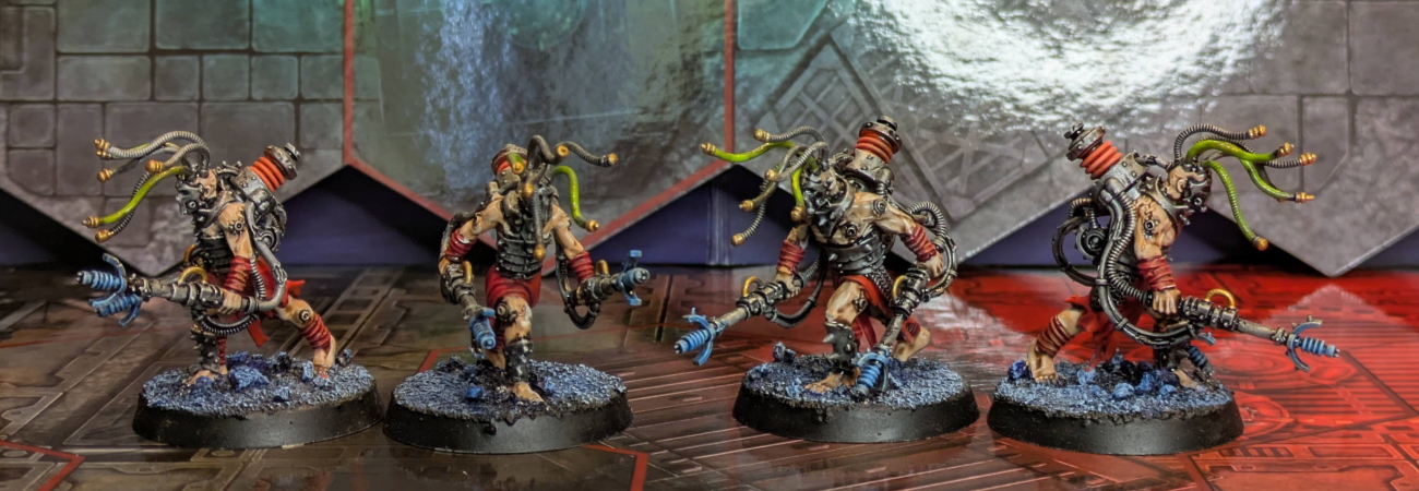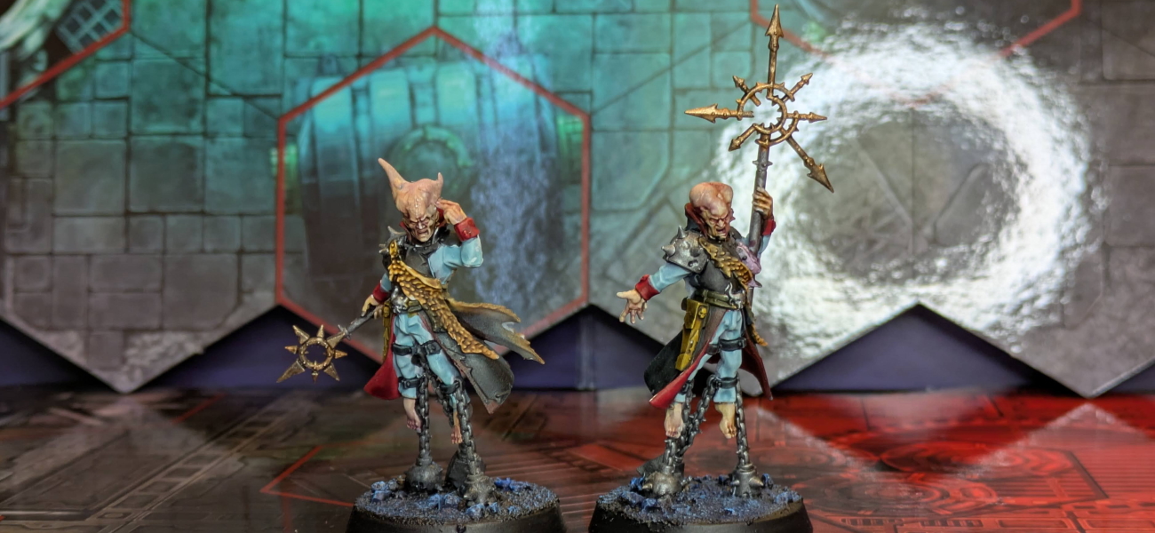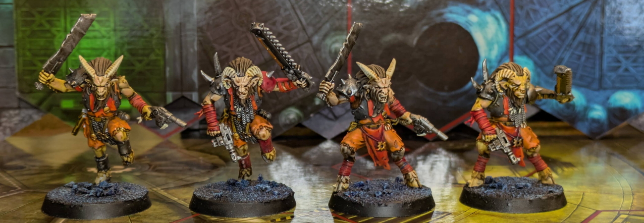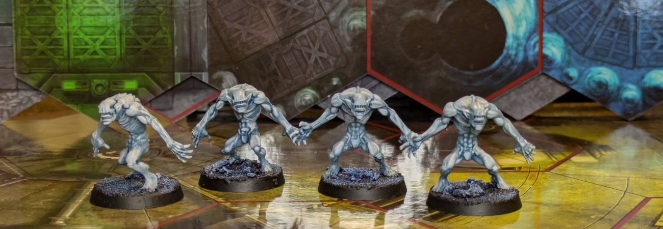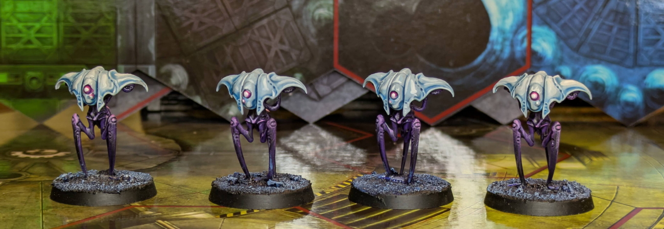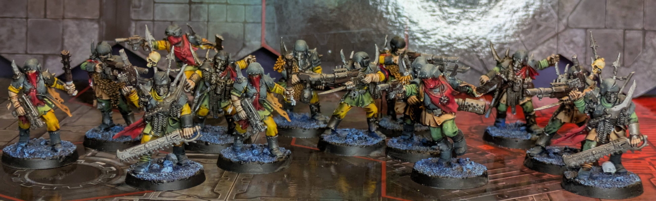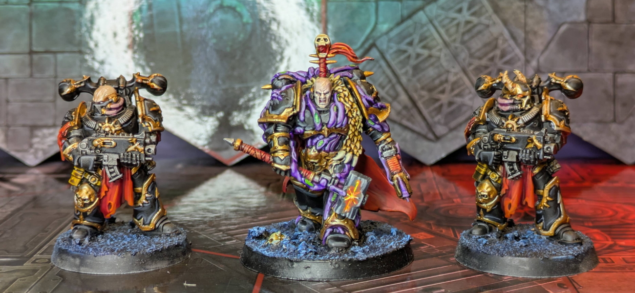 2018年に買った当所はすぐ塗るぞ!と黒サフ吹いてスタンバイさせてましたが、結局ずっと塗らずに7年間放置し、 今だったらコントラストで塗るよなぁってなって白サフを吹きなおしました。 コントラストでざっくり塗りはほんと、割り切りペイントの時は非常に心強いです。 ドローンやグールはもうサクっと塗れちゃいますし、面倒くさそうな信者やトレイターガーズマンもサクサクっと塗りあがりました。 流石に敵性存在のボスキャラ的なケイオスマリーンとケイオスロード・オブシディウス・マレクスだけは少し丁寧にペイントしました。 ケイオスロードの独特な触手のようなデザインが癖あって、ここの塗り方や色でかなり印象が変わる面白いモデルだなぁと思いました。 僕が塗ったのはちょっと紫味が効きすぎて、スラーネッシュっぽくなっちゃったかなぁって感じで(もうちょっと無個性にしたかったんですが)、 まぁアーミーで使うわけでないので、あまり気にしないことにします。 エキスパンションも含めるとかなりの種類のミニチュアが発売されているブラックストーンフォートレスですが、 まずは基本セットのペイントコンプリート出来ましたので、一度ソロで遊んでみて勘所が掴めたら子供を誘って本格的にキャンペーンやってみたいのですが、 これが出来るのはもう少し先かもしれませんねぇ。 (子供は子供で、友達と遊んだり、ニンテンドースイッチで遊ぶのに忙しい…) 2026.1.26 |