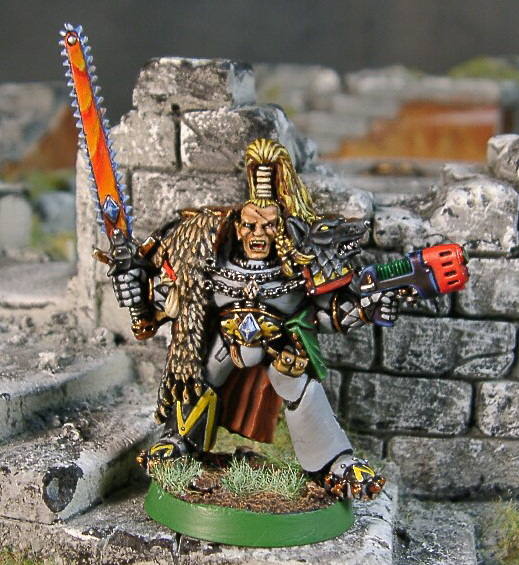 卵帝のコメント 何故か(笑)!ペイントしてもらったウルフロードです。 スペースウルフのスペキャラモデルですが、僕が左腕をプラズマピストルに換えてしまったため スペキャラとしては使えないのがポイントです(笑)。 モールドが細かいミニチュアですが、髪の一本に至るまでグラデがかけてあり 作業の壮絶さを物語っていますね〜右足のスネは最初描き込みだと気がつきませんでした。 灰色が難しかったということですが、僕が塗っている奴等も一体毎に微妙に色が違ったり するので問題はないと思います(笑)。難しいよね・・・灰色・・・ Rman君どうもありがとうございました。そのうち敵として立ちはだかると思います。 |