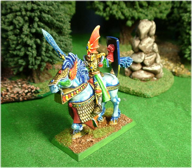 Rmanのコメント 初めて塗ったハイエルフです。 いやあ僕としてはハイエルフを塗ることは万が一にもあり得ないと思ってたんですが、 まあその理由は色々です。まずは白下地で塗ること、 ハイエルフのミニチュアが好みでないなどなど..。 結局卵帝君に頼まれたので仕方なく塗ることになったのですが、 僕としても白下地に挑戦は新鮮な気がしてけっこうやる気でました。 卵帝君の依頼内容としては「ドラゴンプリンスに合流させても違和感ない配色、布の部分に炎の絵、 盾はアーミーブックに載ってる絵」ということでしたが、結果的にそのだいたいをこなすことが出来たかな?と思います |