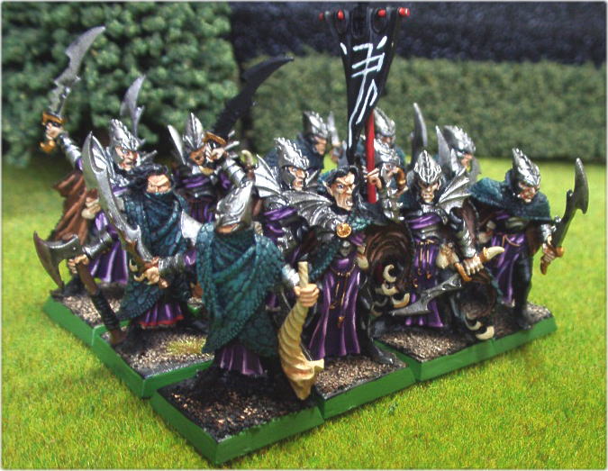 | みしんさんのコメント このコルセアは、自分が塗ったダークエルフの親衛隊第一号です。顔の肌がもうちょっと良ければよっかたと思います。 12体では、役にたたないのであと8体つくるつもりです。 Rmanのコメント 見た瞬間に「うっわ!かっこえぇ〜!」って思いました。マジで。 コルセアってDEの中でも特に造形が凝ってますよね。 顔のペイントも、すごく良い感じだと思います。チャンピオンの表情、これがいいですねぇ。意志を感じさせます。 確かに12体ではちょっと物足りないかも。ぜひとも残り8体の製作も頑張ってください! |