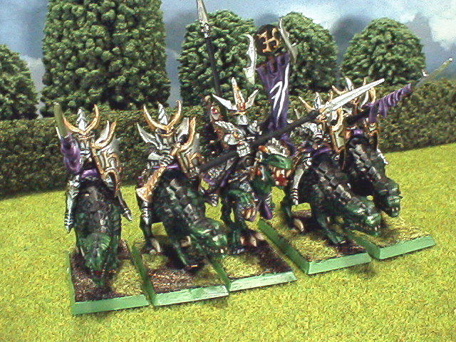 | みしんさんのコメント 騎乗物にこんなに苦労したのは初めてです。 真中のは、旧ジェネラルです。 こいつをどうにかして使いたかったんでリーダーにしてみました。結構まっちしてます。 全体としては、ざつさが残ったのが心残りです。 Rmanのコメント 旧ジェネラルは確かに違和感なくとけ込んでますね。 このナイトを初めて見たときは、ダークエルフとは思えない力強さを感じたものです。 みしんさんのナイトもその時のイメージそのままに、迫力ある仕上がりです。 |