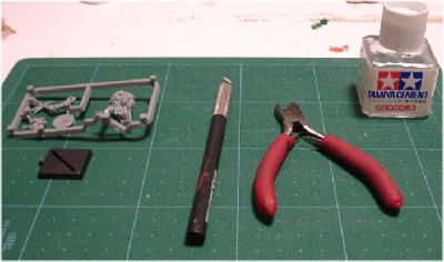 用意する物 プラミニチュア:コレがないと始まらない。今回はスタートセット付属のザウルスウォーリアーを例にしてみよう。 ニッパー:模型店で購入可能。メーカーにもよるが大体500円前後の物があれば良いだろう。 デザインナイフ:いわゆる「カッター」とは違い、刃が伸びたりはしない。カッターより使い勝手が良いので出来ればこちらを揃えておこう。模型店で400円前後。 接着剤:プラ同士を接着する時は、「スチロール樹脂系接着剤」を使用する。グンゼや田宮から「セメント」と言う商品が安価で発売されている。 |