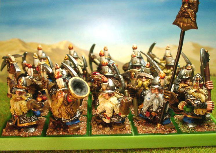 | Rmanのコメント どの点をとっても凄いなぁ〜とため息が出てしまいそうなmp36さんのドワーフマイナー。 本体のペイントに関してはもういつも通りの安定感(髭や鎧の重み等)がありますね。 僕的にマイナーは帽子のローソクが重要なアイテムだと思ってるのですが(笑)、 そのローソクも一個一個丁寧にしかも炎の塗りが実にそれっぽい。 mp36さんのドワーフはここまで見てきてどの作品にも青い部分が入ってるので、ならべた時美しいでしょうね。 アーミーを組むときはメインカラーを一色決めるということは結構重要な要素かも? |