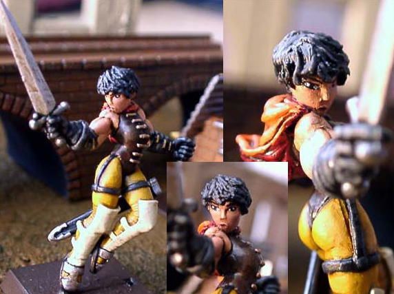 | ゆきじさんのコメント マテリアル:「VOID」というSFスカーミッシュバトルシリーズから出ているメタルフィギュア。 その世界の人間系勢力V.A.S.A内のArchAngels部隊。その中の1人を元に造りました。 「VOID」シリーズの女性はみな丸みをおびた造形をしているので、黄金時代のキャスカにはピッタリ。 ほとんど手を加えることなく仕上げることができました。 変えたのは髪型、右手、肩の小マント、剣の鞘。 悩んだのが顔です。初めは端正な顔立ちをしていたので、キャスカになるか心配だったのですが、 肌を浅黒くしてあげて、目を大きめに、眉毛まで入れてあげたら (普通メタルフィギュアに眉毛まで描くと顔がクドくなってしまうんですが・・) なんとかそれらしくなったので一安心しました。 Rmanのコメント そっくり!凄いですね〜ベルセルクからキャスカです。 配色に顔のペイント、女性らしくふっくらとした体型がまた素晴らしいです。 VOIDとはまたマニアックな所に手が届いてますね〜さすがゆきじさんです! ベルセルク最高〜” |