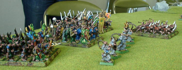 | スケイヴンVSケイオスドワーフ そして福岡メンバーにとっては超久しぶりのファンタジーバトルです。 最近40Kばっかりでしたからね〜。 1500P戦でマジックアイテム有りのゲーム。 僕自身ファンタジーが恋しくなってきてましたので、この勝負 けっこう楽しみでした。 ケイドワ使うのも久しぶりというのもあったわけですが。 |