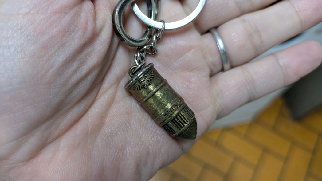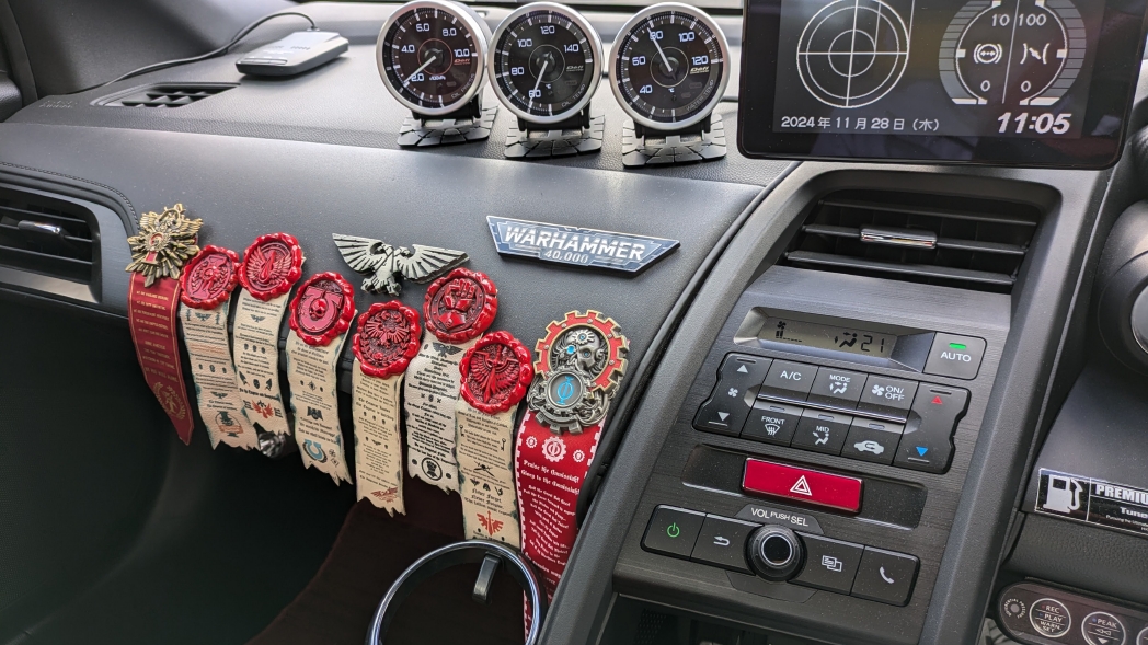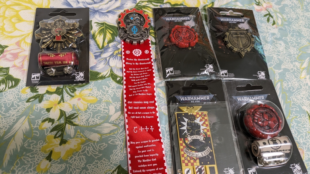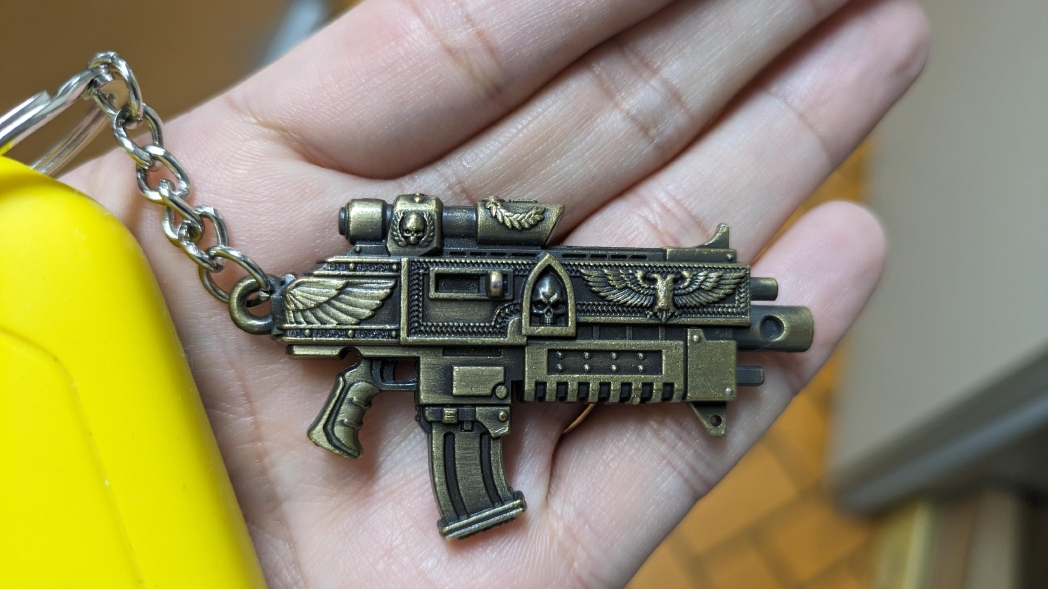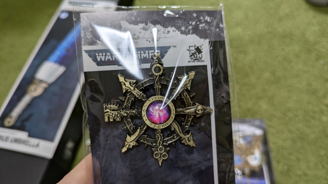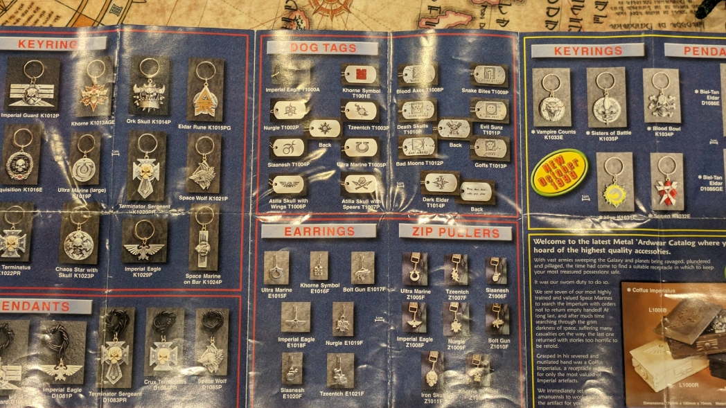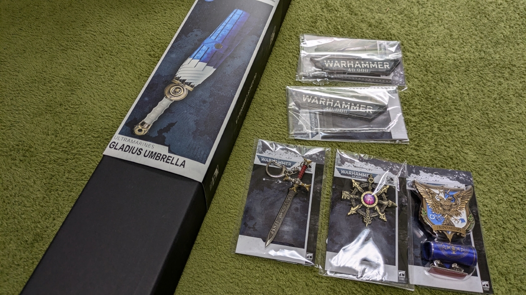 | 僕がウォーハンマーを初めて買った2000年の当時、ウォーハンマーの公式アクセサリーはブルドッグバックルというメーカーが販売していました。 こちらの写真がそのラインナップの一部ですが、見ての通りけっこうな品数&高クオリティでした。 ![]() とはいえ、2000年当時はまだミニチュアも買い始めたばかりの学生な身分ということもあり、このアクセサリーを買うくらいならミニチュア買うわって感じで、 購入することはかないませんでした。 初めてウォーハンマーのスタートセット(5版日本語版)を注文したミハルステーションの店員さんが 電話口で「かっこいいアクセサリーも多数取り扱いしてますので、ぜひご一緒にいかがですか?」と言われて「そんなもん要るわけないじゃん」と思いつつ断ったら、 コピーしたカタログが一緒に送られてきて売る気満々だなぁと、こんなの買う余裕もないし欲しくもないよって思った記憶はなぜか鮮明です(笑)。 しかし僕も社会人になり給料をもらえる身分になりますと、懐事情が温かくなってきましたので、 そういやブルドッグバックルのキーホルダーあったなぁ、ちょっと通な感じっていうか、あれ欲しいよなぁってなってきて、 当時のWebカタログを眺めながらいくつか注文したりもしました。 ![]() 本当に良い出来栄えでした。ベルトのバックルなんかはサイズもでかくて非常にイカつくて今でも愛用してる人もおられるかもしれませんね。 持ってたらすごい貴重品だと思います。 買ったキーホルダーやバッジは当時使ってたバックやアーミートランスポートにつけて使ってました。 ブルドックバックルがウォーハンマーの公式ライセンスが切れて販売をやめてから10年くらいはこの手のアクセサリーは販売されることもなくなって、 これらのウォーハンマーアクセサリーはけっこうなプレ値で取引されるようになってました。 しかし、現代はもう新しい時代になりました。もう公式ライセンスグッズがありとあらゆるジャンルで出まくっております。すごいです。 オタクを囲い込んで生涯賃金を搾り取るビジネスモデルが確率されているというか、そのマーケットの中心顧客になってしまっている自分を自覚せざるをえないほどに、 欲しいグッズが多すぎてだいぶ困ったことになっています。 さて、ここで公式ライセンスグッズが買えるオンラインサイトのご紹介です。 ![]() https://merch.warhammer.com/en-jp こちらは定番のウォーハンマー公式店です。 Tシャツからポスターから何でもあります。品数もすごい。 公式グッズとしてのTシャツも昔は全く買えなかったのですが、今はもう選び放題です。ぼくも10着以上買ってしまいました。着る機会もないくせに(笑)。 ![]() https://www.merchoid.com/ こちらも色々と扱ってます。クリスマスくそダサセーターや、革ジャンもこちらで購入しました。キーホルダーなどのアクセサリーも充実のラインナップ。 ![]() https://store.starforged.com/ ここはGW公式サイトから直接はいけないのですが、高品質の金属製アクセサリーを多数生産しています。 このサイトのオンラインショップでしか購入できない製品が多数あるうえに、出来栄えがむちゃくちゃ良いです。 僕は鞄や傘やキーホルダーなど、かなり大量に購入しました。 いや〜ほんと、良い時代になりましたよ! 特にスターフォージド製の金属アクセサリーの出来栄えは2000年代のブルドックバックルを圧倒するレベルと言える気がします。 (とはいえ、昔の手作り感ある出来栄えも素晴らしかったし、現代の3Dデータからプリントされたものは雰囲気が違うので比べるものじゃないですかね) ![]() 僕の車のスマートキーに付けてるキーホルダーはレリック型ボルトライフルです。でかくて重くて厚みもあって、重厚です。良い出来栄えでしょう? ![]() これも4,5年くらい前に買ったボルト弾は自宅のカギ束と一緒にしてますが、クリアー塗装も剥げ、適度に傷がついて渋さが増してきたように思います。 ここ数年、たくさん公式グッズを購入したので自慢がてら紹介したいと思います。 ![]() スターフォージド社からの直通販、ちょっと時間はかかりますが、ちゃんと届きます。 この会社の製品はウォーハンマーストアでも期間限定で取り扱いをされることもあるようですが、 公式サイトからしか買えない商品も多数あるので、ぜひとも公式サイトを見て欲しいと思います。 ![]() 僕の愛車ホンダS660の車内も何だか40K時代のビークルみたいになってます。だいぶ機械精霊がイカれてるのかもしれませんねぇ(笑)。 ちなみにこの車の車内を覗いた人はみんなギョっとします(笑)。かなり怪しい雰囲気ですものね。 ![]() こちらの鞄もスターフォージド社から購入したものです。 多機能なゲーマー用バックです。 ![]() めっちゃ渋くてカッコイイし、色味もオシャレですよね。妻には私と一緒に行動するときに絶対使わないで、と言われてしまい、 現在は現場仕事の時のバックとして利用中です・・・(笑)。 ![]() オミ