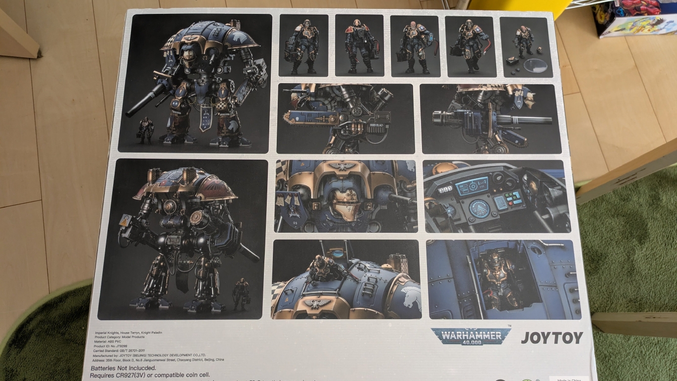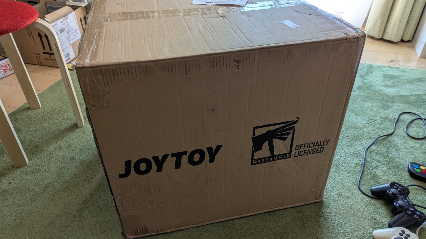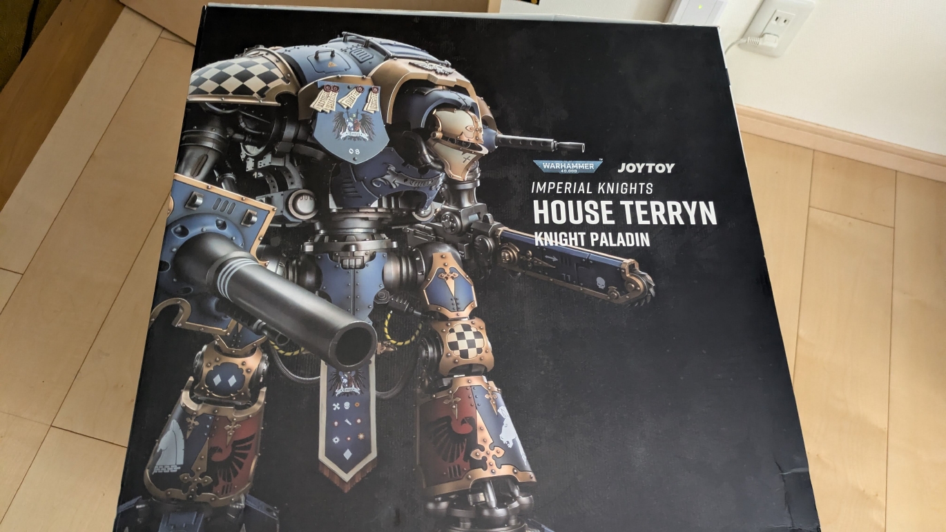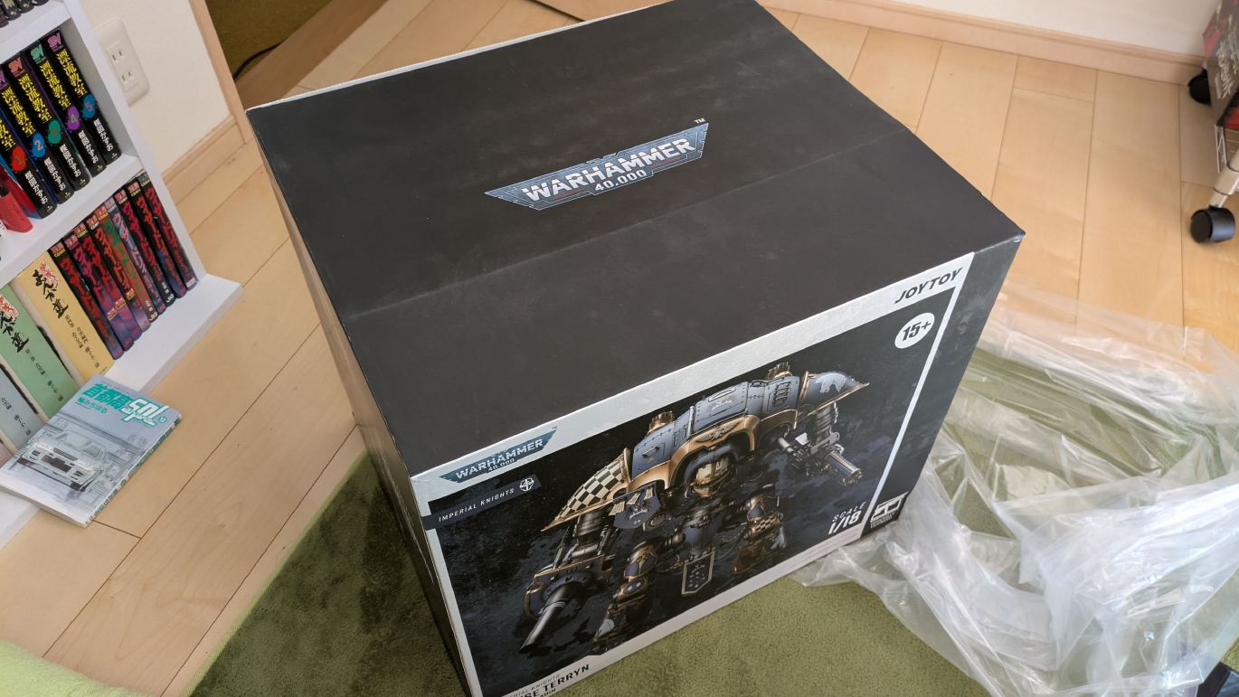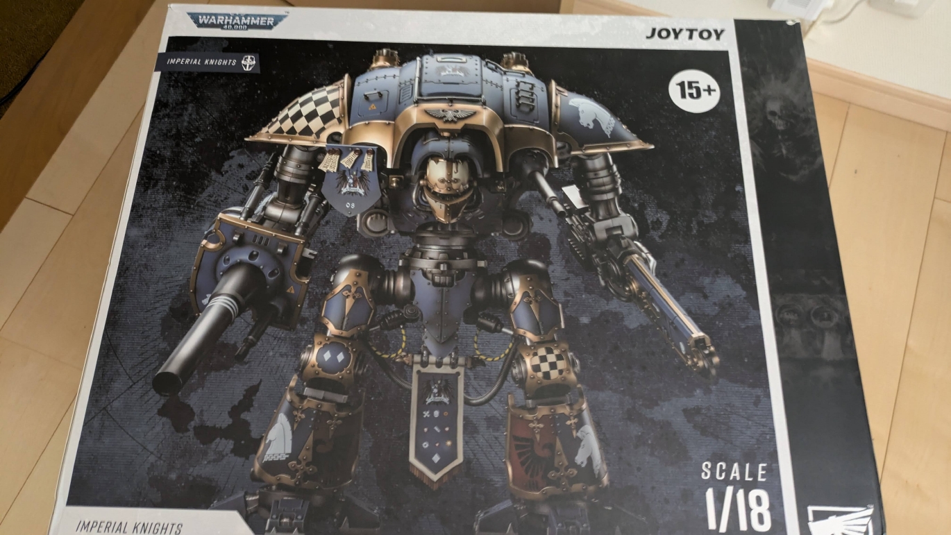 | やけに出来が良く、その上、短いスパンで新作アクションフィギュアを量産するメーカーJoyToy、 ウォーハンマー40Kのインペリアルナイトを1/18で出すというニュースに2022年は仰天したものでした。 ![]() いやいや、本気かと。 大きさ、40Kスケールのウォーロードタイタンクラスじゃなかろうか。 こんな巨大な完成品のフィギュアを売っちゃうってちょっと中々聞かないというか、(知らないだけかもだけど) ネタにしてもすごいド派手やなと。 勢いのあるJOYTOYなら本気で作るかも、とは思って期待感は高まっていたわけですが、 開発が難航して(支えが無いと直立できないとか、耐久性に難があったようで)発売が延期されたりとか、ホントに発売できるのだろうか、と懐疑的な感じは漂っていましたね。 ![]() しかし、2024年年末になって予約も開始され、ホントに発売されるんだなぁ・・・と改めて驚きつつ、 これほどにエピックなプロダクトはウォーハンマーファンとして触れておきたいと思い、勢い予約をしたのでした。 こんな酔狂な製品、今後ウォーハンマーがどれだけ発展しても中々見られないアイテムになるのではないか、という気もしましたし。 ちなみに例によって77figureさんにて予約しました。 ![]() そして去る2025年7月、届きました。でかい段ボールが。 ![]() でかい、これはおもちゃの箱としては異常なでかさ。写真じゃ伝わらないでしょうけど、まぁ家電製品とかのイメージですね。 でも、思ったよりは軽い。この大きさのスタチューを何個か買った経験でいえば数十キロの重さではない感じ。 ![]() 箱を開けると化粧箱もばっちりです。 スケール1/18の表記が改めてヤバ過ぎる。 ![]() この狂ったプロダクトは今後も続くウォーハンマーホビーの中でもひと際狂ったオフィシャル製品として多くのファンの記憶に残ることでしょう。 いっそこのかっちょいい化粧箱から出さずに保存しておきたい気もしましたが、まぁ、我慢できませんよね。 ![]() ちなみにJOYTOYマリーンでお得意のカラー変更で売りまくるやつ、ぜひともインペリアルナイトでもやって欲しいですねぇ。 テリン宗家も大好きですが、やはりホークシュラウド宗家のナイトもこうなってくると欲しいんですよねぇ(なお置く場所問題はあるけども) ![]() この巨大サイズの製品にもしっかりとした化粧箱用意してくれて、すごいなぁと感心してしまいます。 さあ開けるぞ! ![]() おお〜専用設計の発泡スチロールでがっつりガードされていますね。 ![]() ペイントは他のJOYTOYと同様、文句のないものです。 ほんと、ペイントクオリティ高くて、もう自分で塗るのもシンドイし、JOYTOYでいいかなってなっちゃう人が増えるんじゃないか心配になるレベルです。 まぁ、JOYTOYではウォーハンマーは遊べないので、そこだけは完全な代替えには成りえないんですけどね。 ![]() 次の段はこんな感じに収まってました。 このサイズ、この銀色のフレーム、なんか見覚えあるなぁって、そう、これまんまウォーロードタイタンのサイズなんですよねぇ。 ![]() 箱から出しただけで、このサイズとペイント完成品としての見栄え、良いものを買った満足感が一瞬で満たされるのやばい。 腰と胴のところは金属製になっています。 ![]() ボディからも太い金属軸が突き出ており、これを下半身に差し込むことでガッチリと連結されます。 ![]() 頭も腕も全部装着させました。 ウホッホ、これはすごい。全高53センチの巨大さ。ちょっと新生児くらいのサイズはあります。 足の関節や腕などの可動部には金属を使っているようで、武器や上半身の加重に負けないホールド性を誇っています。 ![]() クルーも付属してます。ちゃんと乗れます。これがすごい。 ![]() じゃじゃ〜〜〜ん!! いや〜これはすごい、よくやったなJOYTOY!マジでデカい。かっこいい! これが6万ちょっとで買えるの、何かが狂っている、とさえ思う出来栄え。 ちなみに手前のタイタス副官とカストードも1/18サイズのJOYTOY製品です。 ![]() インペリアルナイトのパイロットも完全立体化されています。顔もマスク有り無しを選べます。 よくも悪くもGW製のナイトをまんま巨大化させたデザインで、デカくなった分ディテールが増している、とかは無いのがJOYTOYらしいと言えばらしいところ。 ![]() ちょっとあおり気味で写真撮るだけでどちゃくそカッコイイ!!! 関節はけっこう硬めなため、しっかりポーズを維持できるのも凄いです。この辺りの調整に難航したんじゃないかと想像するところです。 ![]() ある意味、この1/18サイズのナイトの醍醐味といえば、この操縦席周りじゃないでしょうか。 ここにちゃんとパイロットを乗せられる、これにワクワクしない男の子はいないでしょう!って感じ。 ![]() うひょおおおお〜たまらないですねぇ。 パイロットを乗りこませたり下ろしたりしてると、楽しい。やっぱり、買って良かったなぁ〜としみじみ思いました。 さて、 40K版ウォーロードタイタンと並べてみました。 ![]() やっぱりほ