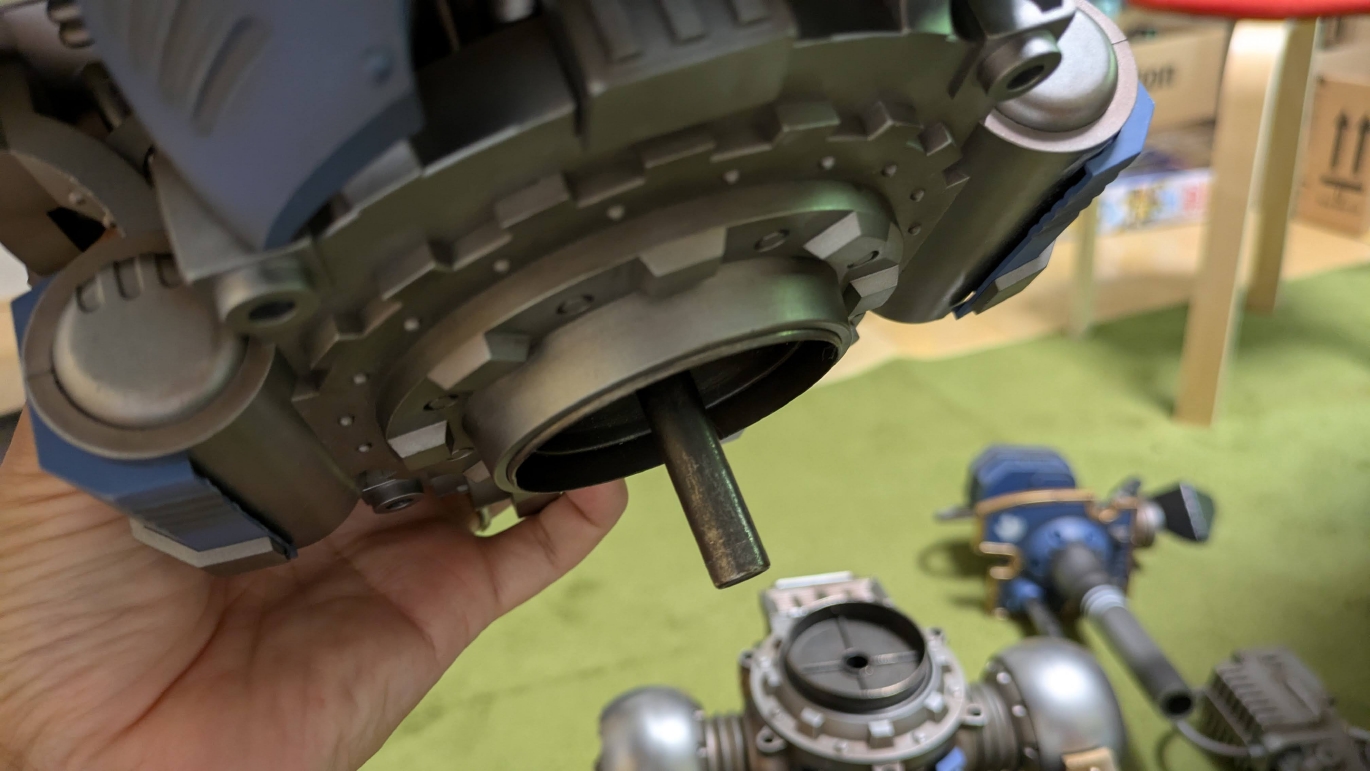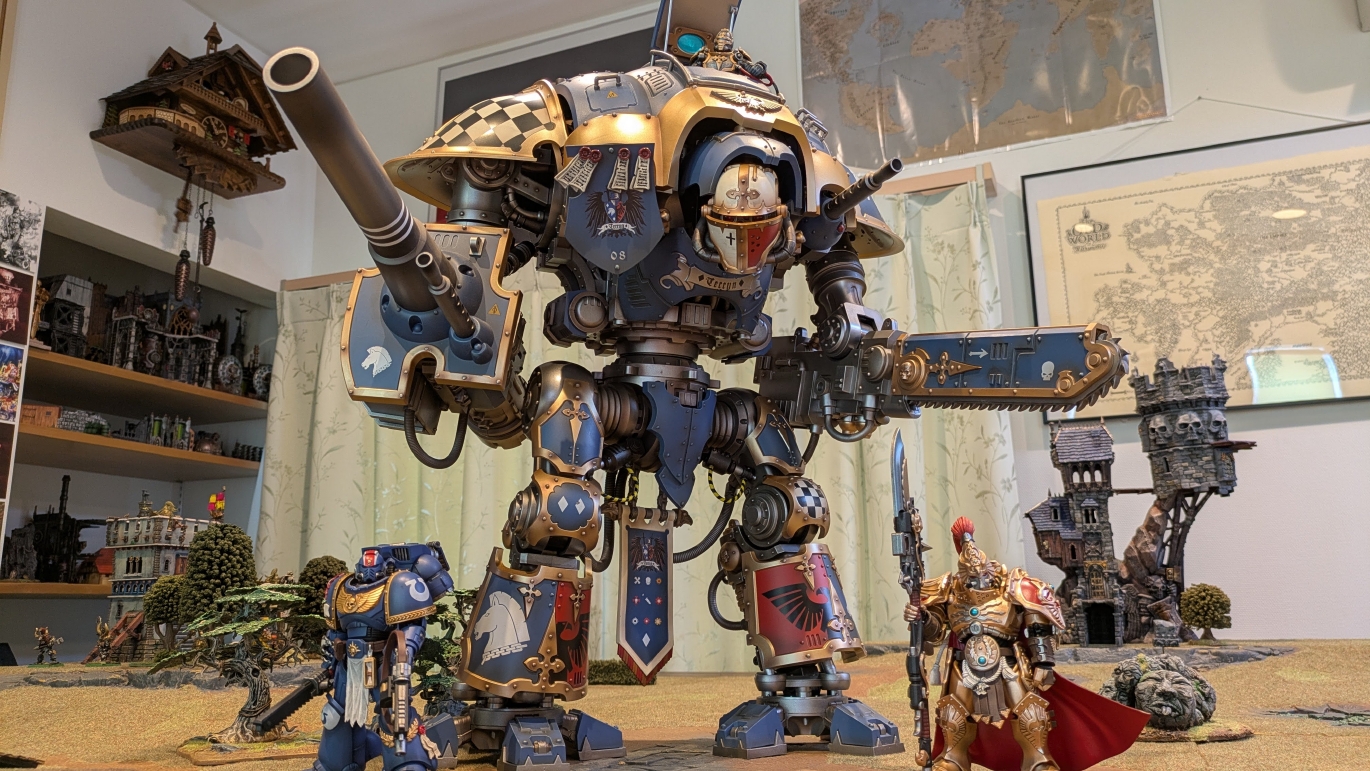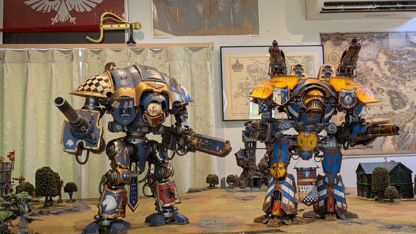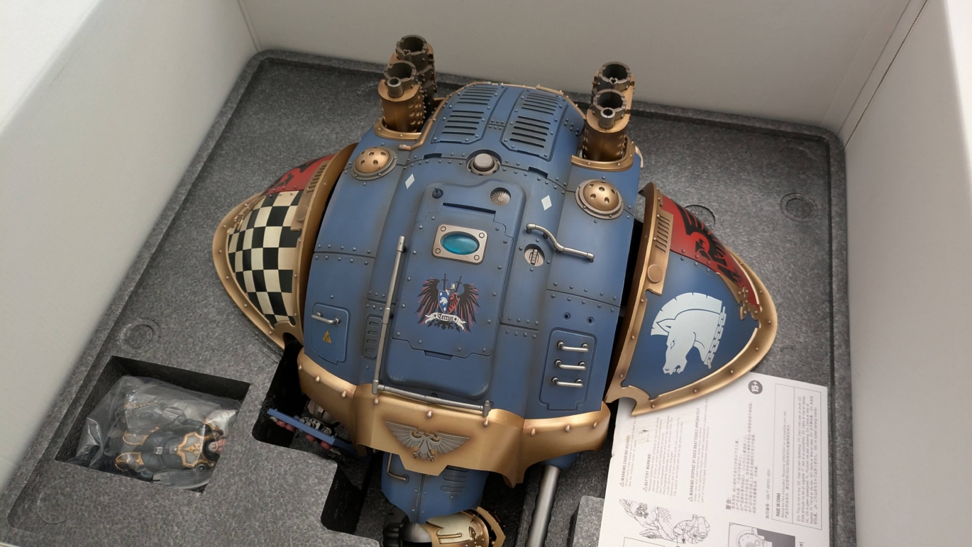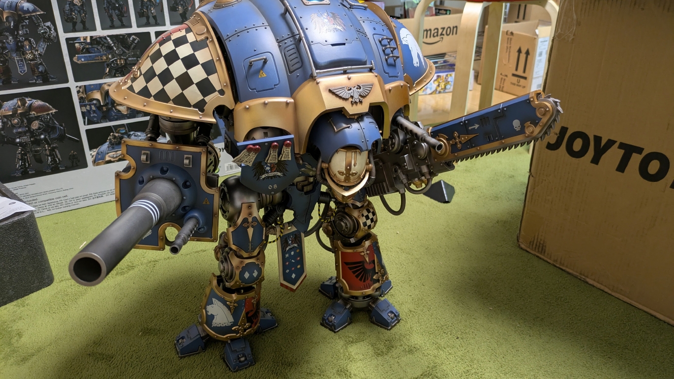 | やけに出来が良く、その上、短いスパンで新作アクションフィギュアを量産するメーカーJoyToy、 ウォーハンマー40Kのインペリアルナイトを1/18で出すというニュースに2022年は仰天したものでした。 ![]() いやいや、本気かと。 大きさ、40Kスケールのウォーロードタイタンクラスじゃなかろうか。 こんな巨大な完成品のフィギュアを売っちゃうってちょっと中々聞かないというか、(知らないだけかもだけど) ネタにしてもすごいド派手やなと。 勢いのあるJOYTOYなら本気で作るかも、とは思って期待感は高まっていたわけですが、 開発が難航して(支えが無いと直立できないとか、耐久性に難があったようで)発売が延期されたりとか、ホントに発売できるのだろうか、と懐疑的な感じは漂っていましたね。 ![]() しかし、2024年年末になって予約も開始され、ホントに発売されるんだなぁ・・・と改めて驚きつつ、 これほどにエピックなプロダクトはウォーハンマーファンとして触れておきたいと思い、勢い予約をしたのでした。 こんな酔狂な製品、今後ウォーハンマーがどれだけ発展しても中々見られないアイテムになるのではないか、という気もしましたし。 ちなみに例によって77figureさんにて予約しました。 ![]() そして去る2025年7月、届きました。でかい段ボールが。 ![]() でかい、これはおもちゃの箱としては異常なでかさ。写真じゃ伝わらないでしょうけど、まぁ家電製品とかのイメージですね。 でも、思ったよりは軽い。この大きさのスタチューを何個か買った経験でいえば数十キロの重さではない感じ。 ![]() 箱を開けると化粧箱もばっちりです。 スケール1/18の表記が改めてヤバ過ぎる。 ![]() この狂ったプロダクトは今後も続くウォーハンマーホビーの中でもひと際狂ったオフィシャル製品として多くのファンの記憶に残ることでしょう。 いっそこのかっちょいい化粧箱から出さずに保存しておきたい気もしましたが、まぁ、我慢できませんよね。 ![]() ちなみにJOYTOYマリーンでお得意のカラー変更で売りまくるやつ、ぜひともインペリアルナイトでもやって欲しいですねぇ。 テリン宗家も大好きですが、やはりホークシュラウド宗家のナイトもこうなってくると欲しいんですよねぇ(なお置く場所問題はあるけども) ![]() この巨大サイズの製品にもしっかりとした化粧箱用意してくれて、すごいなぁと感心してしまいます。 さあ開けるぞ! ![]() おお〜専用設計の発泡スチロールでがっつりガードされていますね。 ![]() ペイントは他のJOYTOYと同様、文句のないものです。 ほんと、ペイントクオリティ高くて、もう自分で塗るのもシンドイし、JOYTOYでいいかなってなっちゃう人が増えるんじゃないか心配になるレベルです。 まぁ、JOYTOYではウォーハンマーは遊べないので、そこだけは完全な代替えには成りえないんですけどね。 ![]() 次の段はこんな感じに収まってました。 このサイズ、この銀色のフレーム、なんか見覚えあるなぁって、そう、これまんまウォーロードタイタンのサイズなんですよねぇ。 ![]() 箱から出しただけで、このサイズとペイント完成品としての見栄え、良いものを買った満足感が一瞬で満たされるのやばい。 腰と胴のところは金属製になっています。 ![]() ボディからも太い金属軸が突き出ており、これを下半身に差し込むことでガッチリと連結されます。 ![]() 頭も腕も全部装着させました。 ウホッホ、これはすごい。全高53センチの巨大さ。ちょっと新生児くらいのサイズはあります。 足の関節や腕などの可動部には金属を使っているようで、武器や上半身の加重に負けないホールド性を誇っています。 ![]() クルーも付属してます。ちゃんと乗れます。これがすごい。 ![]() じゃじゃ〜〜〜ん!! いや〜これはすごい、よくやったなJOYTOY!マジでデカい。かっこいい! これが6万ちょっとで買えるの、何かが狂っている、とさえ思う出来栄え。 ちなみに手前のタイタス副官とカストードも1/18サイズのJOYTOY製品です。 ![]() インペリアルナイトのパイロットも完全立体化されています。顔もマスク有り無しを選べます。 よくも悪くもGW製のナイトをまんま巨大化させたデザインで、デカくなった分ディテールが増している、とかは無いのがJOYTOYらしいと言えばらしいところ。 ![]() ちょっとあおり気味で写真撮るだけでどちゃくそカッコイイ!!! 関節はけっこう硬めなため、しっかりポーズを維持できるのも凄いです。この辺りの調整に難航したんじゃないかと想像するところです。 ![]() ある意味、この1/18サイズのナイトの醍醐味といえば、この操縦席周りじゃないでしょうか。 ここにちゃんとパイロットを乗せられる、これにワクワクしない男の子はいないでしょう!って感じ。 ![]() うひょおおおお〜たまらないですねぇ。 パイロットを乗りこませたり下ろしたりしてると、楽しい。やっぱり、買って良かったなぁ〜としみじみ思いました。 さて、 40K版ウォーロードタイタンと並べてみました。 ![]() やっぱりほ