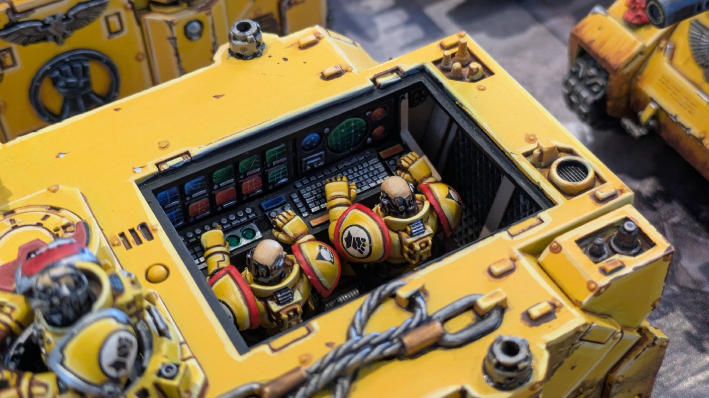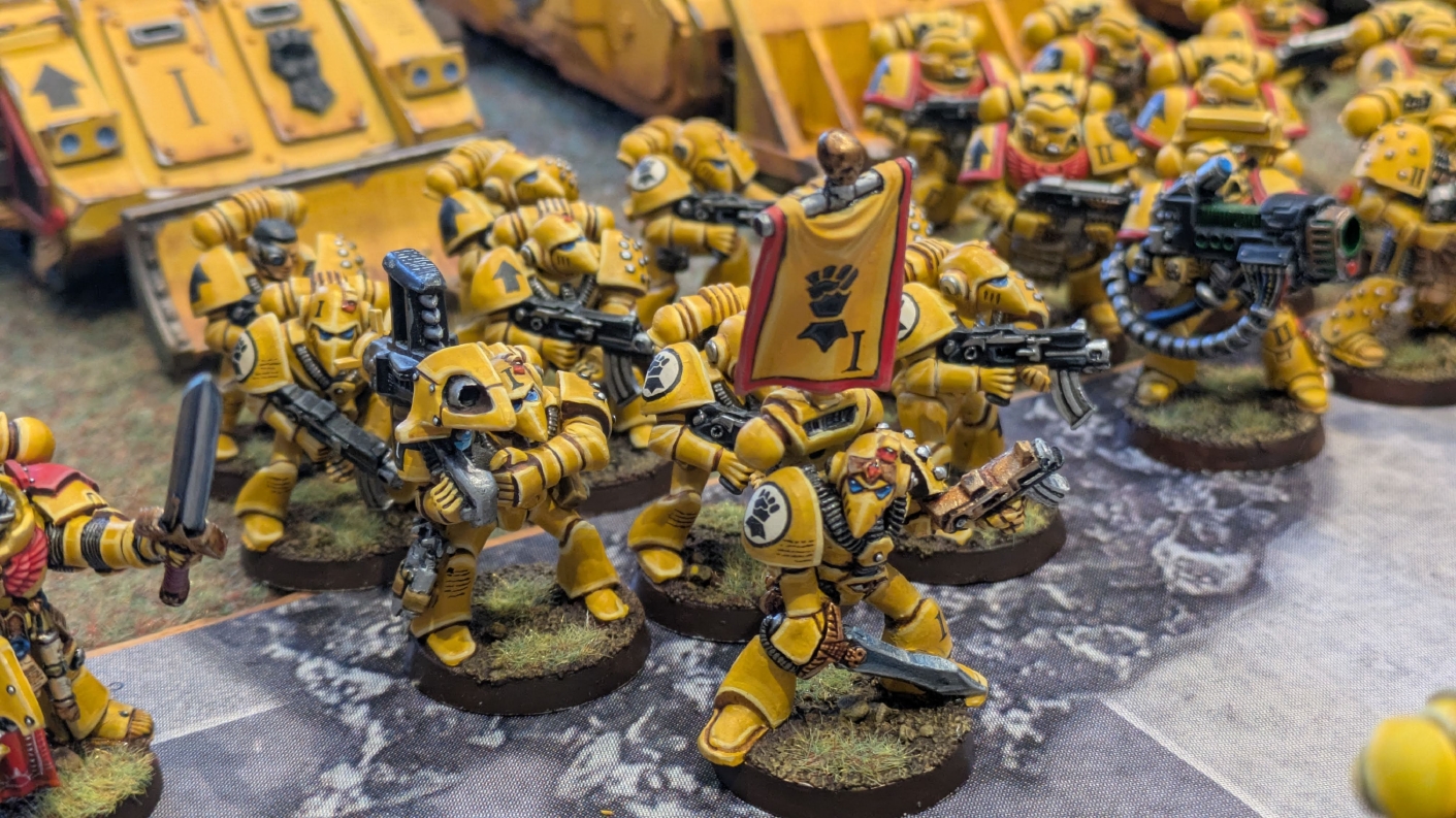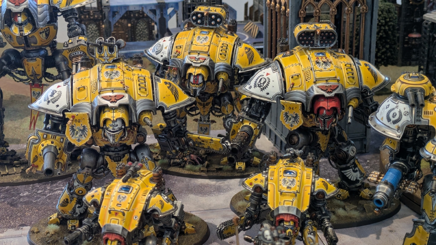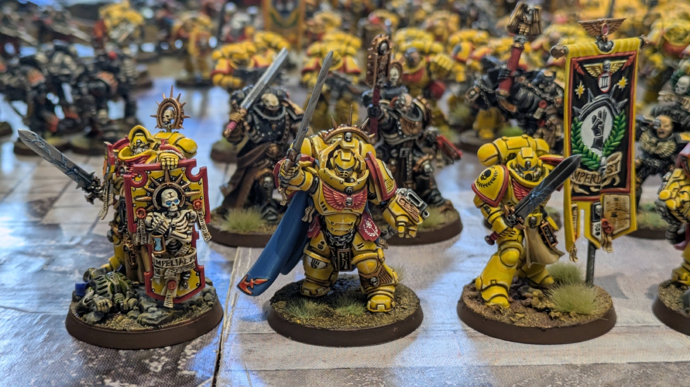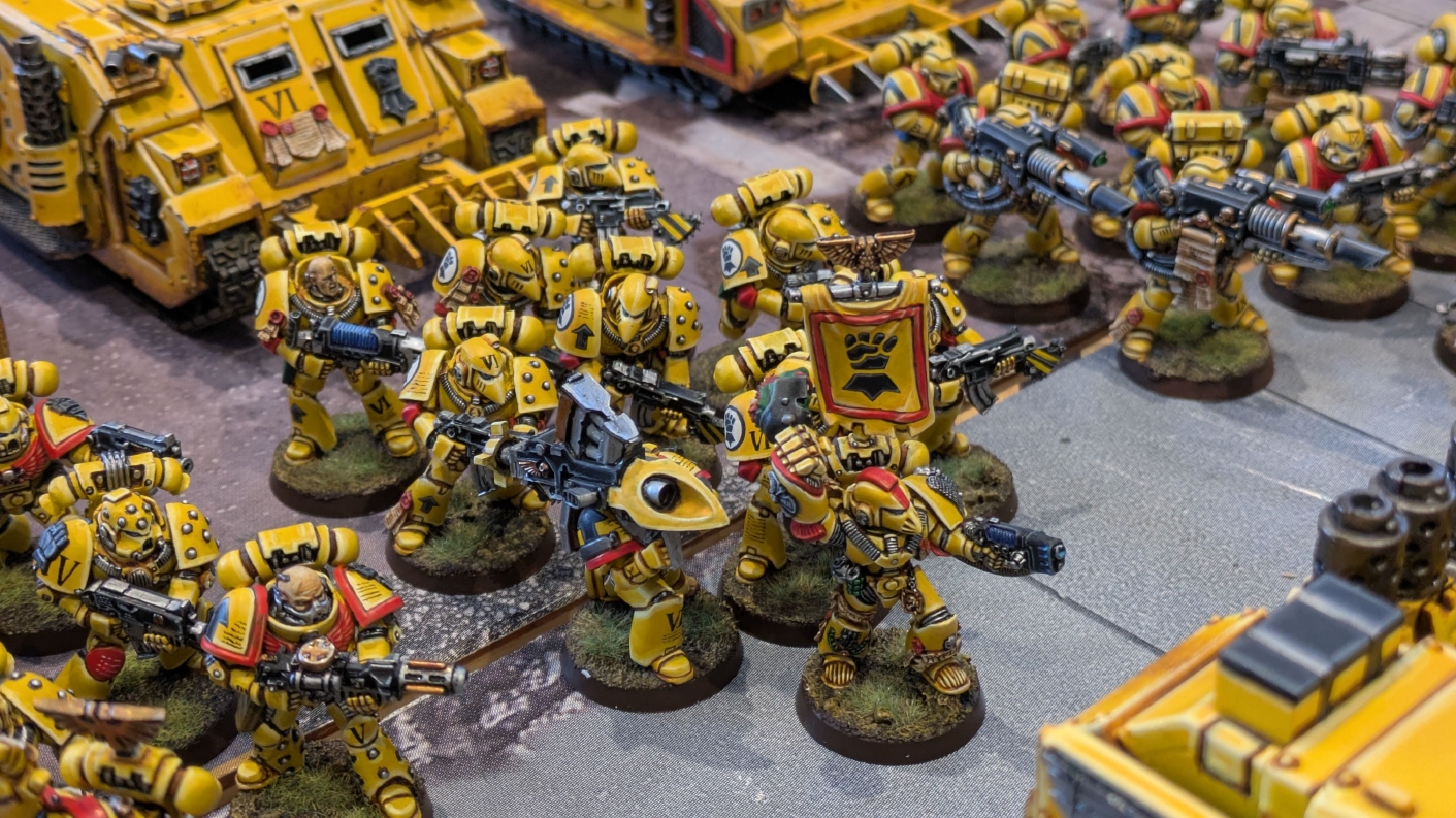 寄せられたコメントもほとんどが好意的なもので、関連するポストも合わせたら500件近く頂けて、更になんとこのポスト以降2日ほどでフォロワーが2000人近く増えてしまったのでした。 流石に色々すごい。 2011年からツイッターやってて、フォロワーがこんなに急激に増えたのは初めてだったので、これはもう自動翻訳機能搭載のおかげ間違いなしだし、 何かしらのポストの表示優先順位のアルゴリズムに変更があって、日本人のポストが多数海外に届くようになったのかもしれません。 同じようにプチバズ状態になっている日本趣味人も多数いらっしゃった印象です。 ![]() いや〜正直言って、ツイッター社がイーロン・マスクに買収され、Xになってから、いらん改変ばっかりするし、広告鬱陶しすぎて広告減らすために課金するハメになったし、 そもそもツイッターって言いたかったし、ツイートって言いたかったし、Xとかポストとか言わないように心がける程度には、イーロン・マスクってさぁ…とか思ってたんですが、 こうなってしまったら話は別です。 いや〜X凄いわ、ポストが世界に届く! 世界中の趣味人とこんなに繋がることが出来て、もうXは最高のSNSじゃん!ってなるくらいにはイーロン・マスクのファンになってしまいました。 いやほんと、GW本社もXでの広報やめちゃってますけど、戻ってきて欲しいですねぇ。 ![]() それにしても海外趣味人、ウォーハンマーへの熱量がすごい。 あらためて日本語に翻訳される趣味人同士の議論とか言い合いを見てると、いろんなタイプが居るのは日本と同様でも、その振り幅がでかい。 熱々になっている人もいれば、たぶんあまり関心がない人まで、いろんな背景を持った人ががんがんポストしてて、昔の掲示板(BBS)で見たことがある光景というか、そういう雰囲気を感じました。 日本とは比較にならないくらいに幅広い年代でこのホビーが受け入れられていることをヒシヒシと感じましたね。 あと、すごい気軽にリプライ入れてくれるのも楽しくなりますね。 ついついXの画面をスクロールするのに夢中になり過ぎてペイントの時間を奪われがちなので、そろそろ加減して付き合っていかないと、とは思います。 ![]() というわけで、僕のインペリアルフィストが凄まじい勢いで拡散されたのは大変名誉なことでしたので、 インペリアルフィストの写真とそのきっかけになったX自動翻訳機能搭載の思い出をこの記事に残しておきたいと思いました。 もともとは、はたさんのティラニッドとの激熱巨大バトルの後に、せっかくでかい戦場を置いてある内に現時点でのインペリアルフィストを並べてみるかな、という感じでした。 それとX自動翻訳機能搭載のタイミングがたまたま一致した感じでした。いや〜嬉しかったです。 まぁ、過去にも何度か並べてますし、ファーストボーンのマリーンが多く、10年前以上前に作ったモデルがほとんどの中で、 このネタ何回やるんや!?、って思ってる日本の趣味人の方もいらっしゃるとは思いますが(笑)、いやぁ、僕も今回は予想外の展開だったんですよ、ほんと。 でもって、味をしめたので、これからも1年に1回くらいは自宅アーミーズオンパレードをやりたいな、と思った次第です(笑)。 ![]() いや〜マジでかっこいい、黄色いタンクがズラリ並ぶと最高ですね。 11版でコデックスが更新されたら、もしかしてライノ系シャーシのタンクは全部グラブ系タンクにとって代わられるかも、とか、 ランドレイダーもそろそろモデルチェンジしそうだなぁとか、色々と懸念はあるものの、もうここまで作っちゃったら、ゲームは関係ないです。 コレクションとしてこれからも大切にしていきたいと思っています! かつてツイッターで趣味人の方が、 「形あるものいつかは崩れる、永年コレクションしてきたフィギュアも太陽光と熱、そして湿気による劣化は避けられない、加水分解とかね…」 というようなツイートをされていたのを見た時に、軽くショックを受けた覚えがあります。 そうだよなぁ、これは一生もののコレクションて思ってても、実際は一生ものじゃなくいつかは崩れ去るものなんだなぁ…って。 でもそのツイートを見てから軽く7〜8年は経ちますが今の所、塗装面の劣化も色の退色も見受けられないですし、 今もって自信満々のコレクションであり続けてくれるこのインペリアルフィストを、このたび改めて誇らしく思ったものでした。 まぁ、気にするだけ無駄というか、ここまで来たらとことん増強してやろう、とキチガイじみた決意を新たにしたところです。 ![]() ちなみにこのRoRにて人気の記事「ウォーロードタイタン制作記」も今回のプチバズの中で便乗して宣伝したところ、こちらも反響大きくて改めて嬉しくなりました。 ![]() まだ見てない人は見てくださいね!ウォーロードタイタンが作りたくなっても責任はとれませんよ!(笑) ![]() リーヴァータイタンの制作記もあります。こちらも未読の方はぜひご覧になってくだ