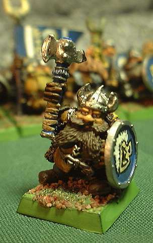 | RS14さんのコメント ドワーフの伝説のビール職人、ジョセフ・バグマンです。 去年初めてペイントしたメタルをリペイントしました(当時は肌をエルフフレッシュで塗装)。 セインで登場させると、レンジャーに合流できないので、ゲームでは少数精鋭のクロスボウマンを指揮します。 モデルは2版頃の若き日のバグマン .。ぜひ現行のレジメントofレナウンにも名を連ねて欲しいものです。 卵帝のコメント ペイントを始めてある時期が過ぎると、ふと昔に塗ったメタルをリペイントしてみたくなる事があるのは不思議ですね。 僕は、一番最初に塗ったモノは記念に残してありますが、初期に塗ったケイオスロードなどはリペイントしたものです・・・ 肌などを重点的にリペイントされたということですが、頬、鼻、眉間、などがしっかり分かるように塗られていて良いですね。 昔の小さなドワーフにこれだけの作業をするのは大変だと思います。 ビール職人だから、もう少し酔っ払った感じに肌を塗っても良かったかもしれませんね。 銀単色の兜がどうしても目立ってしまうのが残念です。 例えば、縁に金色などを入れて角の部分にブリーチドボーンを塗るだけで随分偉そうに見えると思いますので、 時間があればチャレンジしてみても面白いと思います。 |