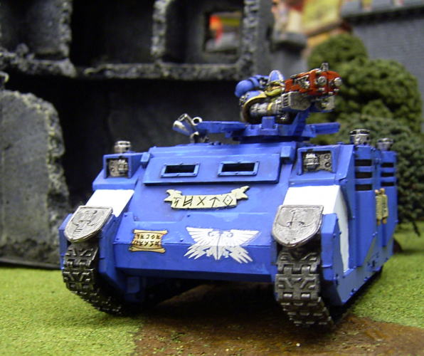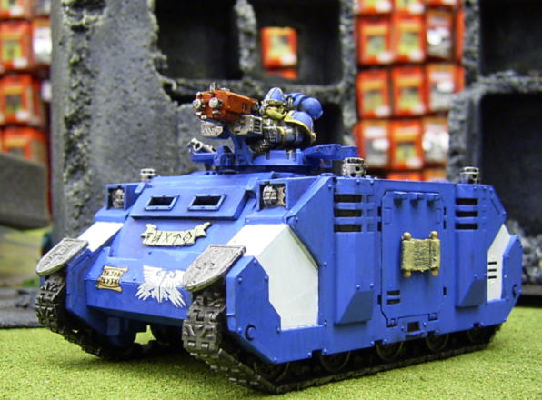 | 天使ササキエルさんのコメント 私が始めて塗ったタンク作品です。チョコチョコとファンタジーの部品をくっつけた他は 極めてオーソドックスに作りましたが、それでもわりとかっこよく出来たと思っているのは、私だけでしょうか?(笑) もし私の他にもいたとしたら・・・。それはきっと、新ライノのデザインがかっこいいからでしょうね。(笑) Rmanのコメント NEWライノじゃないですか!オールドな種族だけに、旧ライノが案外似合いそうですが、 こちらはこちらでやはり格好いいです。 クルーがちゃんとスカットになってるのは、当たり前なようで気の利いた改造ですね。 青色も鮮やかな色合いながらも色ムラや汚しなどが「それっぽさ」を演出していますね。 |