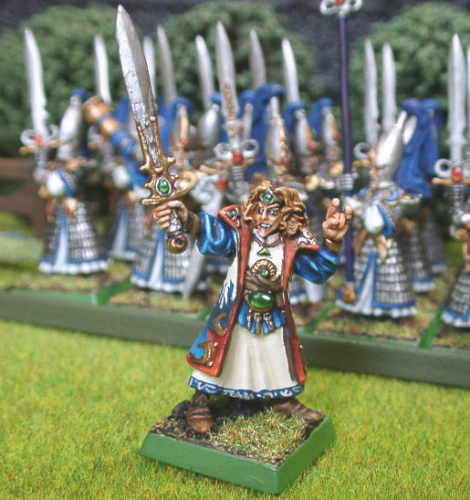 | トローラさんのコメント ハイエルフのメイジです。 基本的には見本とおなじ配色ですが、こいつ、かなり顔が怖いです(笑)。 なんか笑ってます。こんな顔に塗る気は全く無かったのですが、 何をどう間違ったのか、アーミー内でもかなり目立つ存在になってしまいました。 しばらくキャラの顔は塗れそうにないです(笑)。 Rmanのコメント 不敵な笑みを浮かべるハイエルフってのが居ても悪くないと思いますよ^^。 白い歯が必要以上に目立ってしまったのが表情を変えてしまった要因でしょうか。 ですが全体的にはとても丁寧にペイントされてありますし、文句無く格好いいです! 宝石塗りも綺麗ですね。 見本と同じ配色ということで、背面の絵も是非とも機会があったら見せてくださいね! |