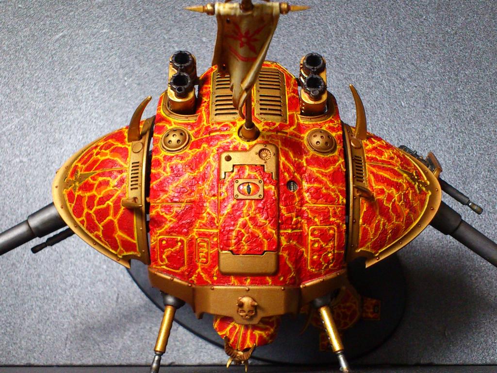 | KILLVERNさんのコメント ケイオスボルケーノ(赤い火山)の名前に合わせて、両腕にキャノンを装備させました。 マクロ○のトマホー○みたいですが、実は元ネタは仮面ライダーV○の 大砲バッファ○ーです。(笑) Rmanのコメント 凄い意欲作でありますね!!一目でケイオスと分かる邪悪さもありつつ、ド派手なヒロイックさもあり、実にKILLVERNさんらしい作品だと思いました。 本来ベースデコレート用のペイントを利用してひび割れた溶岩のようなペイントに活かされているのは凄い着眼点でしたね!インパクト抜群です。 こいつは普通のナイトがレネゲイド化したというより、もはやエーテル的というか、デーモン的な雰囲気を感じさせますねぇ。 2018.9.29 |