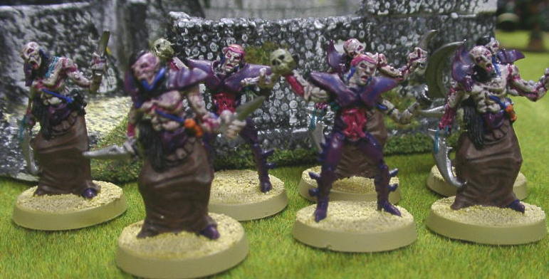 | V1ALさんのコメント こいつもかなりヘンテコな奴らです。このユニットは使い方を工夫すれば活躍させれそうです。 これから試行錯誤して研究してみようと思います。 こいつら、ペイントはけっこう楽しめました。無健康な肌と、肌もない部分のペイントが気に入ってます。 Rmanのコメント 確かにグロテスクですね〜。体の色具合も気持ち悪いです(褒め言葉^^)。 どこかファンタジーバトルのグールを思わせるモノがあります(っていうかまんま?笑) このローブを着てるやつはグールに混ぜるのは使えそうですね〜! |