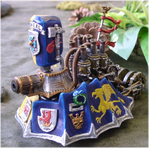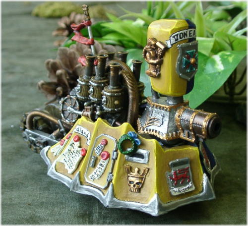 | V1ALさんのコメント 自分はコンバージョンが大好きなんですが、このミニチュアは、主に自分で造形する手法で作成を楽しみました。 自分のコンバージョン物の場合ペイントにも力が入ります。 Rmanのコメント すげ〜!””オリジナルスチームタンクです! 戦槌GTの時に撮影したものです。オリジナルとは思えない程の完成度の高さだと思います。 黄色と青の州カラーも綺麗ですね。 思い出せば福岡にV1さんが遊びに来られて僕の部屋で泊まってもらったとき、ジャンクパーツの中から ウォーマ○○ーのパーツ群を見て「うぉ!閃いた!!」とかで回収して頂いたのですが、 よもやそのパーツがこのような物に改造されてしまうとは...。コンバージョンの醍醐味を見た気がします。 |
