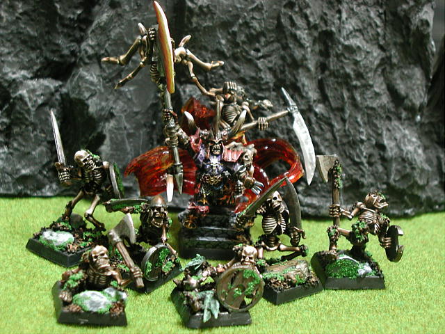 実はこれ、ケムラー師を買った時に店員さんに薦められて訳も分からず買った物ですが、 ウォーハンマーヒーローズを見てみると、色々と設定の有るスペキャラだったのでそれっぽく塗ってみました。 周りには、余りに強力な召還魔法の為についでに甦ってしまったイメージのスケルトンをあしらってみました。 Rmanのコメント むぉおおおおお!すごい!アンデットを見て格好いいと心底思ったのは初めてかもしれません! なんですか!?この度迫力は。 ペイントもですが、改造なども凄いです。 ベースデコレートももはやベースデコレートの一言では言えないです。もはやジオラマですね! モデルに対する愛がひしひしと伝わってきます。お供のスケルトンの作り込みにも脱帽! |