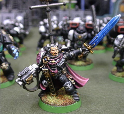 | 有機溶剤さんのコメント 現在の私のアーミーのHQを務めるミニチュアです。 が、しかしブラックテンプラーズにはヒーローが編入できないというのを後で知って ガクゼンとしました...トホホ。ブラックテンプラーズマーシャルに見えませんかね ぇ..コレ とはいえこのミニチュアは模様をいろいろ描いたりできて楽しかったです。 顔は、HIROTさん提供のシェパード・ペイン著「How to build Dioramas」という 20年近く前の本を見ながらペイントしました。良い本でした、ありがとうございます Rmanのコメント ほんと、格好良いミニチュアですね〜。剣のパワーウェポン色具合も他の色が抑え気味なだけに 目立って良いと思います。 顔の表情までわかる塗りはさすがの一言に尽きます。 |